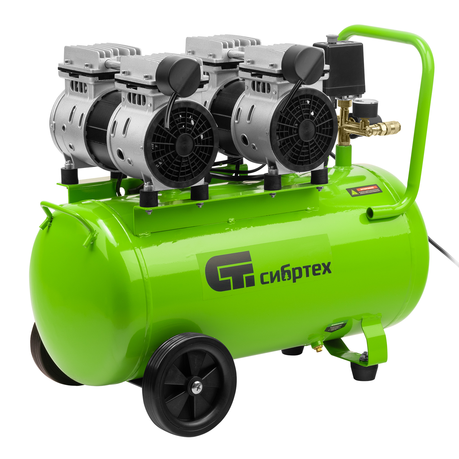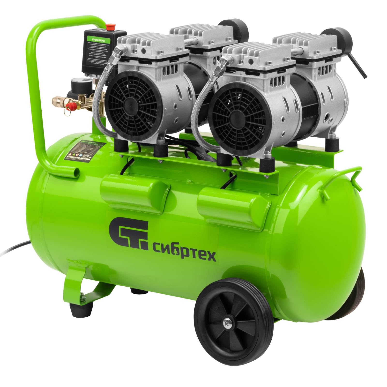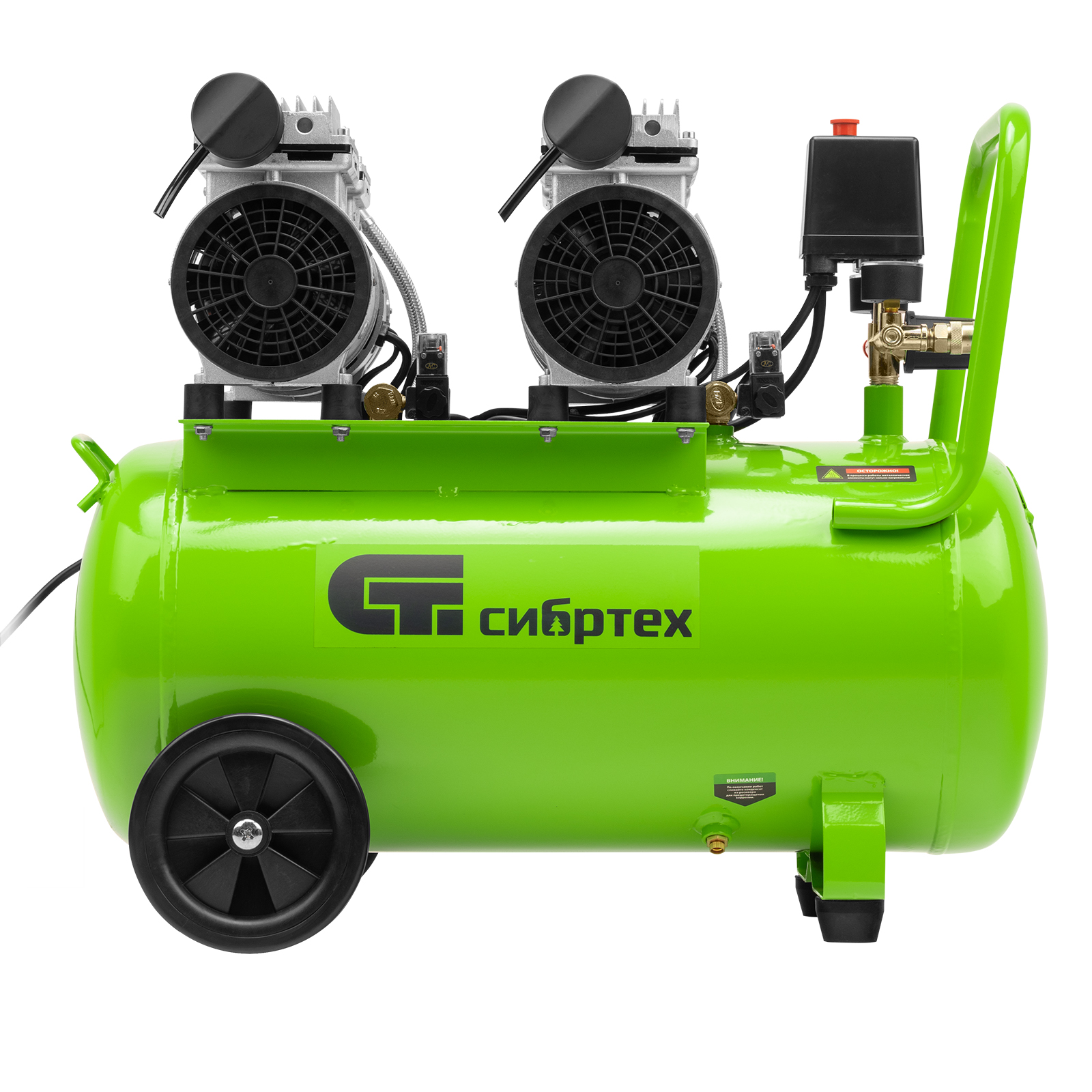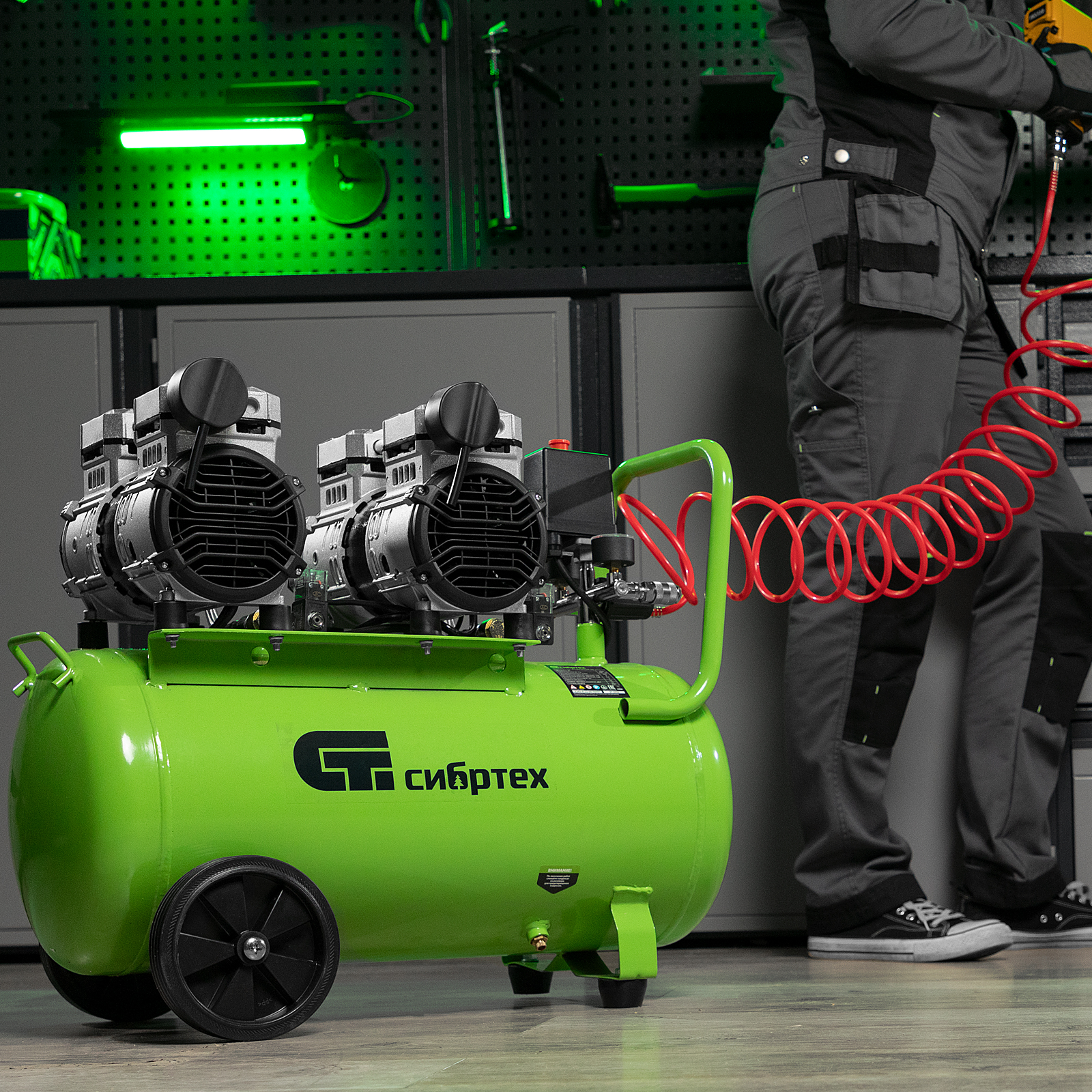 Безмасляный малошумный компрессор Сибртех МБ 2000/50 58007 мощностью 2000 Вт и объемом ресивера 50 л имеет производительность на входе 300 л/мин и сжимает воздух под давлением до 8 бар. Используется для обеспечения функционирования пневмоинструмента, например, краскораспылителя, перфоратора или пневматического шуруповерта. Для работы устройства не требуется масло, поэтому воздух на выходе не содержит его частиц. Компрессор оптимален для проведения покрасочных работ и продувки электронных компонентов.,Одна из ключевых особенностей компрессора — низкий уровень шума (не превышает 70 дБ), позволяющий использовать устройство в жилом помещении без дискомфорта для людей.