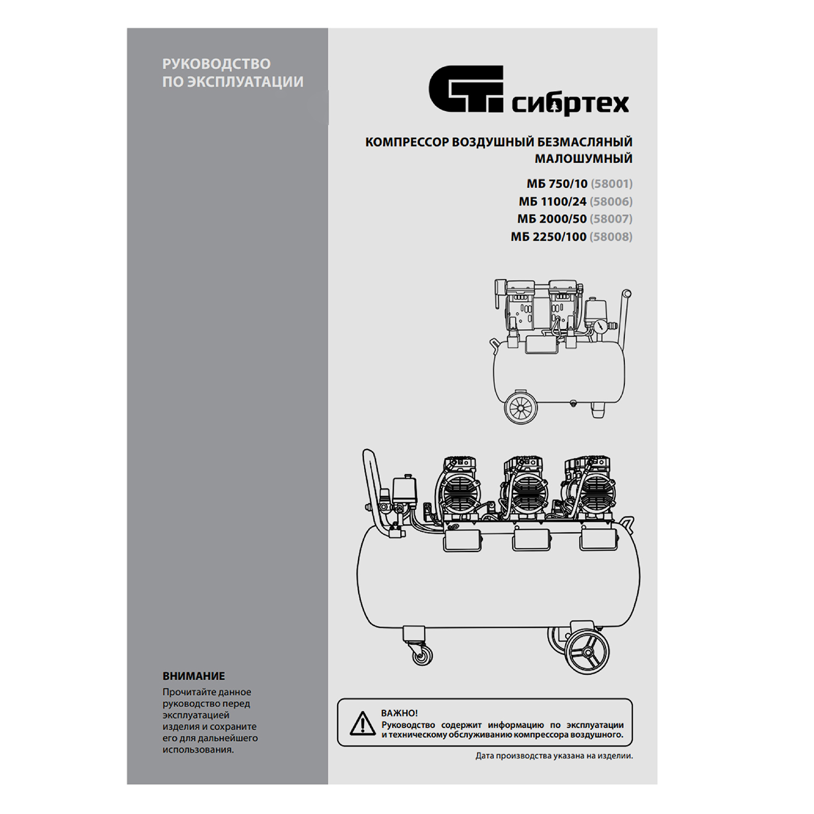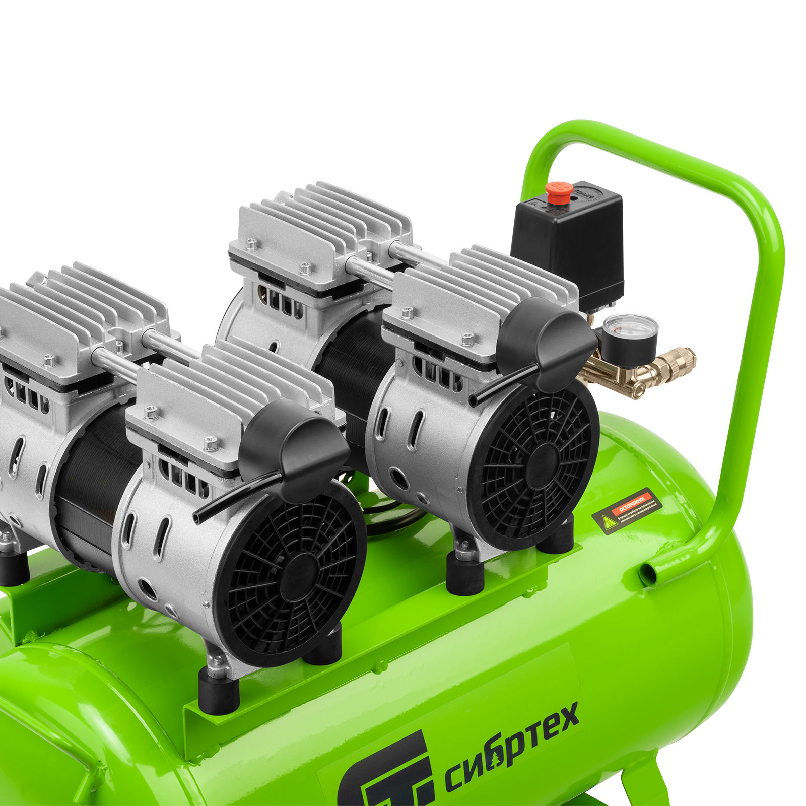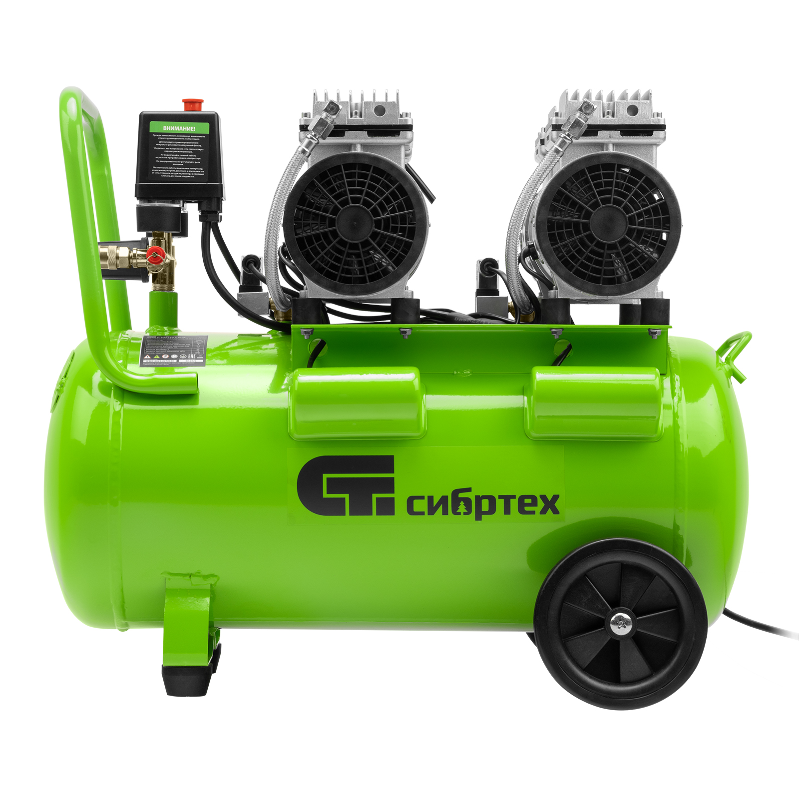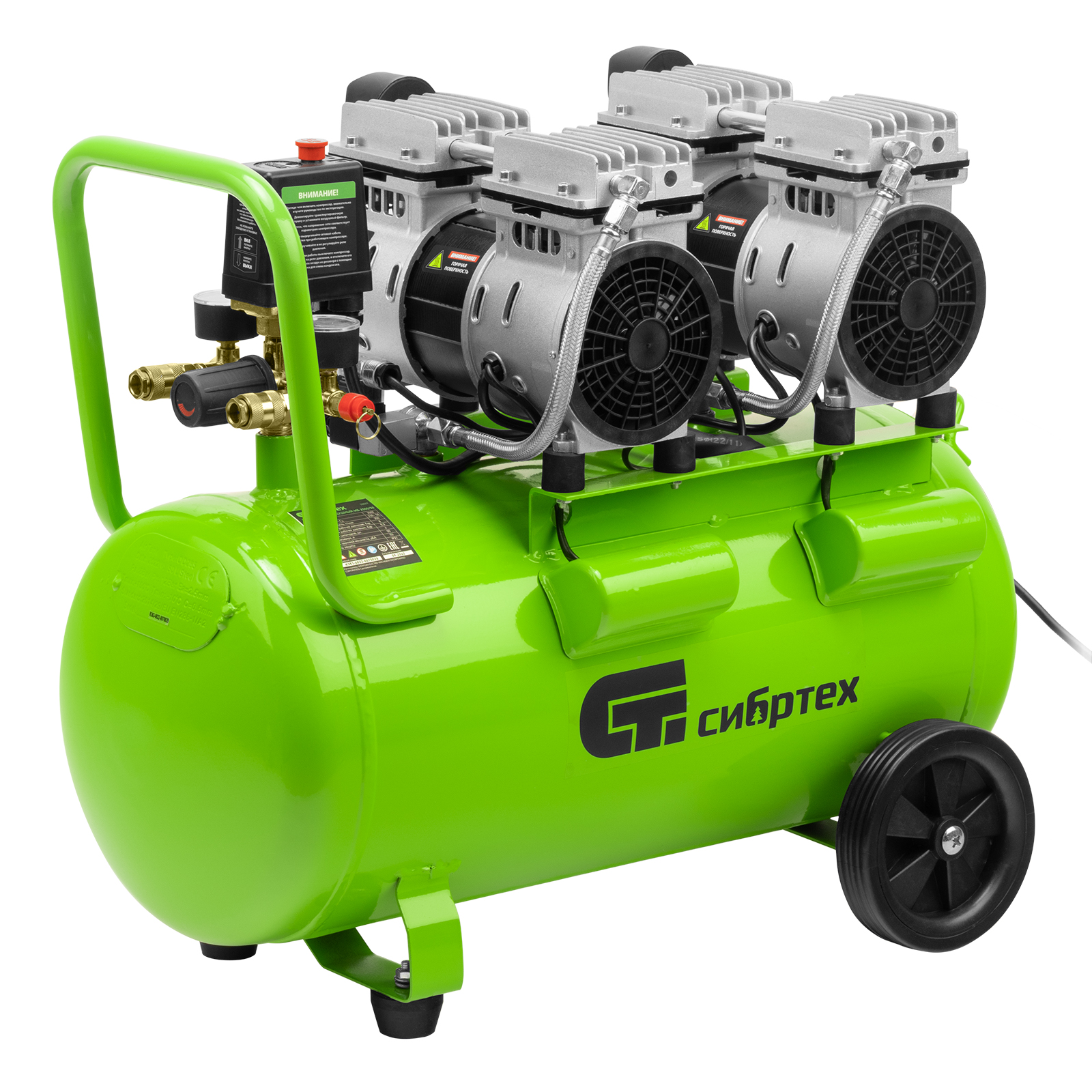Безмасляный малошумный компрессор Сибртех МБ 2000/50 58007 мощностью 2000 Вт и объемом ресивера 50 л имеет производительность на входе 300 л/мин и сжимает воздух под давлением до 8 бар. Используется для обеспечения функционирования пневмоинструмента, например, краскораспылителя, перфоратора или пневматического шуруповерта. Для работы устройства не требуется масло, поэтому воздух на выходе не содержит его частиц. Компрессор оптимален для проведения покрасочных работ и продувки электронных компонентов.,Одна из ключевых особенностей компрессора — низкий уровень шума (не превышает 70 дБ), позволяющий использовать устройство в жилом помещении без дискомфорта для людей.