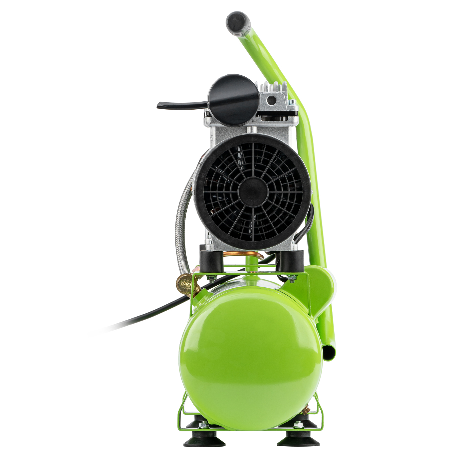 - Продуманная конструкция — 4 виброопоры обеспечивают устойчивость компрессорного блока и гасят колебания, возникающие во время работы.