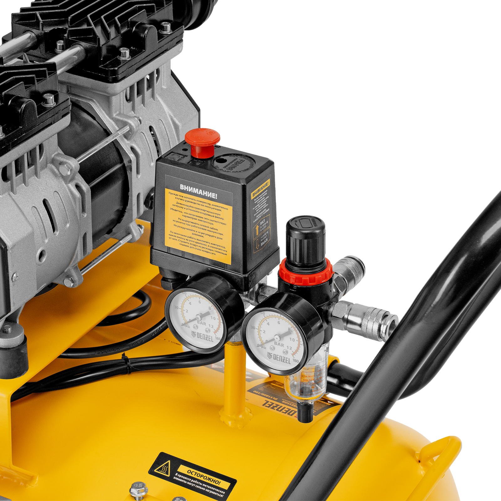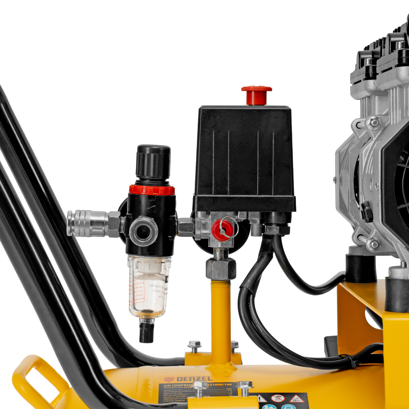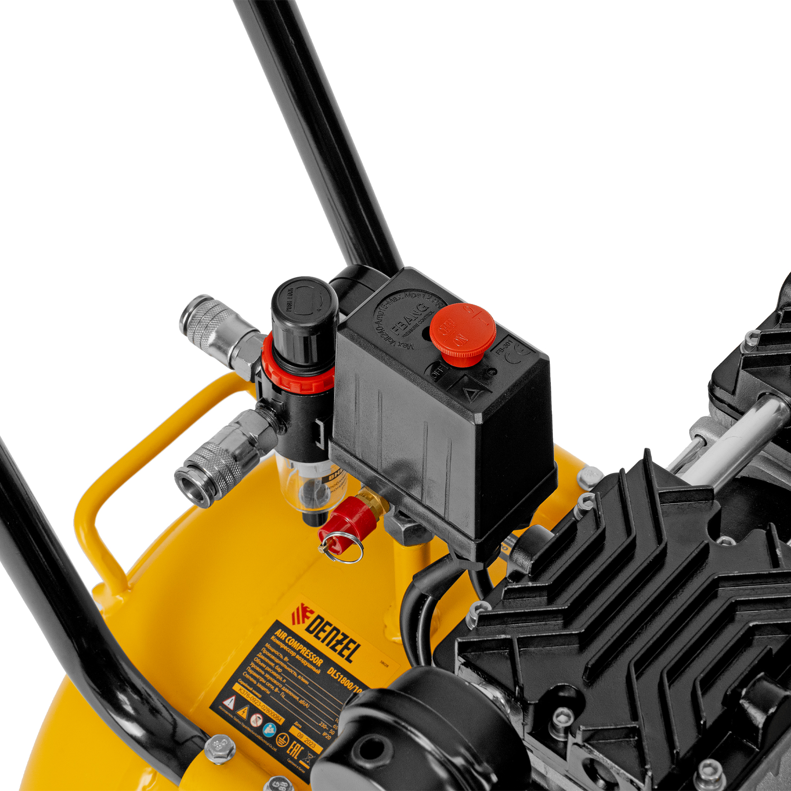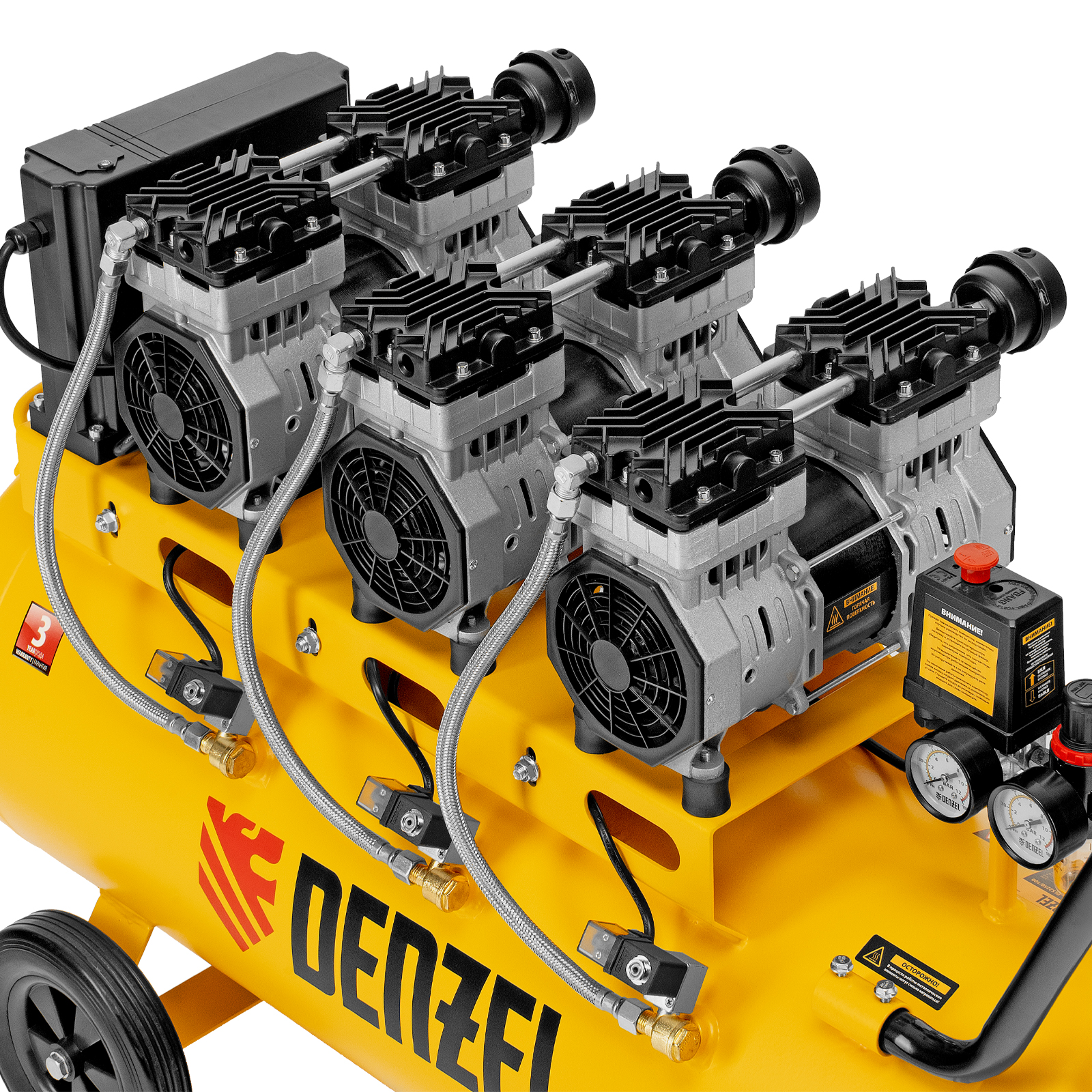 Безмасляный малошумный компрессор Denzel DLS 2550/100 58029 с блоком управления, мощностью 2250 (3 х 750) Вт, объемом ресивера 100 л и производительностью 410 л/мин предназначен для обеспечения пневмоинструмента сжатым воздухом, подаваемым под давлением до 8 бар. Позволяет подключить пневматический заклепочник, дрель, шлифмашину и т.д. Оптимален для работы с краскопультом и для продувки электронных компонентов, т. к. в сжатом воздухе отсутствуют частицы масла. Компрессор пригодится в мастерской, гараже, на строительной площадке.