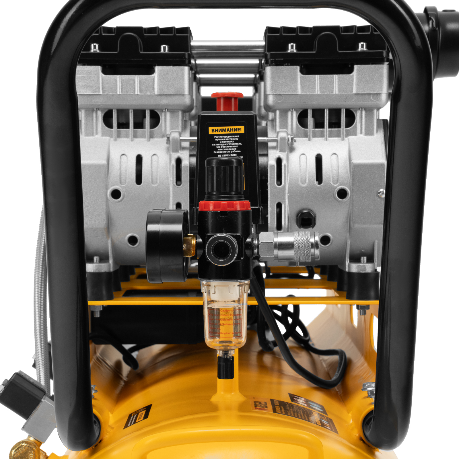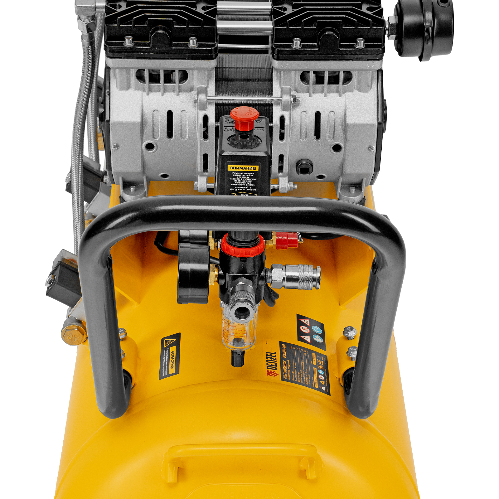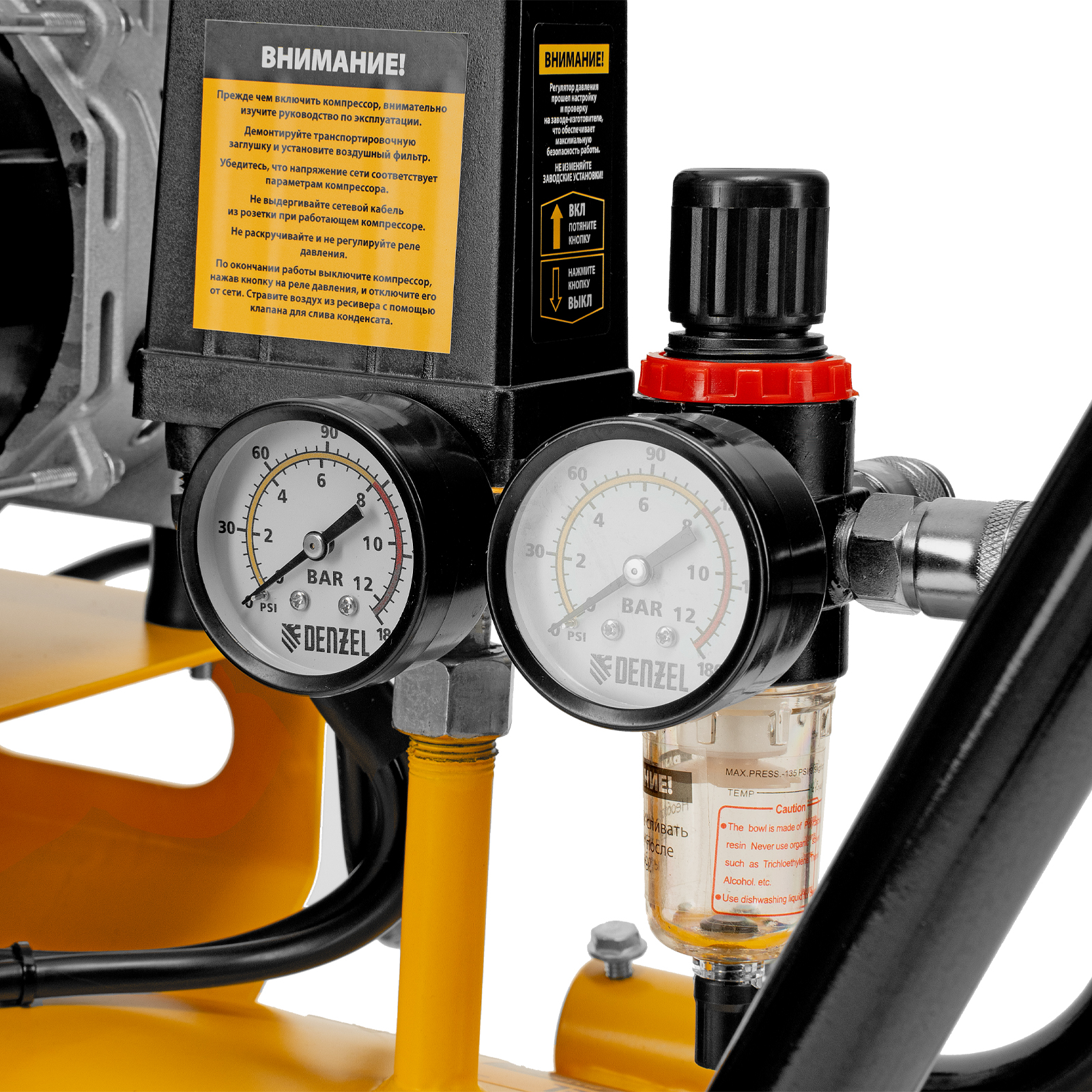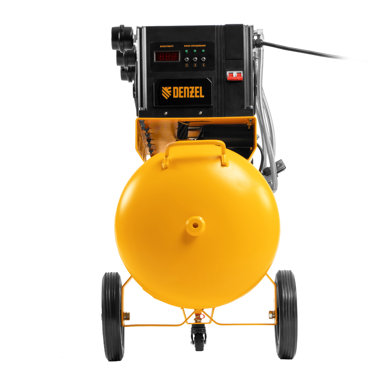 Безмасляный малошумный компрессор Denzel DLS 2550/100 58029 с блоком управления, мощностью 2250 (3 х 750) Вт, объемом ресивера 100 л и производительностью 410 л/мин предназначен для обеспечения пневмоинструмента сжатым воздухом, подаваемым под давлением до 8 бар. Позволяет подключить пневматический заклепочник, дрель, шлифмашину и т.д. Оптимален для работы с краскопультом и для продувки электронных компонентов, т. к. в сжатом воздухе отсутствуют частицы масла. Компрессор пригодится в мастерской, гараже, на строительной площадке.
