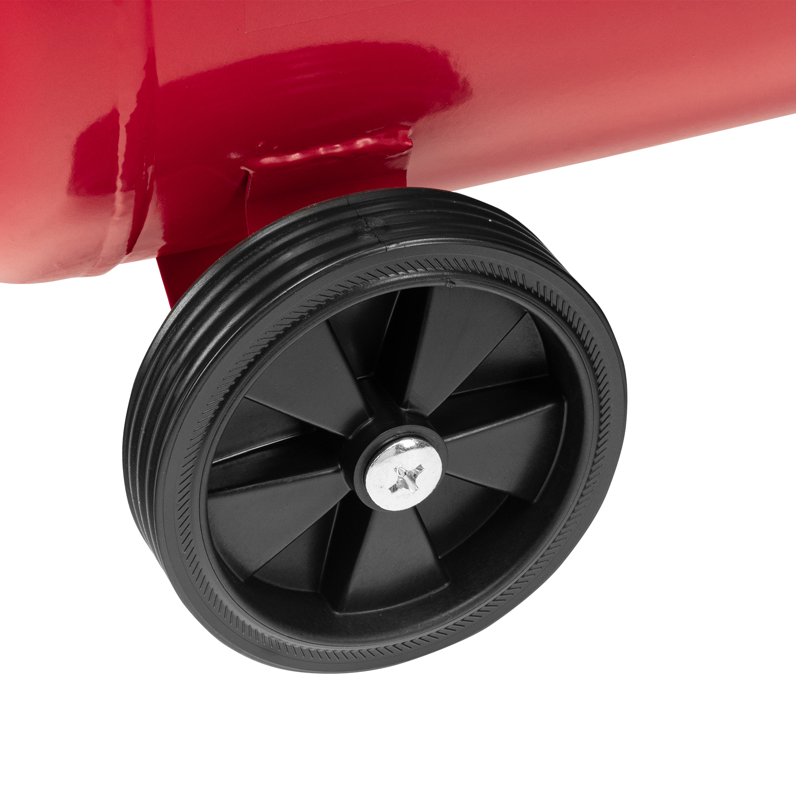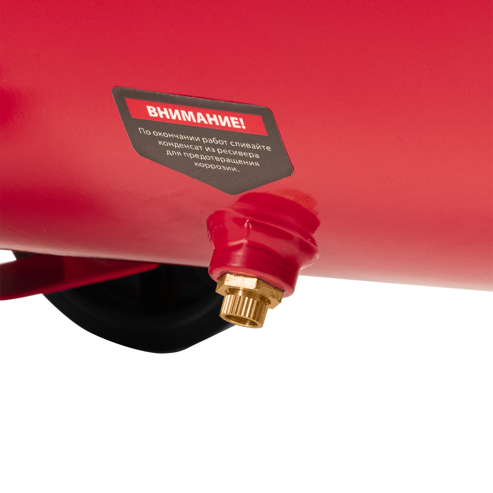 - Мобильность — благодаря транспортировочной рукоятке и колесам компрессор удобно перемещать по рабочей площадке.