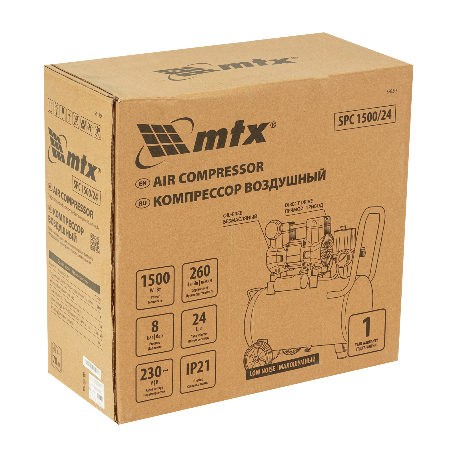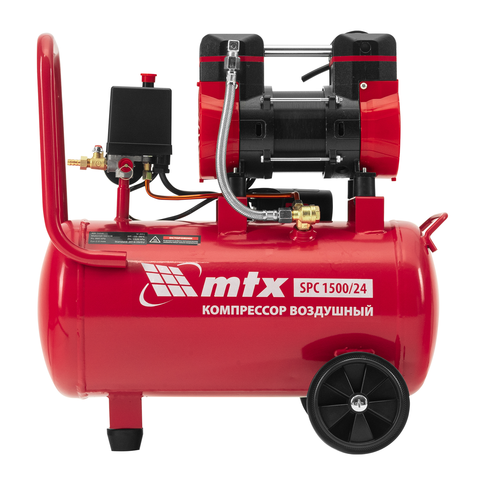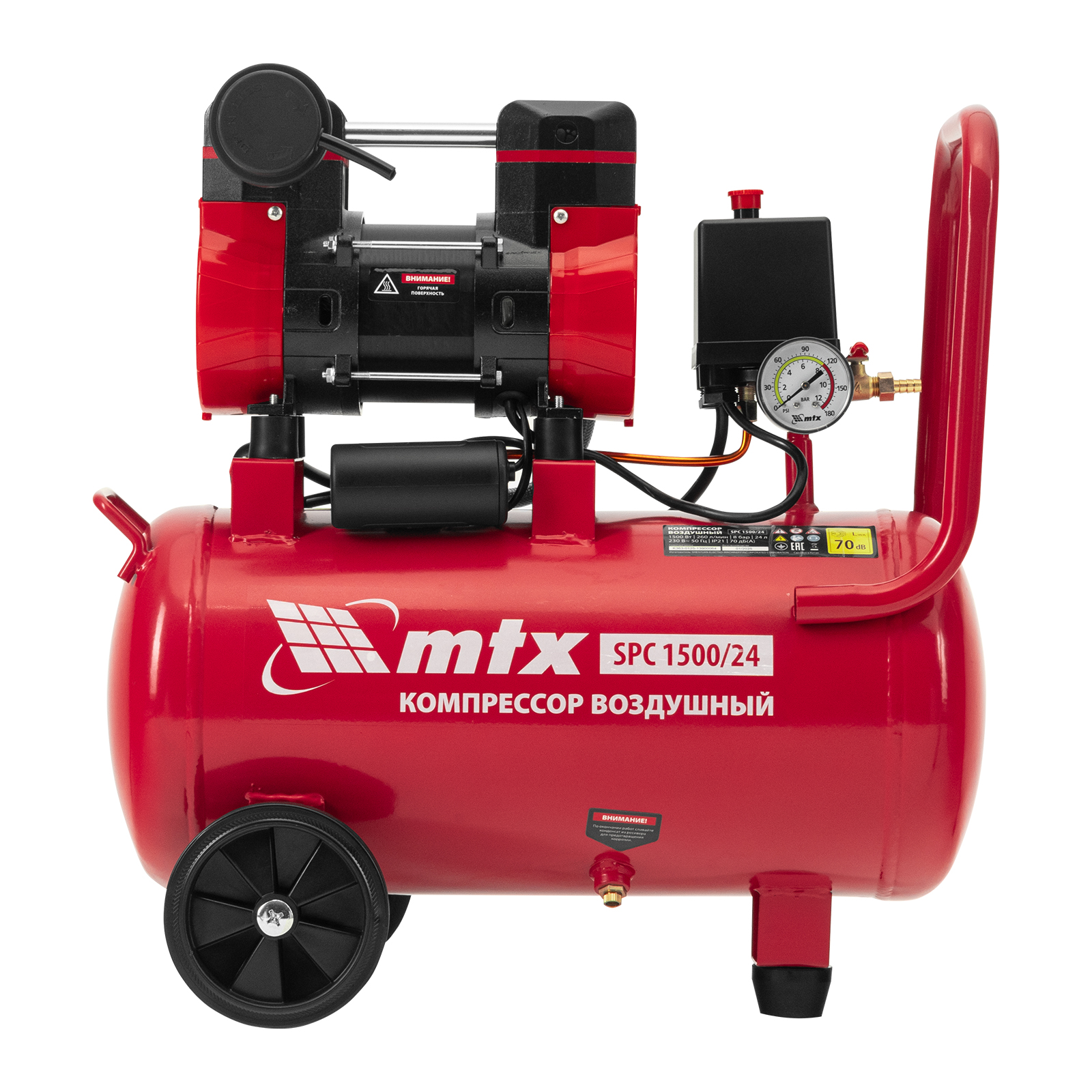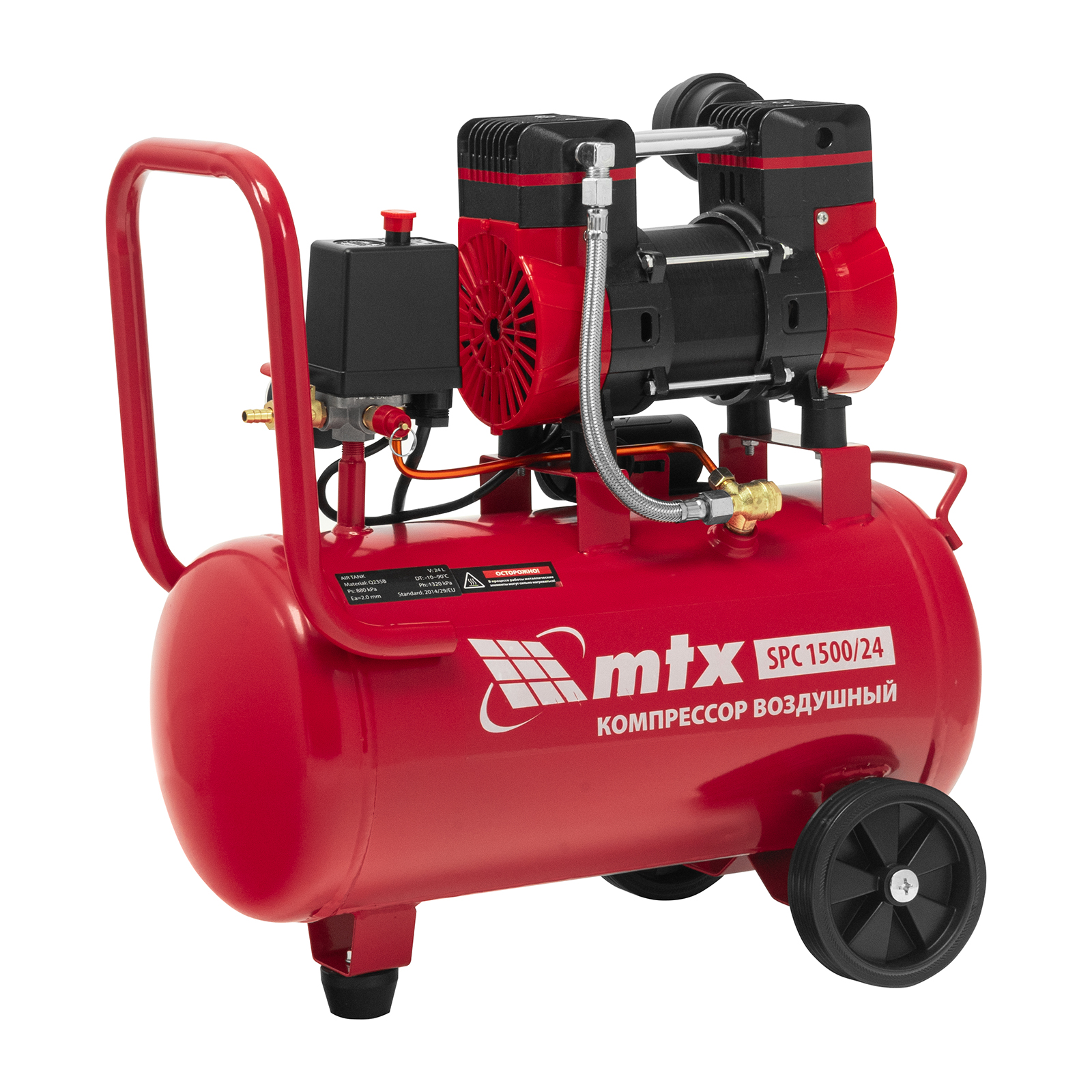 Безмасляный малошумный компрессор MTX SPC 1500/24 58139 мощностью 1500 Вт и производительностью 260 л/мин, с ресивером объемом 24 л, позволяет обеспечить пневматический инструмент сжатым воздухом под давлением до 8 бар. Воздушный поток не содержит частиц масла, поэтому компрессор можно использовать для проведения покрасочных работ и продувки электронных компонентов. Отличительной особенностью компрессора является низкий уровень шума, не превышающий 75 дБ, поэтому его использование не доставляет дискомфорт.