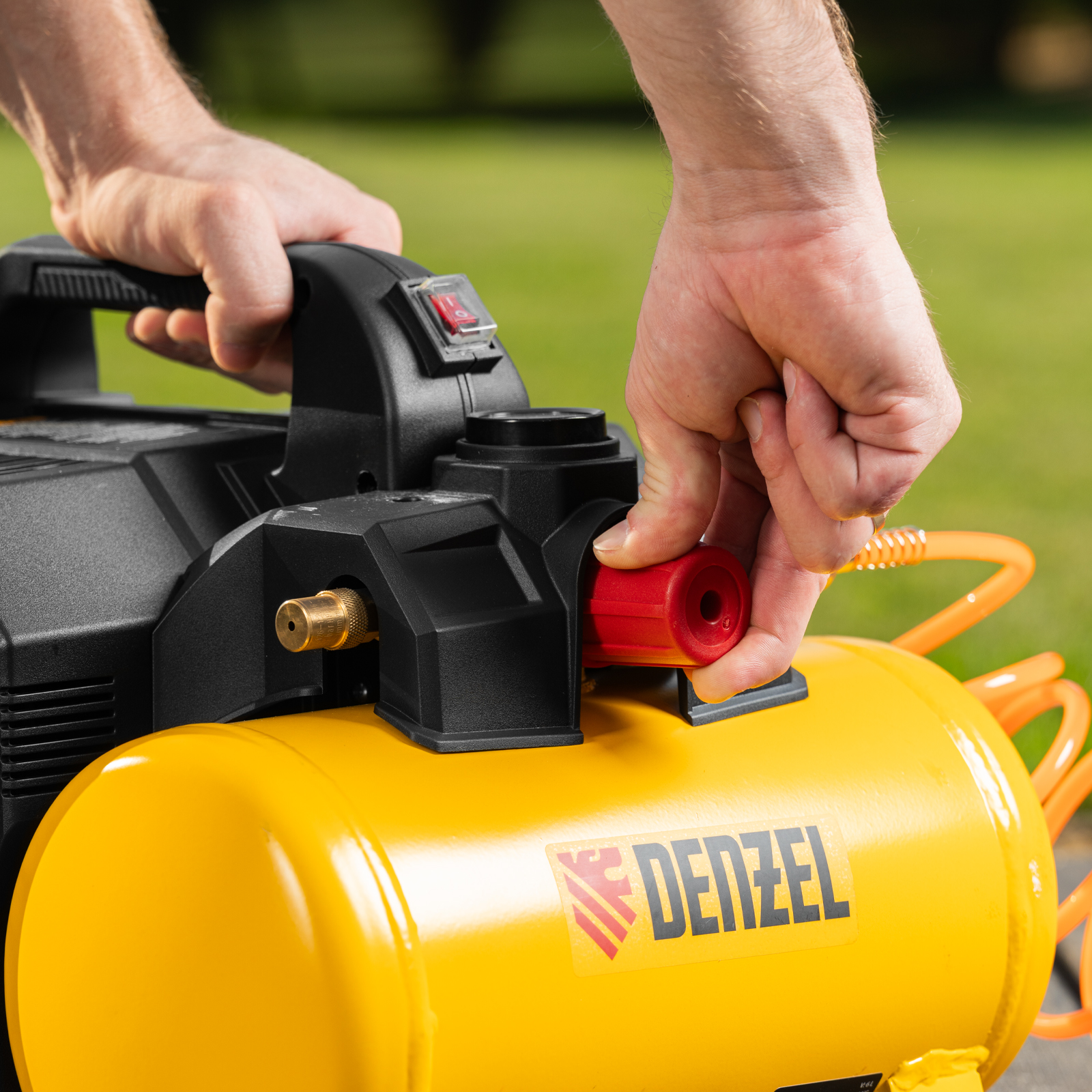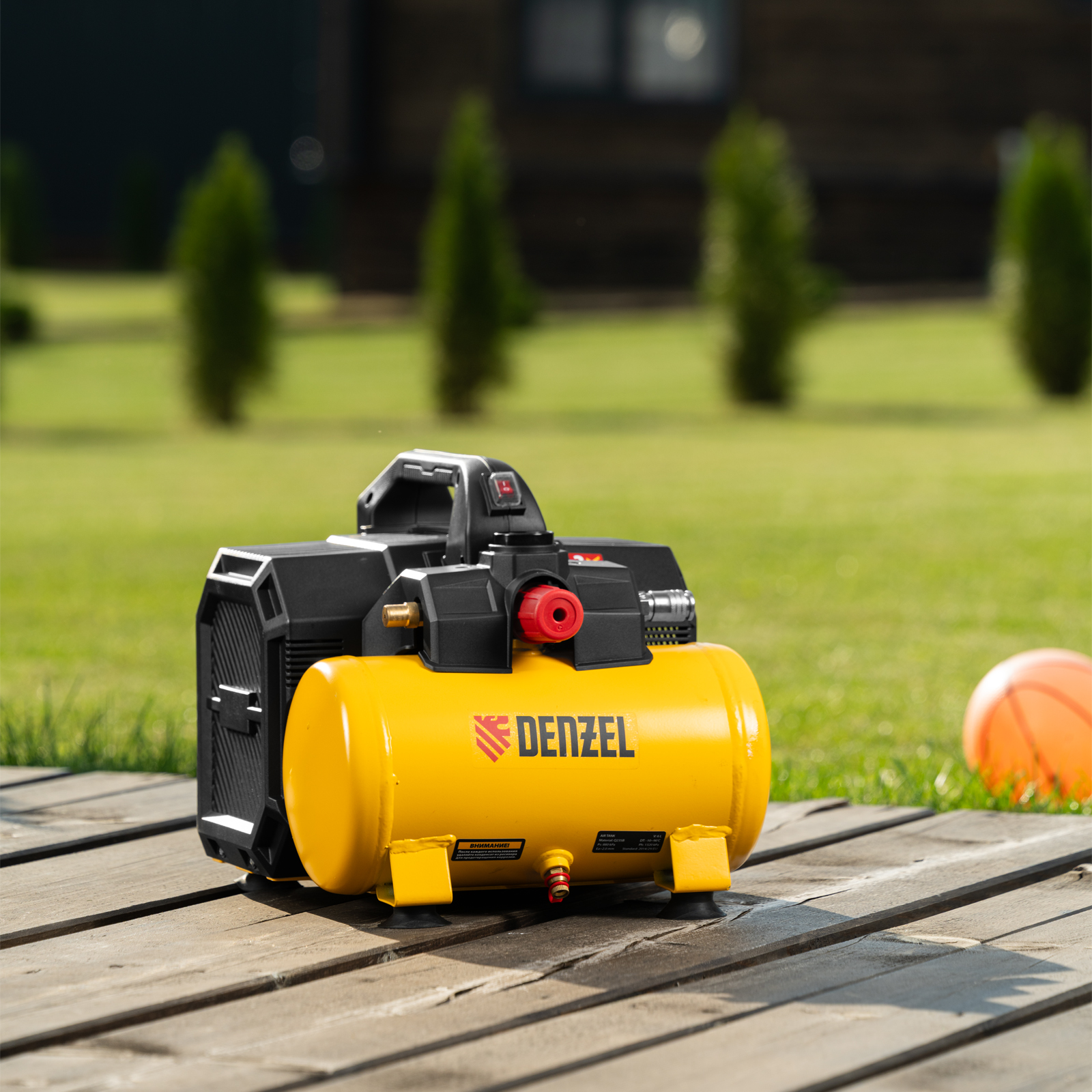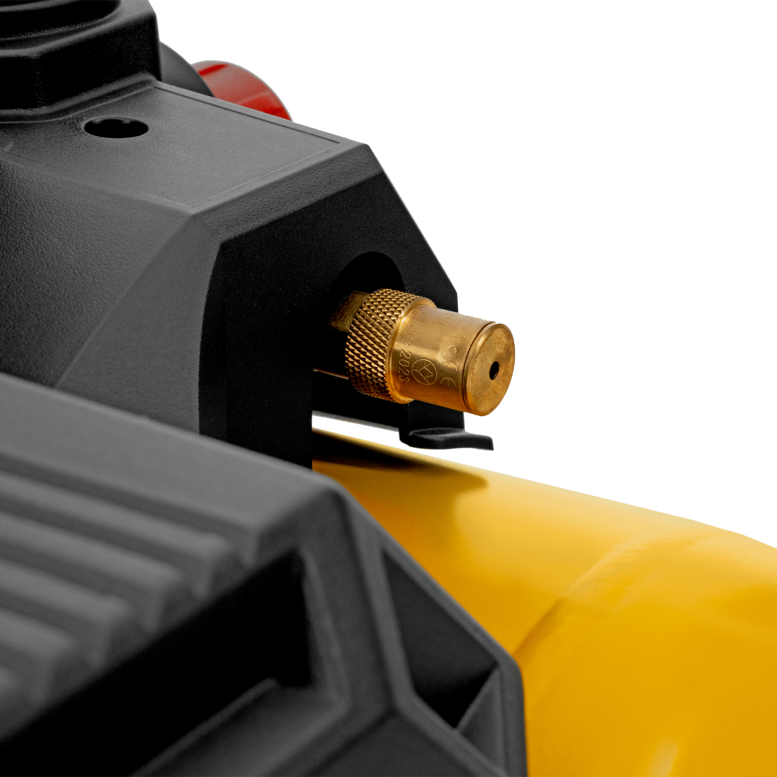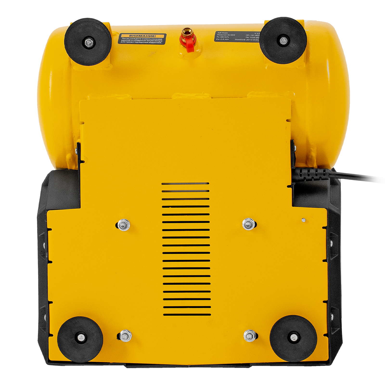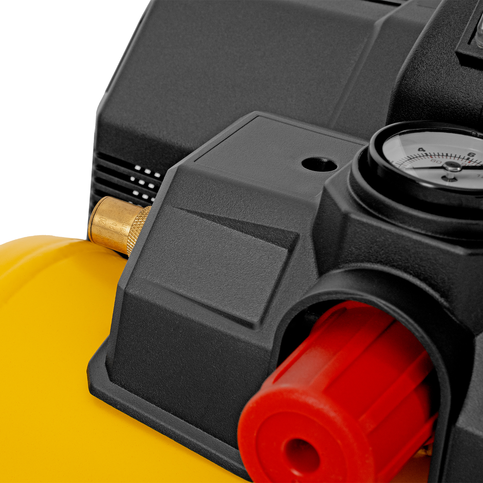 - Удобный контроль давления в ресивере — на компрессор установлен механический манометр, «смотрящий» вверх, поэтому для снятия показаний не нужно присаживаться.