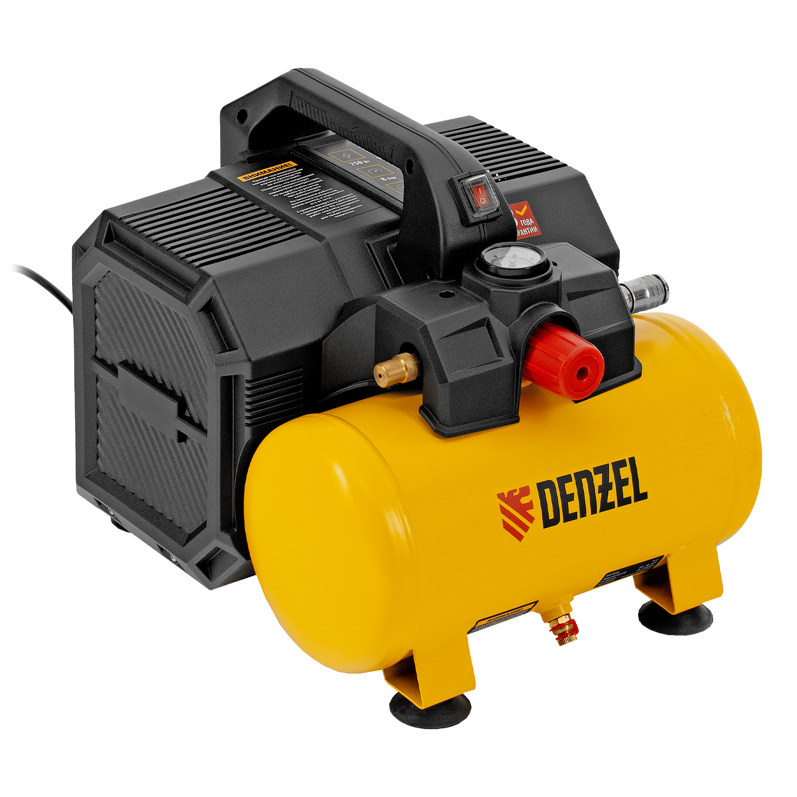 Компрессор безмасляный малошумный Denzel DLS750/6 58019 мощностью 750 Вт, с ресивером объемом 6 л, имеет производительность на входе 140 л/мин и предназначен для обеспечения пневмоинструмента сжатым воздухом. Оптимален для работы с краскораспылителем и продувочным пистолетом, т.к. воздух на выходе не содержит частиц масла. Рабочий узел закрыт сплошным кожухом, благодаря чему уровень шума во время работы не превышает 65 дБ. Компрессор можно использовать в жилом помещении и на дачном участке.