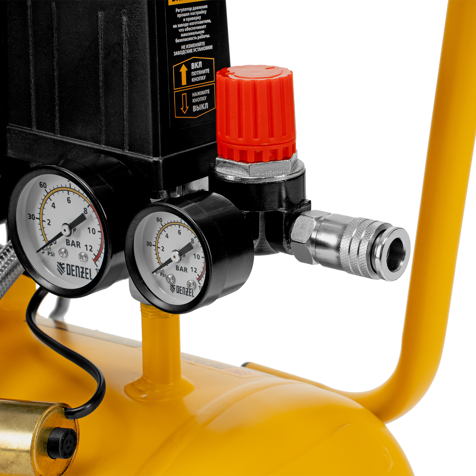 - Безопасность и высокая устойчивость — резиновые ножки гасят вибрации и удерживают компрессор на месте в процессе работы.
