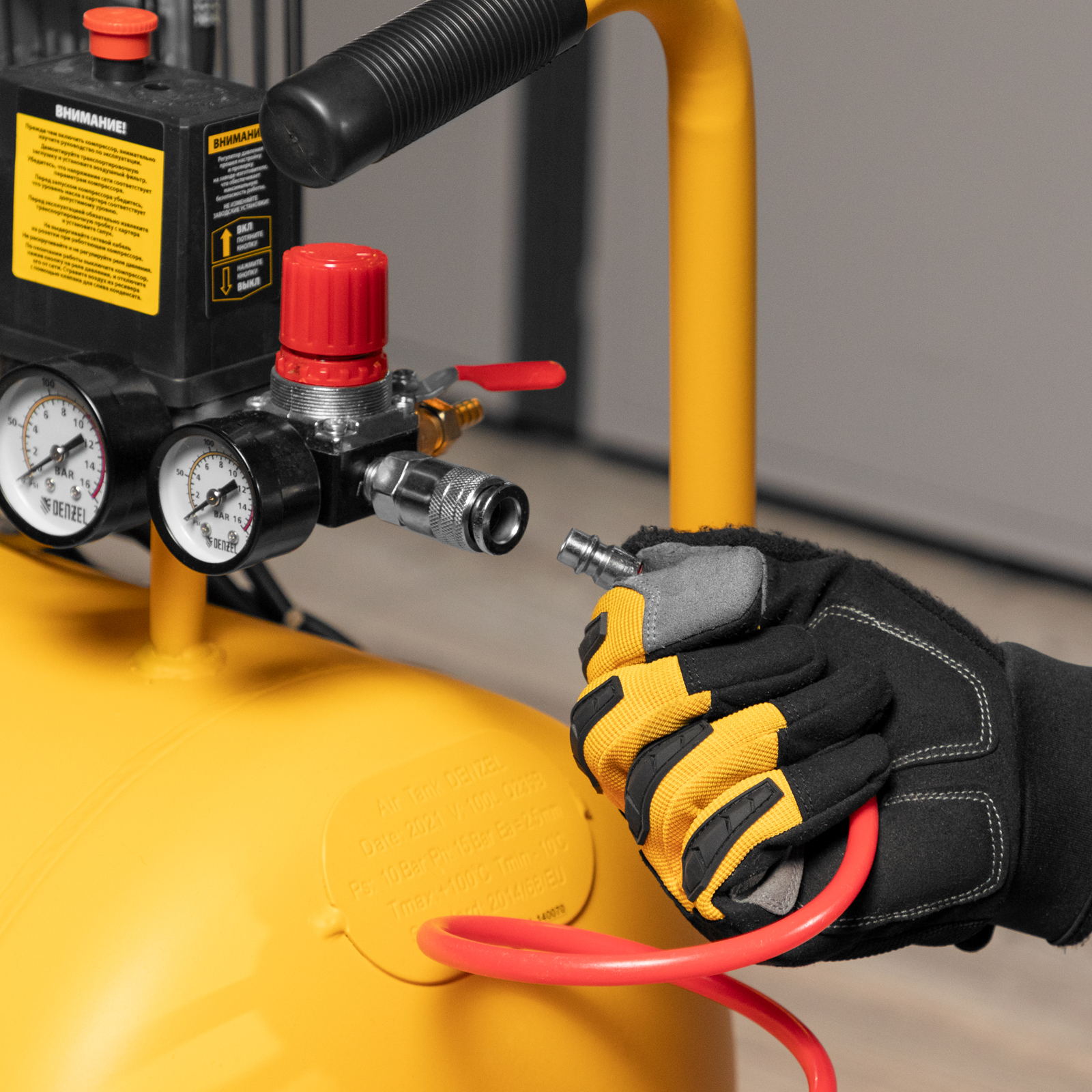 - Отслеживание рабочих параметров — 2 манометра позволяют контролировать давление в ресивере и пневмомагистрали.