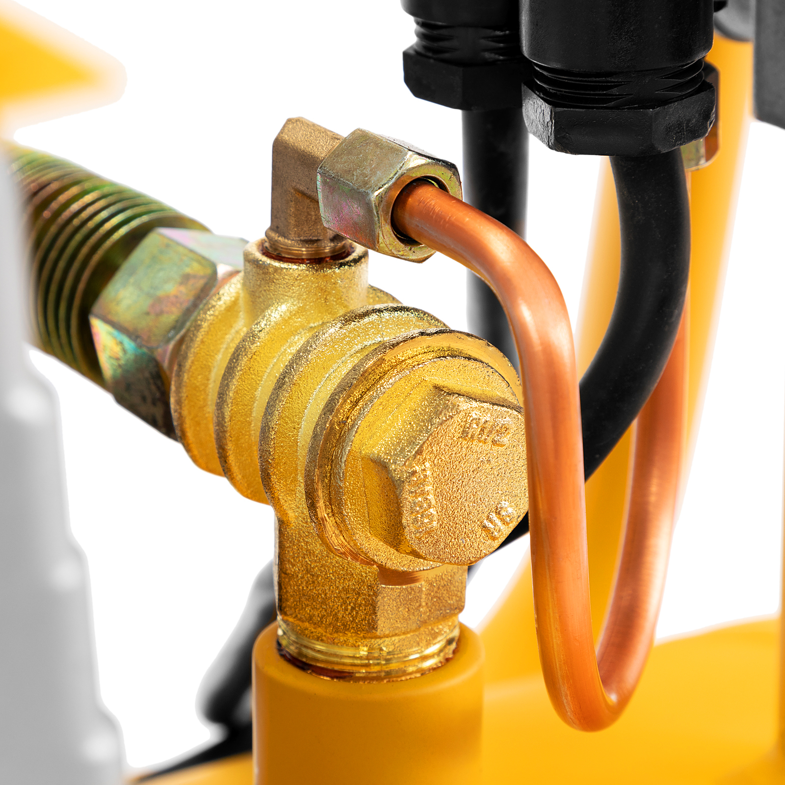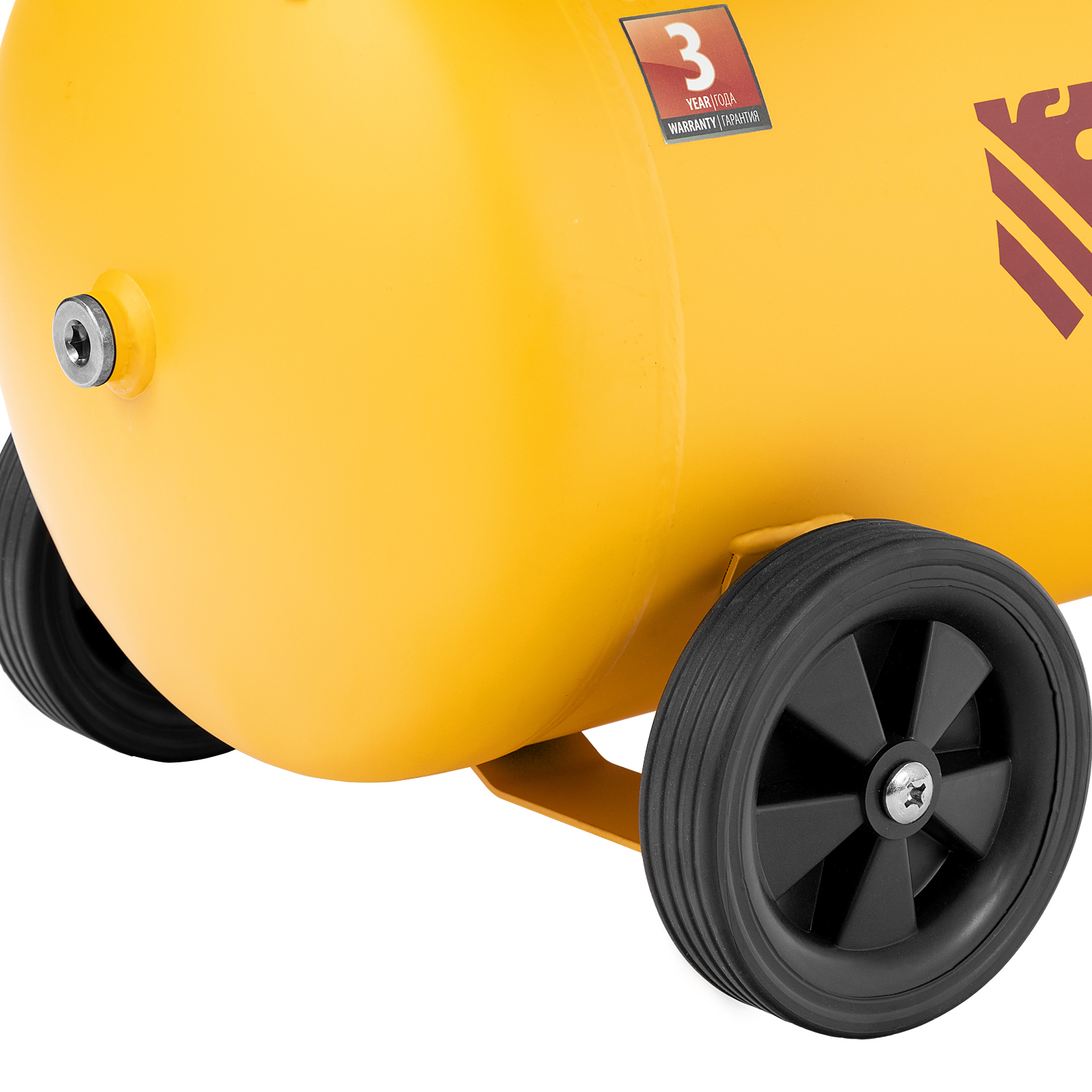 - Легкий слив конденсата — клапан в нижней части ресивера упрощает избавление от оставшегося после рабочей смены воздуха и скопившейся влаги.