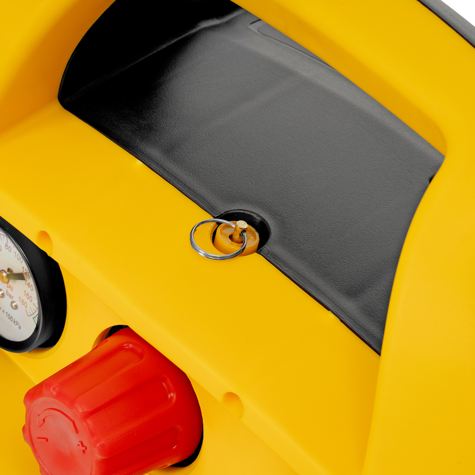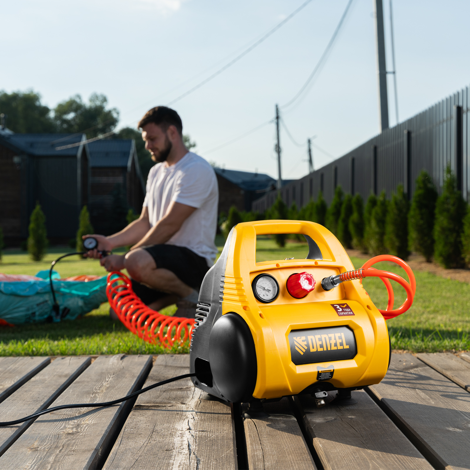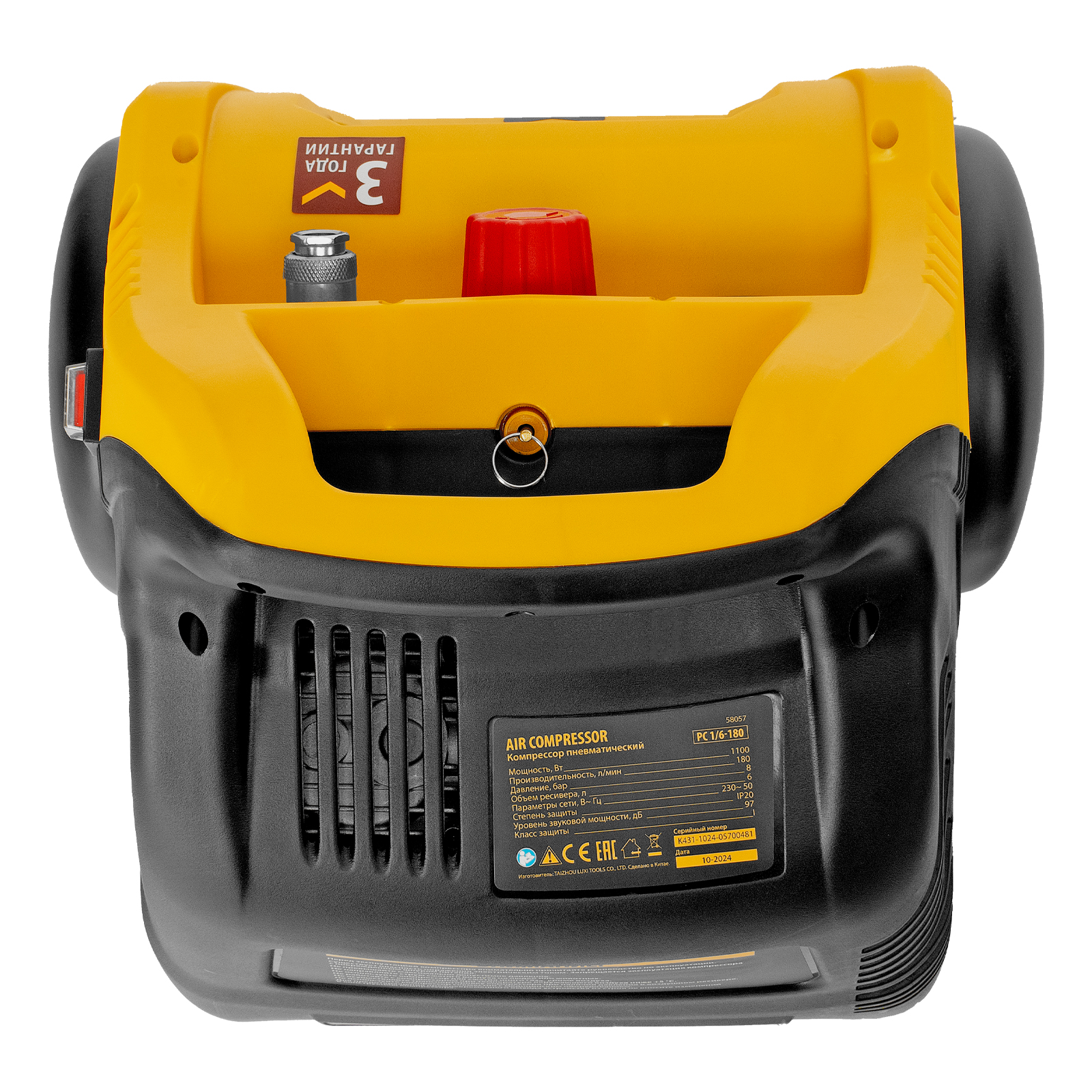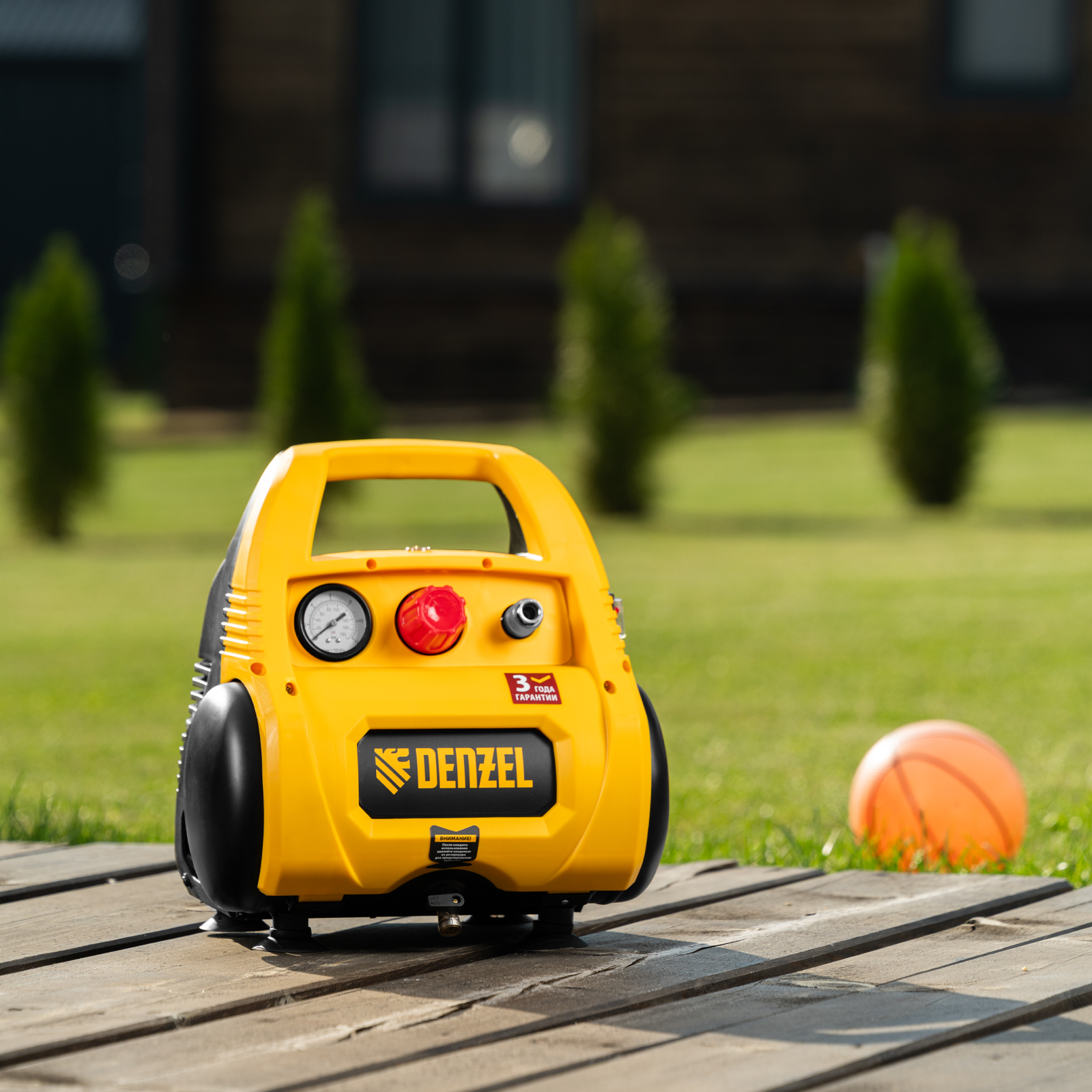 - Предохранительный клапан — изделие надежно защищено от превышения давления в ресивере, что упрощает работу и продлевает срок службы.
