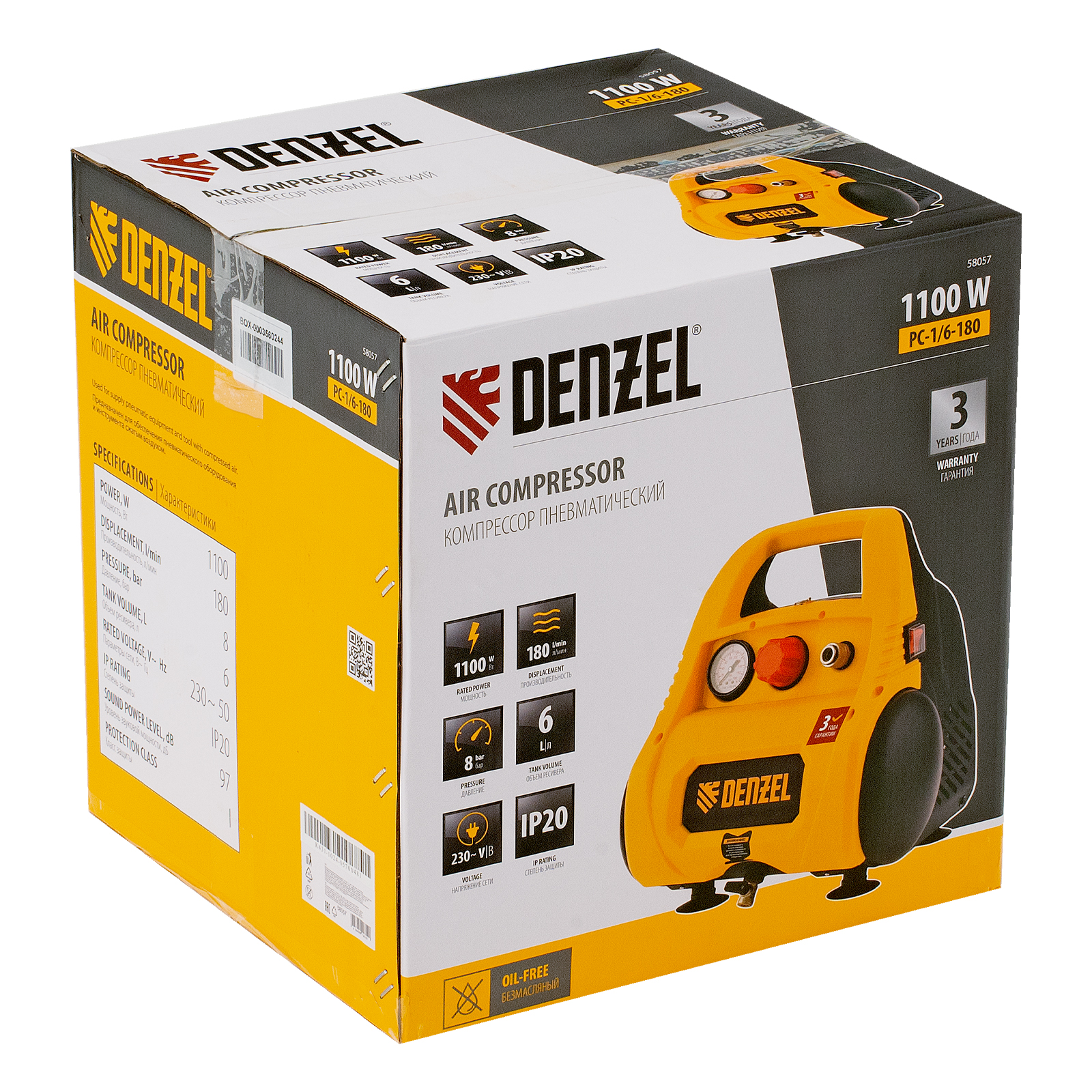 Безмасляный компрессор подходит для работ, не допускающих попадания масла в воздух: покраски, накачки шин, продувки компьютерной техники, чистки строительных инструментов. Допускается подключение пневмонейлера и пневмогравера. Безмасляная технология RTFE значительно упрощает работу с устройством: не нужно использовать маслоуловители или маслоотделители, искать масло и следить за его уровнем.,Генератор энергии сжатого воздуха вырабатывает 180 л в минуту с мощностью 1.1 кВт, что является пиковым значением для безмасляных моделей такого класса. ,Компактные размеры и продуманный дизайн позволяют легко переносить компрессор за удобную транспортировочную ручку. Вес 11.15 кг и габариты 30 х 33 х 36 см упрощают размещение устройства на рабочей площадке и хранение.