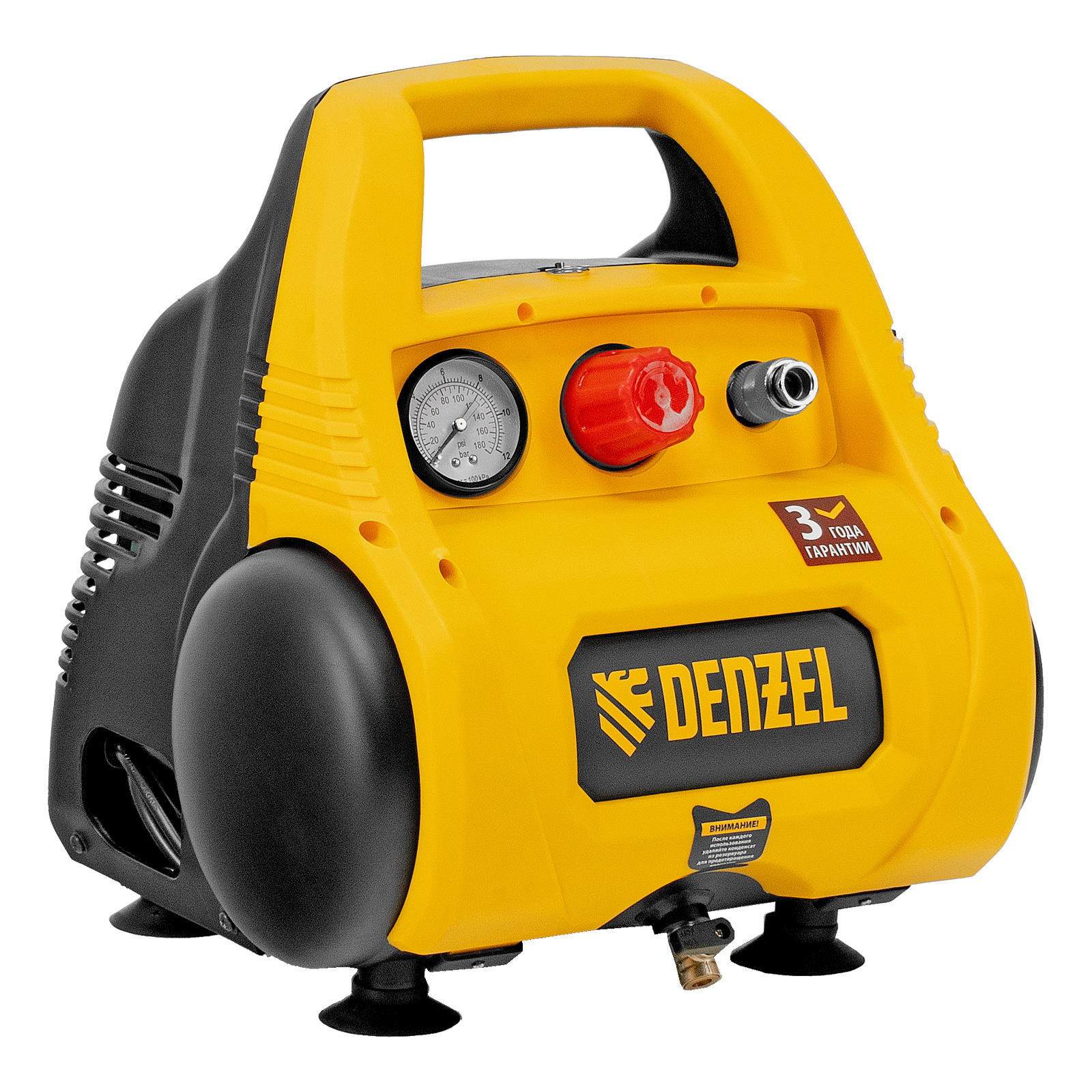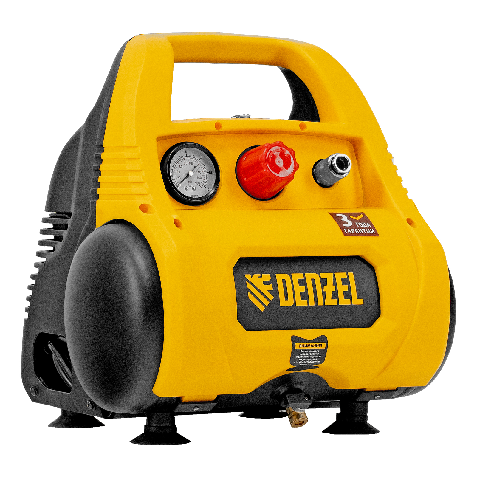 - Быстрое избавление от конденсата — влага из ресивера удаляется в два счета простым поворотом вентиля, без использования гаечного ключа.