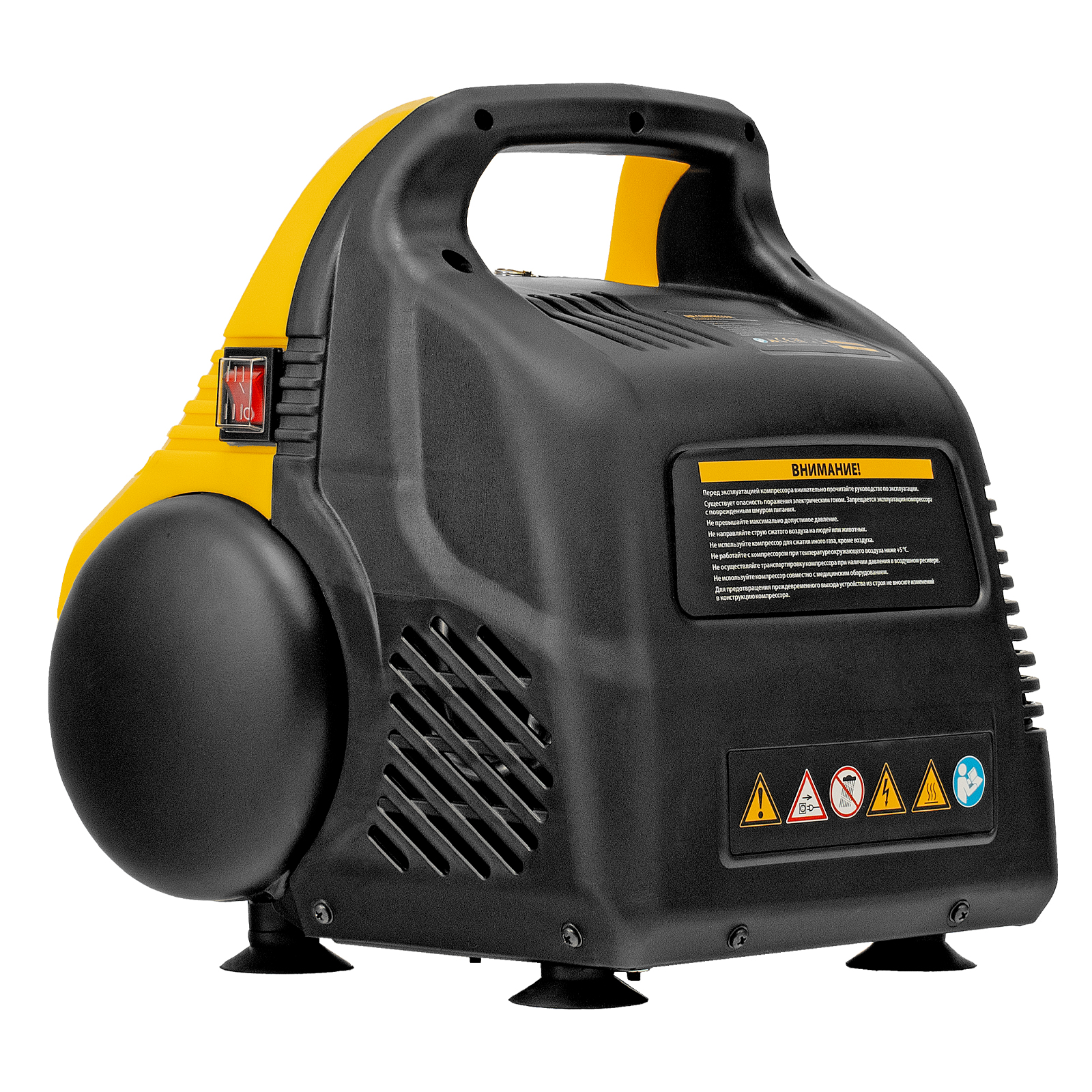 - Отсутствие вибраций и устойчивость — резиновые ножки-присоски гасят колебания от работающего компрессора и надежно фиксируют его на месте.