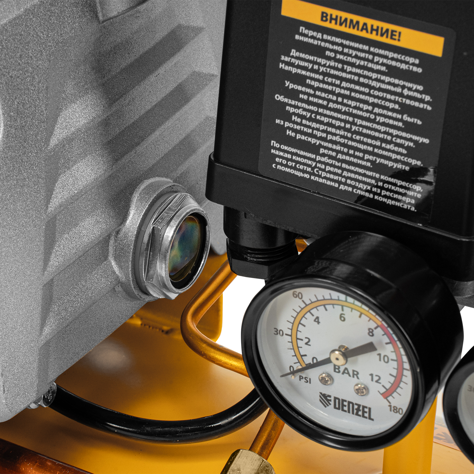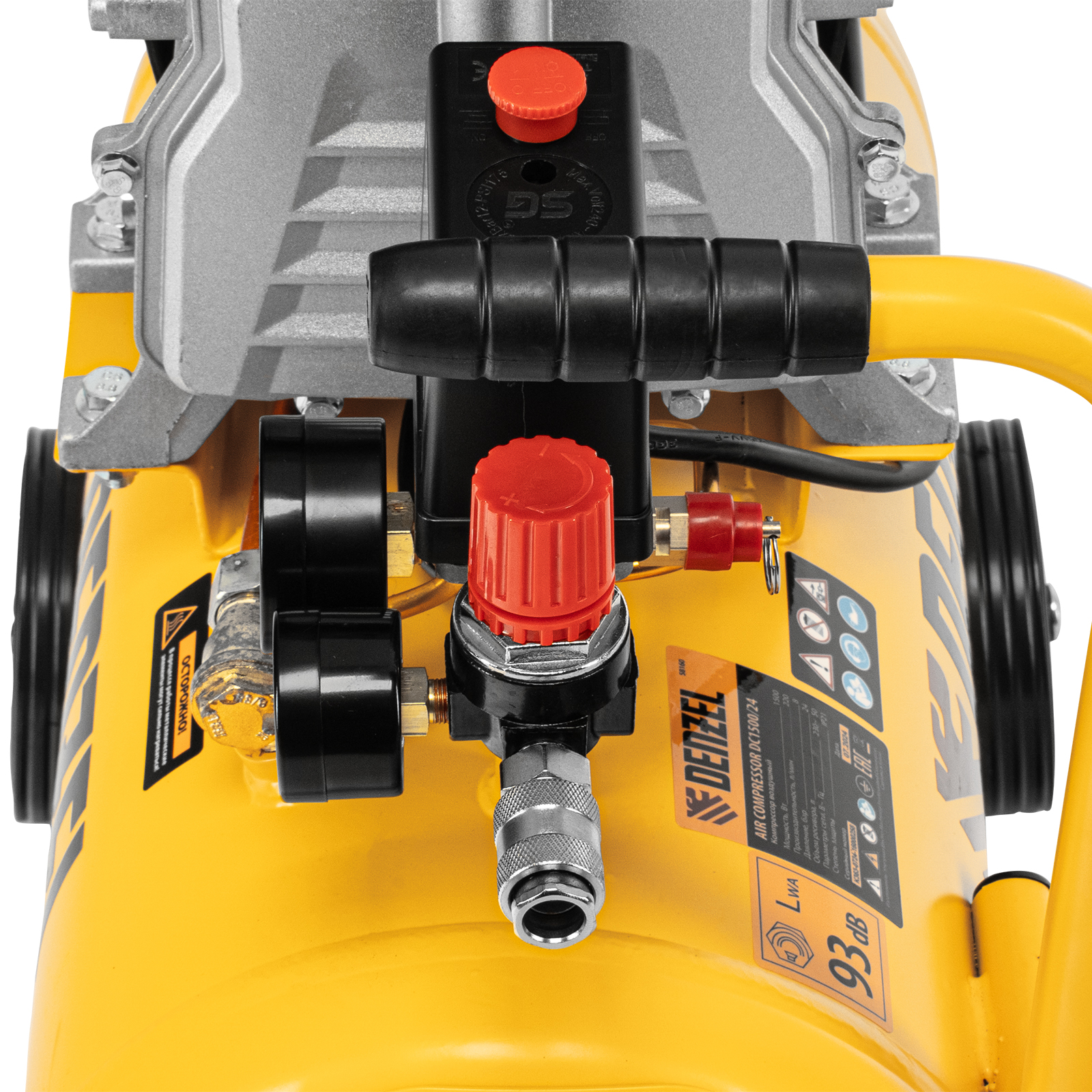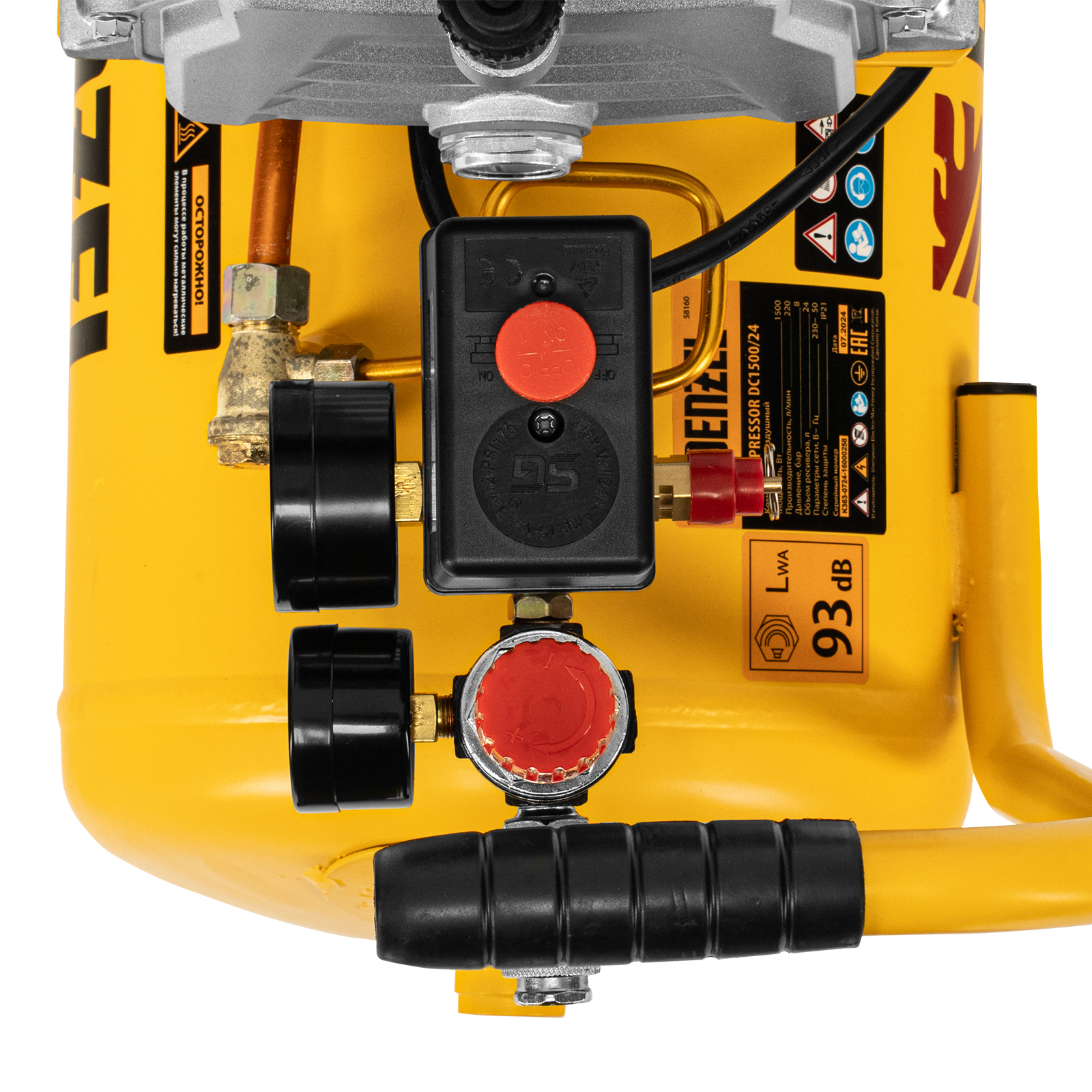 Воздушный компрессор с прямым приводом Denzel DC1500/24 58160 мощностью 1,5 кВт и производительностью на входе 220 л/мин, с объемом ресивера 24 л обеспечивает подачу сжатого воздуха к пневмоинструменту — пневмогайковерту, пневмошлифмашине, пневмодрели. Эффективная система смазки, снижающая нагрузку на двигатель, позволяет использовать компрессор для долговременных работ. Поэтому он будет полезен не только в загородном доме, но и в мастерской или гараже.
