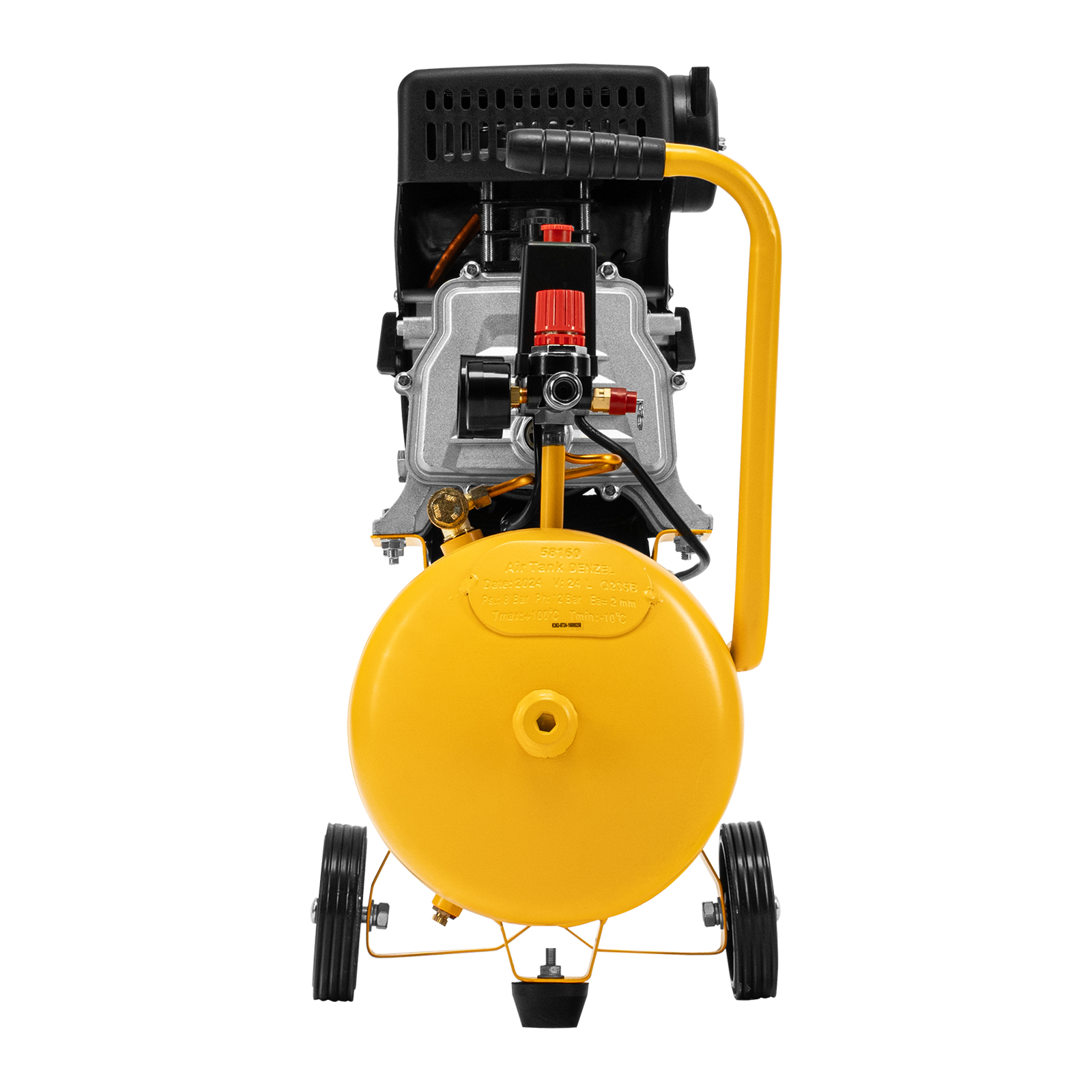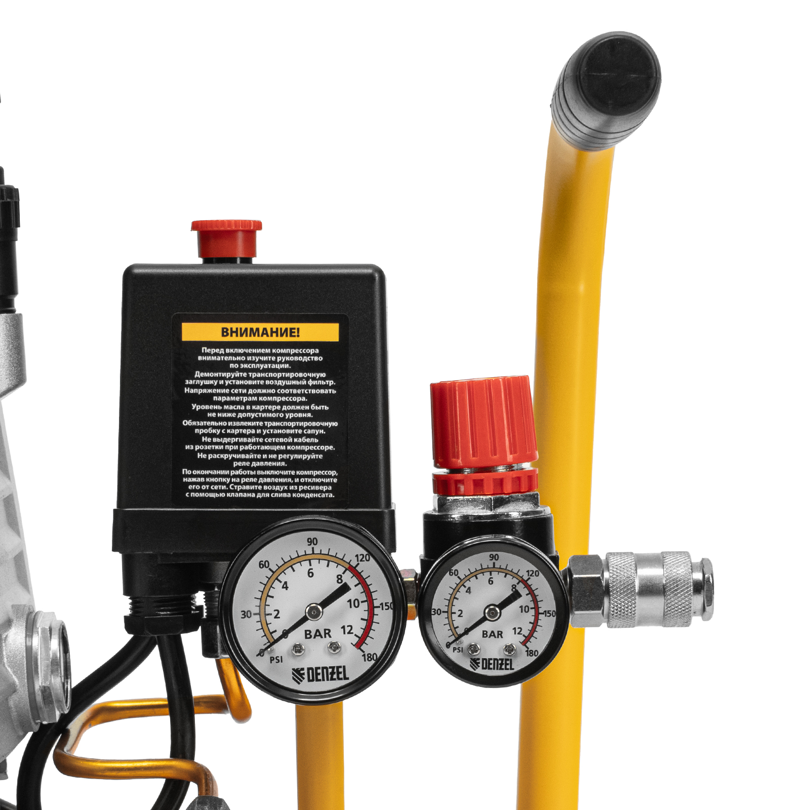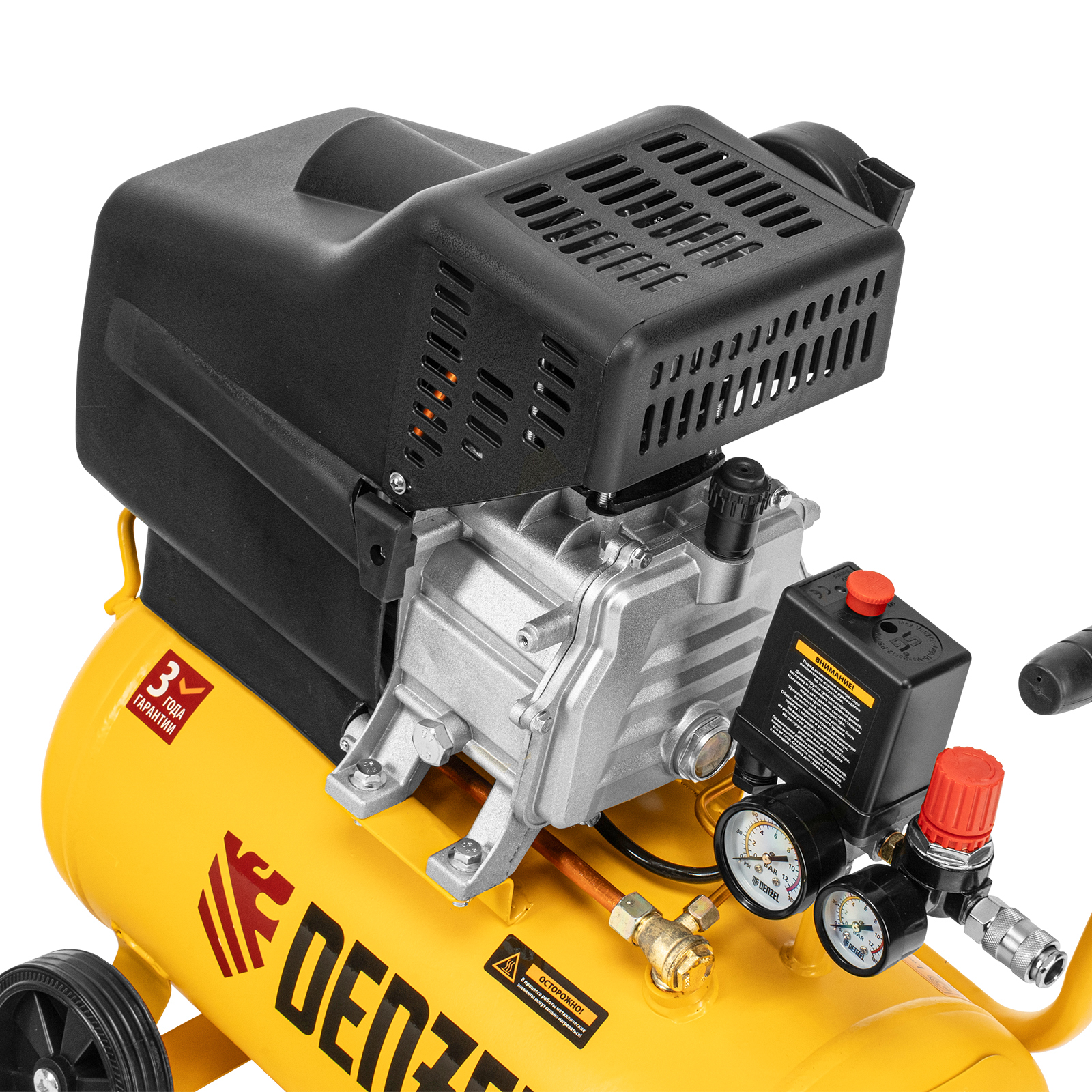 Воздушный компрессор с прямым приводом Denzel DC1500/24 58160 мощностью 1,5 кВт и производительностью на входе 220 л/мин, с объемом ресивера 24 л обеспечивает подачу сжатого воздуха к пневмоинструменту — пневмогайковерту, пневмошлифмашине, пневмодрели. Эффективная система смазки, снижающая нагрузку на двигатель, позволяет использовать компрессор для долговременных работ. Поэтому он будет полезен не только в загородном доме, но и в мастерской или гараже.
