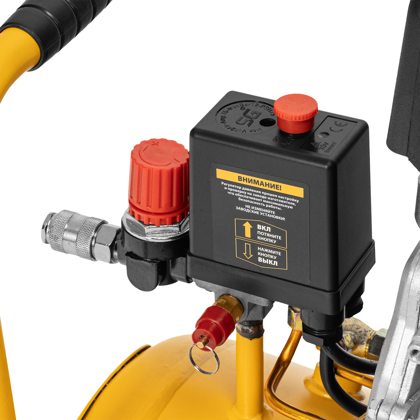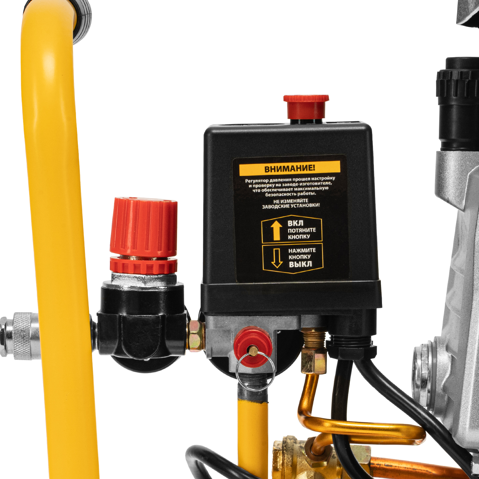 Прочная конструкция — цилиндр и коленвал выполнены из чугуна, ресивер изготовлен из стальных листов толщиной 2,5 мм и имеет прочные сварные швы