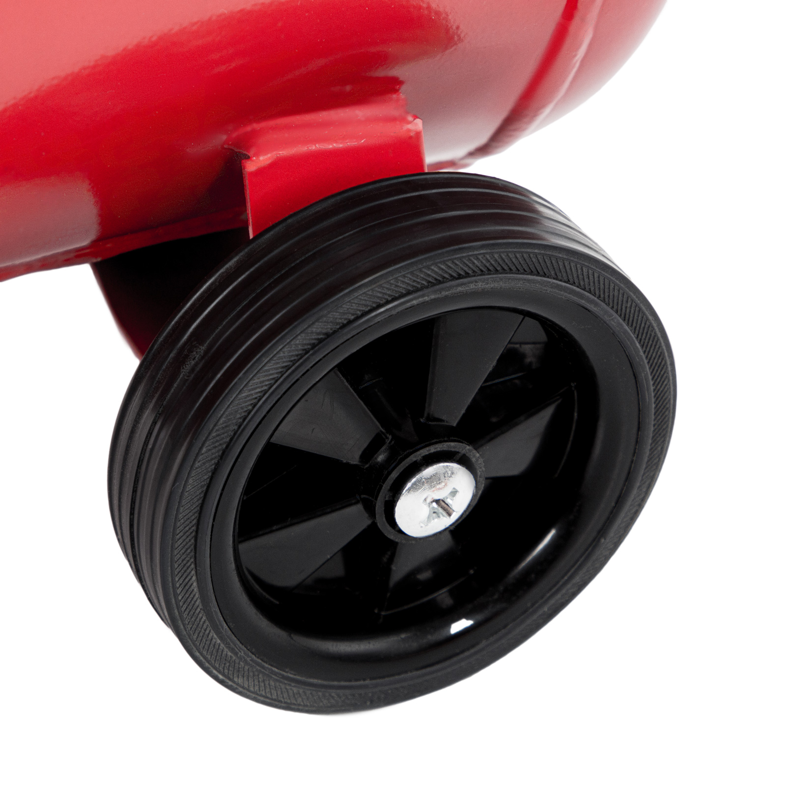 - Мобильность — для удобного перемещения компрессор оснащен колесами и нескользящей рукоятью.
