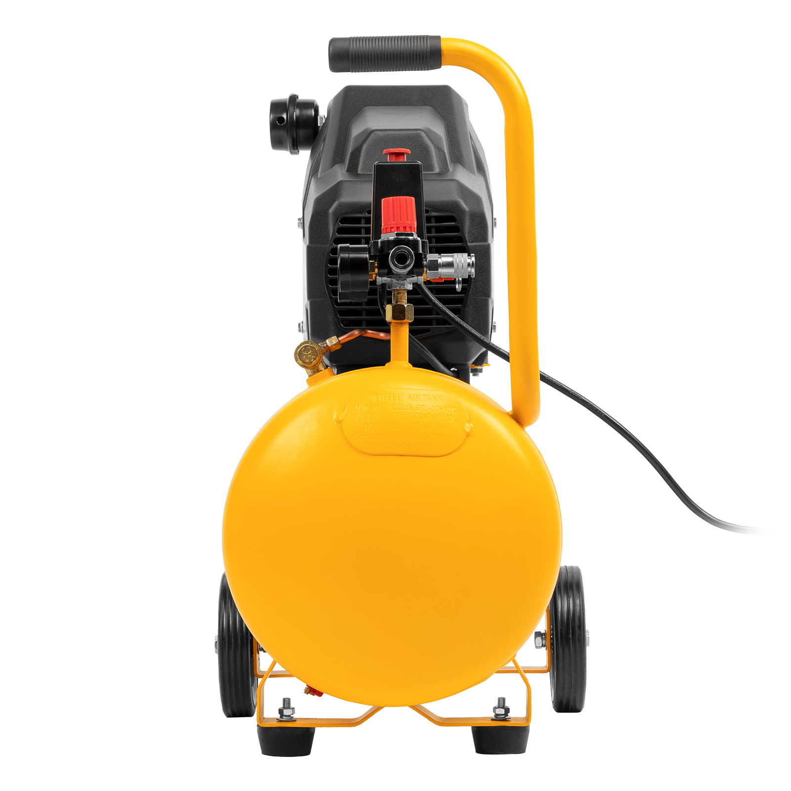 Мобильность — транспортировочные колеса позволяют легко перемещать компрессор по рабочей площадке.