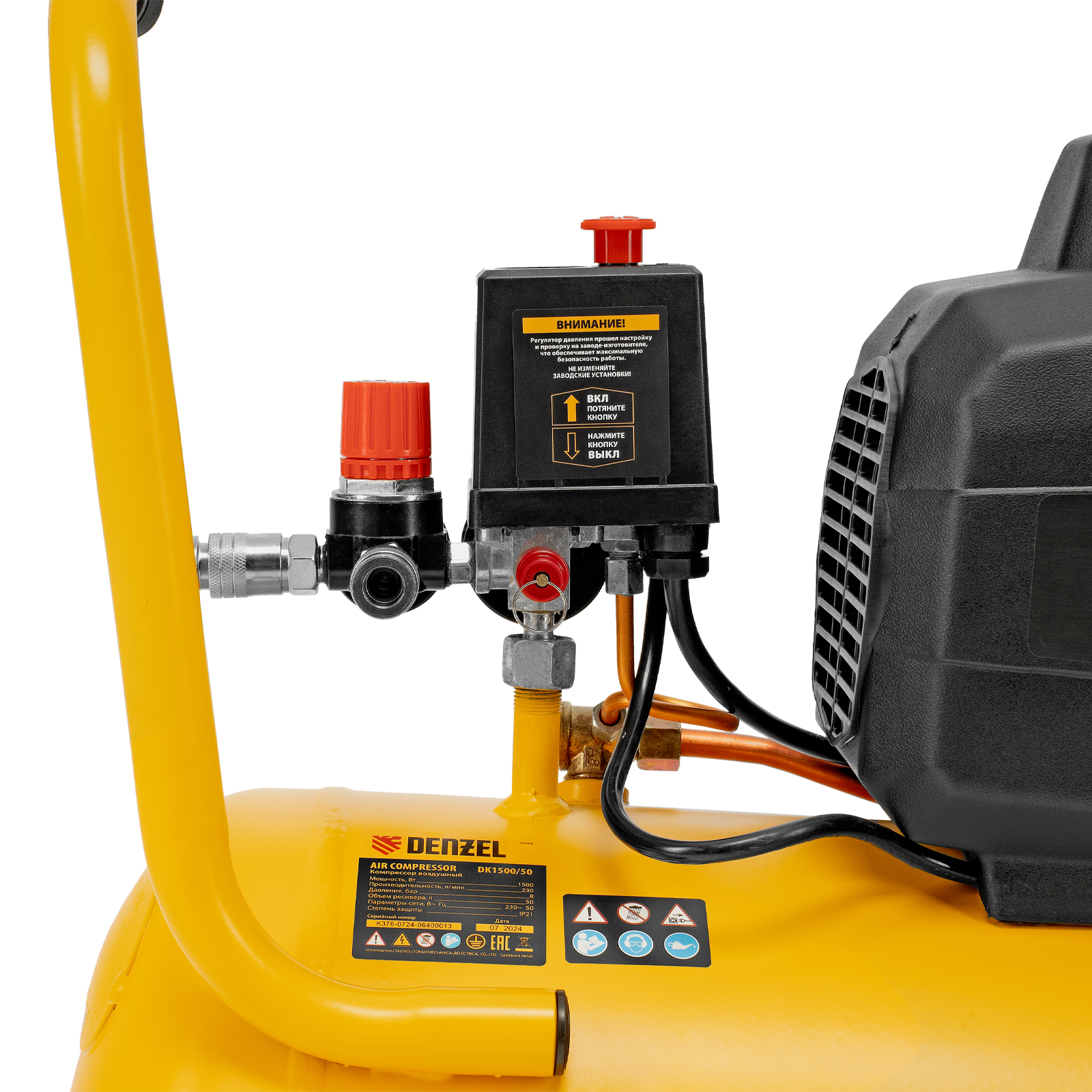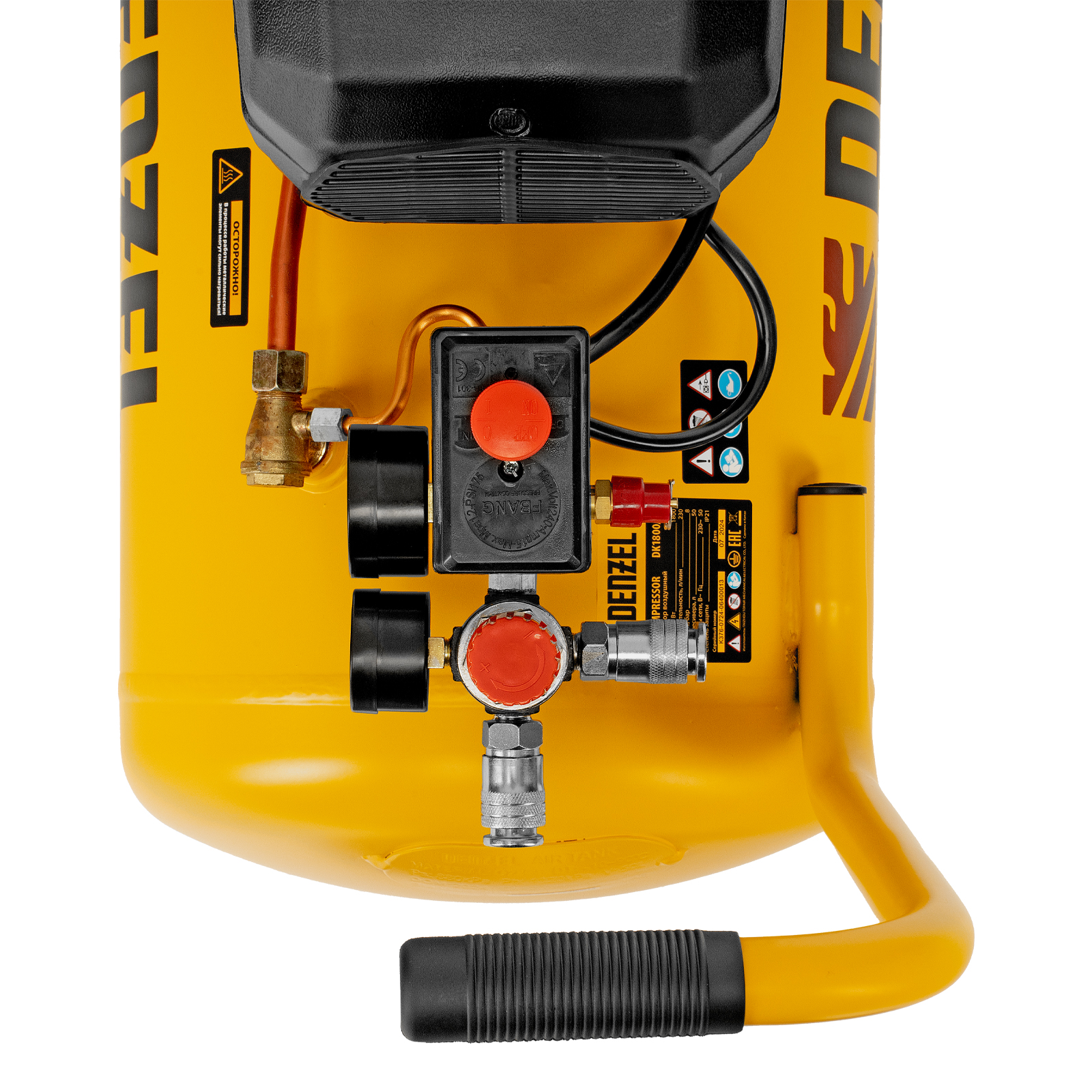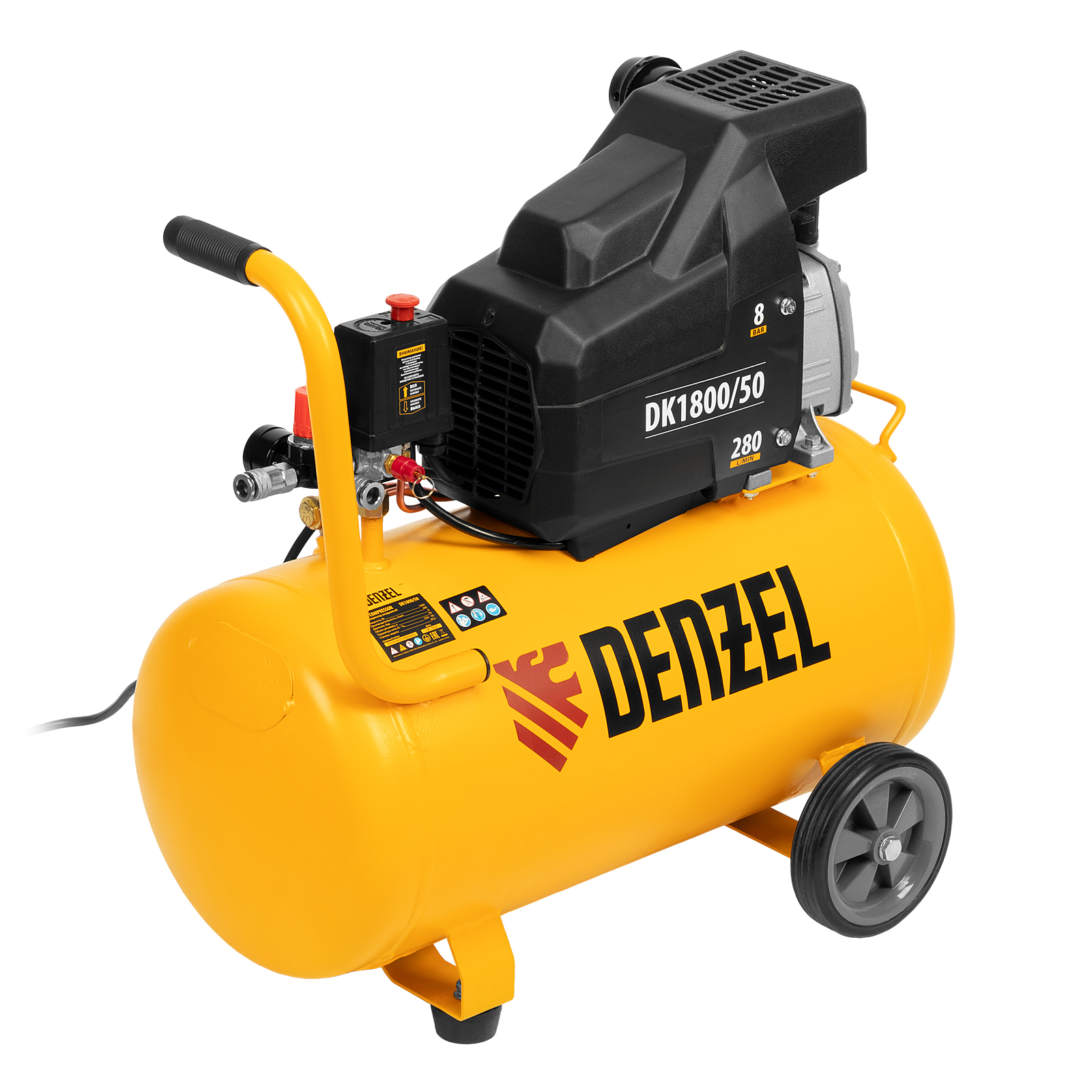 Воздушный компрессор Denzel Х-PRO DK1800/50 58068 мощностью 1,8 кВт, производительностью 280 л/мин, имеет ресивер объемом 50 л и подходит для бытового использования. Обеспечивает подачу воздуха к различным пневматическим инструментам: продувочному пистолету, краскопульту и др. Будет незаменим в гараже, когда надо подкачать колеса автомобиля или подкрасить его отдельные детали, а также на даче или в частной мастерской. Несмотря на простую конструкцию, компрессор имеет хорошую производительность и возможность подключения сразу нескольких инструментов.