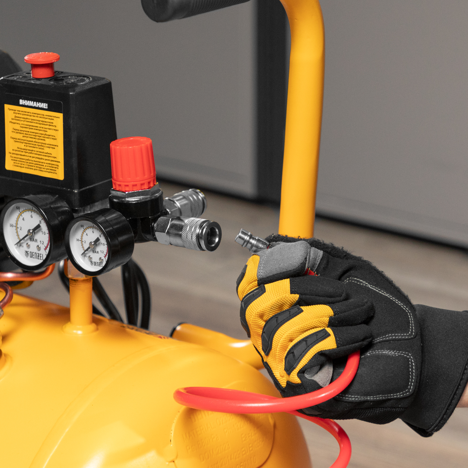 Простая подготовка к работе — быстросъемные коннекторы рапид (Евро) значительно облегчают процесс подключения пневмоинструмента к компрессору.