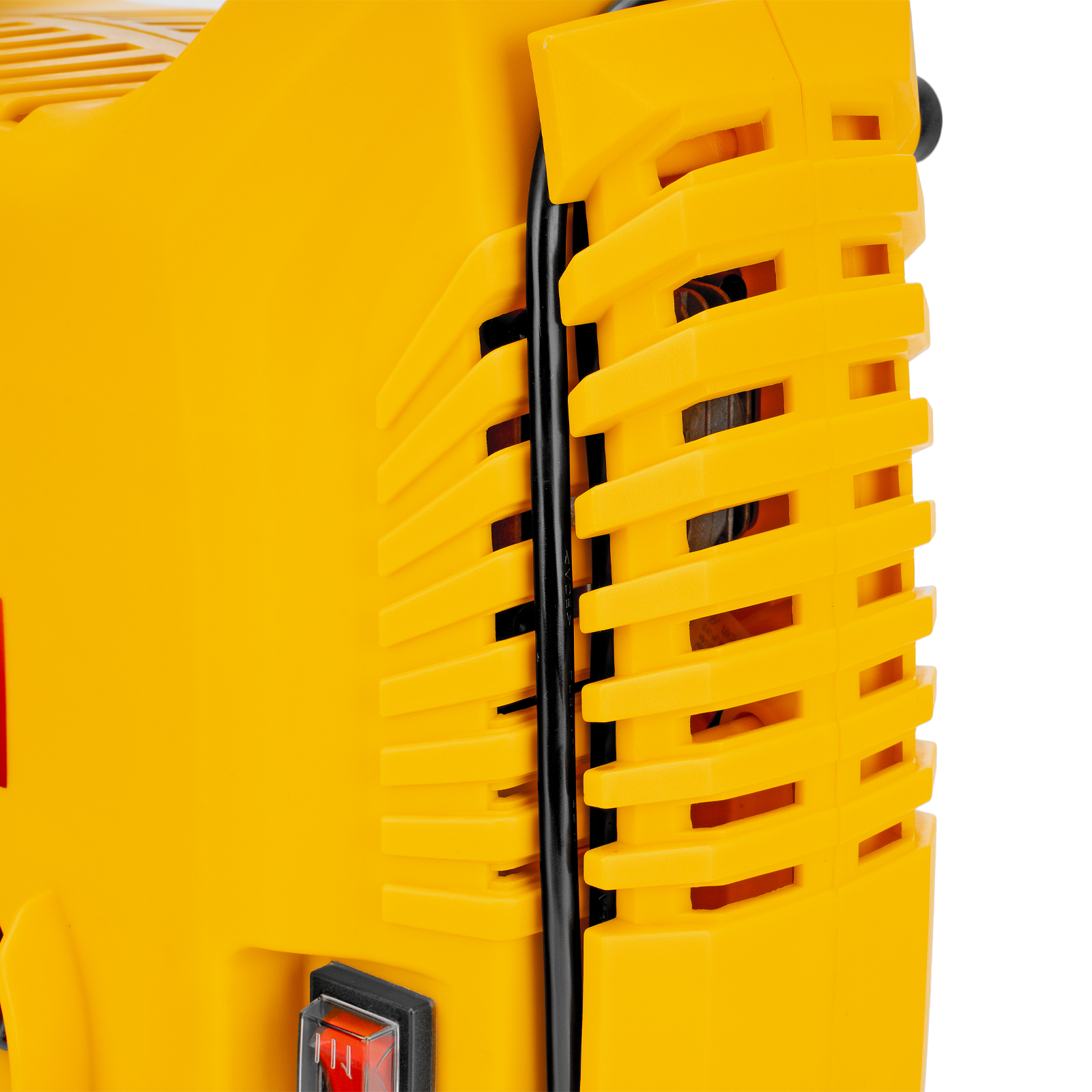 - Портативное исполнение — компрессор отличается компактными размерами 45 х 40 х 20 см и малым весом 9,85 кг, не занимает много места на рабочей площадке, удобно размещается в зоне хранения и транспортировки.