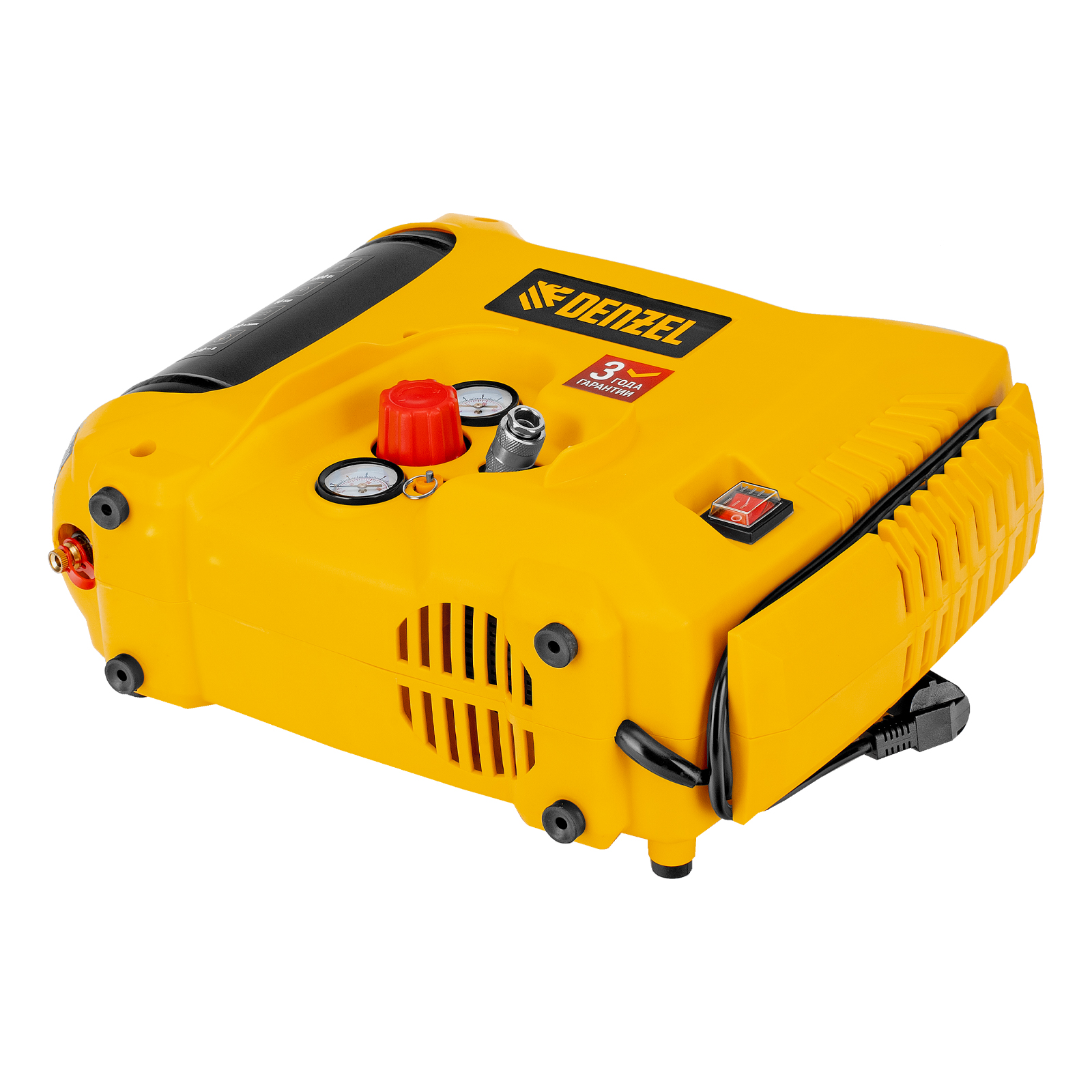 Компрессор воздушный Denzel DL1300 58011 мощностью 1,3 кВт, с максимальным рабочим давлением 10 бар, обеспечивает производительность 180 л/мин и поставляется с набором аксессуаров. Предназначен для обеспечения сжатым атмосферным воздухом нейлеров, степлеров, продувочных пистолетов, окрасочных и мовильных пистолетов и других пневмоинструментов, не требующих большого объема воздуха. Компрессор идеален для накачивания автомобильных шин, лодок, матрасов, мячей и прочих надувных изделий, а также для продувки труб водоснабжения.