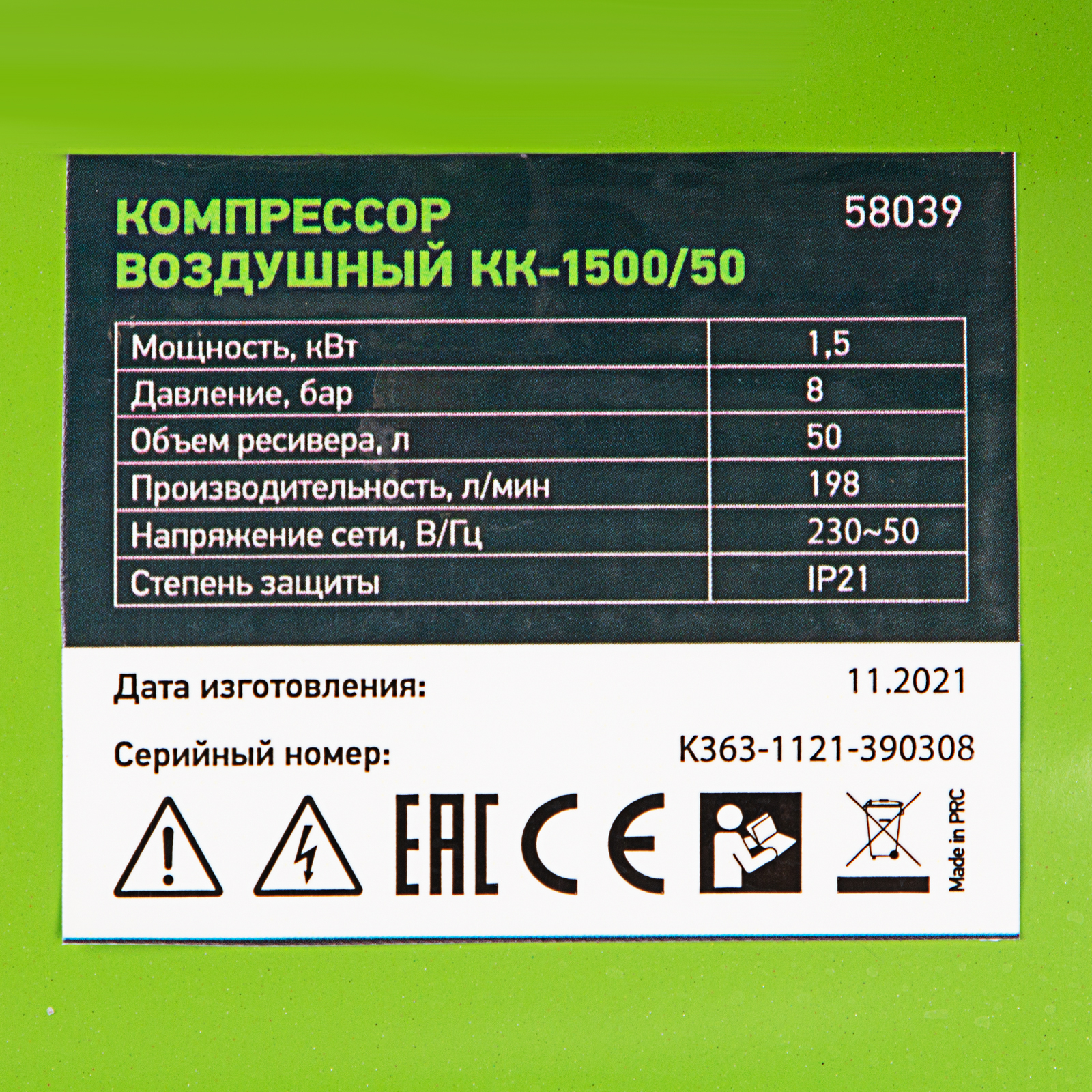 Компрессор снабжает сжатым воздухом продувочные, моечные пистолеты, дрели или другие пневматические системы. Он отлично впишется в автосервис, небольшое производство, строительную площадку, а также пригодится для бытовых нужд. С помощью компрессора Вы без труда очистите технику, накачаете шины, резиновый бассейн или другие надувные устройства, выполните ремонтные работы.,Компрессор КК-1500/50 — это сочетание мощного мотора на 1500 Вт, высокой производительности и мобильности. За одну минуту установка генерирует 198 литров сжатого воздуха, наполняя ресивер объемом 50 л.,Продуманная технология безопасности обеспечивает надежную защиту электромотора — при скачках напряжения и нагреве двигателя выше допустимой нормы компрессор отключается. Под ударопрочным корпусом изделия находится статор с прочно зафиксированной обмоткой, это позволило увеличить ресурс двигателя и обеспечить стабильную производительность.