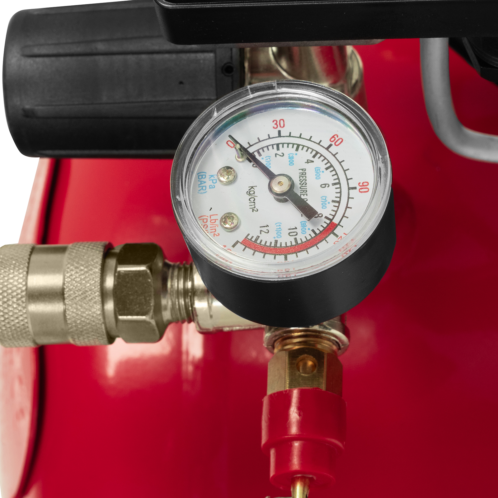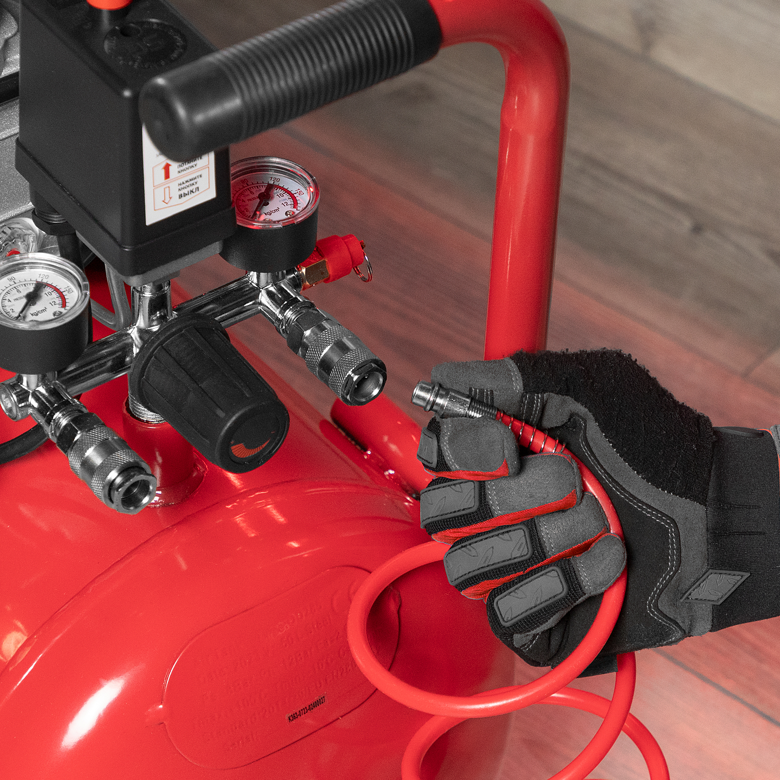 - Удобный контроль рабочих параметров — 2 манометра и регулятор позволяют отслеживать и корректировать давление для корректной работы пневмоинструмента.