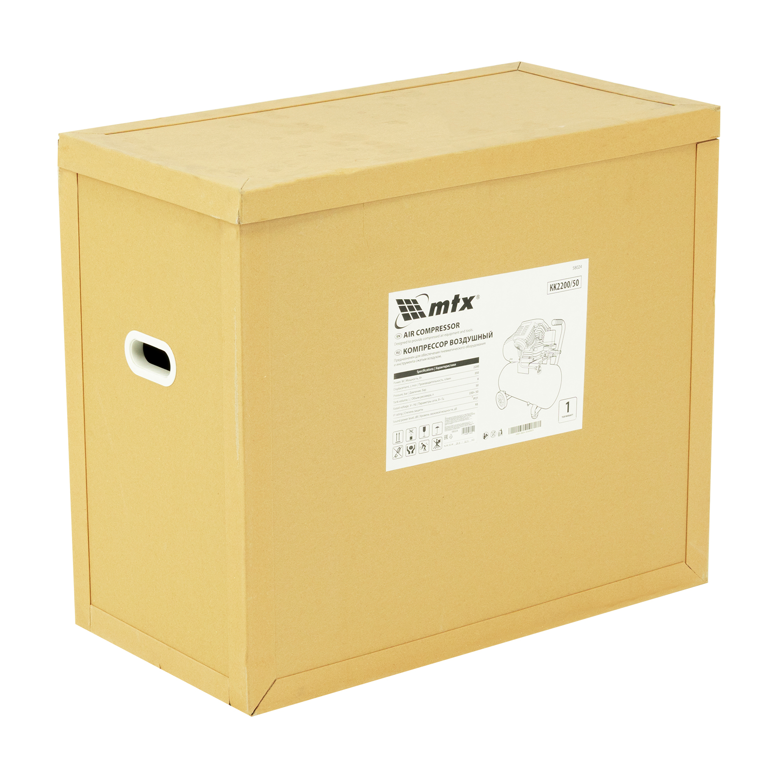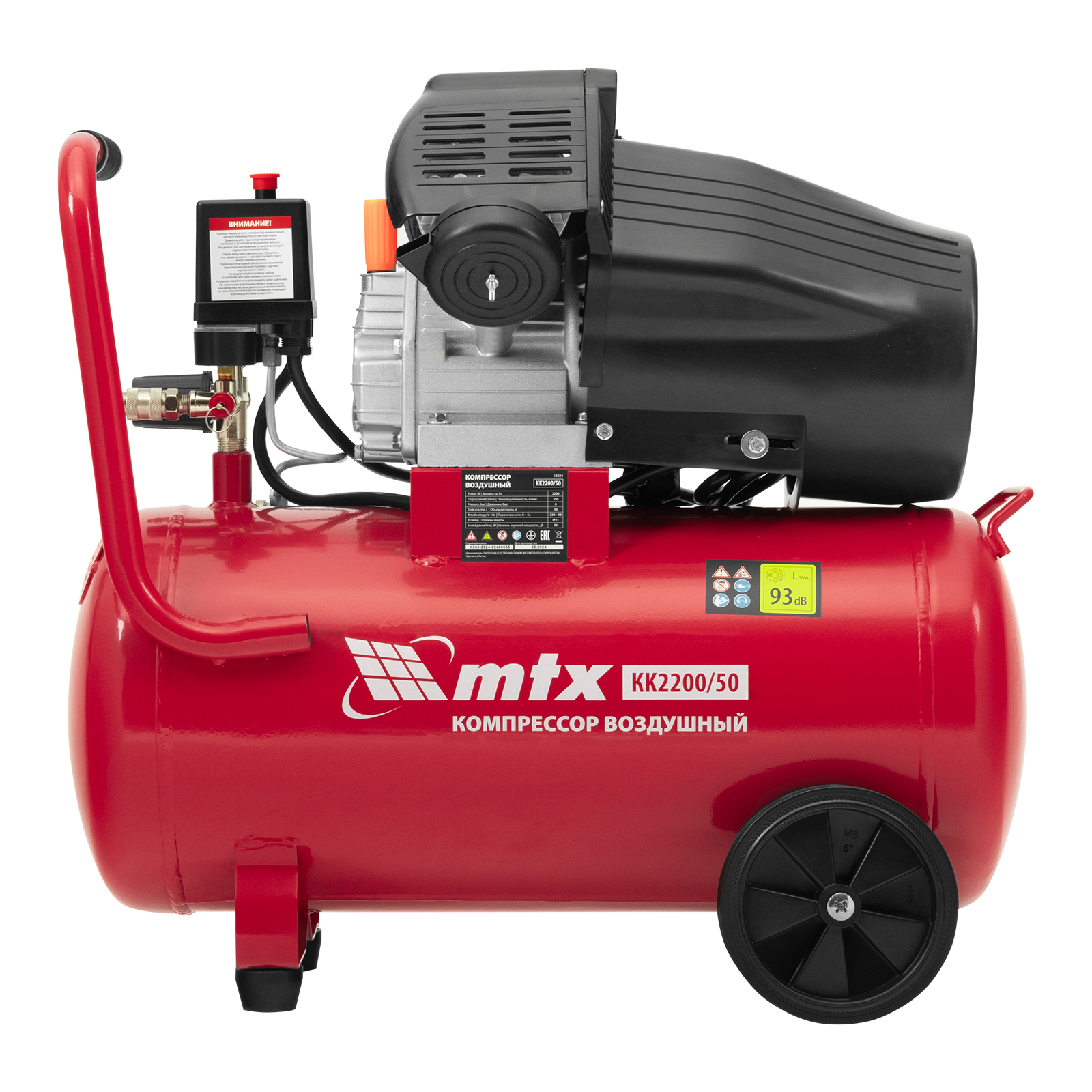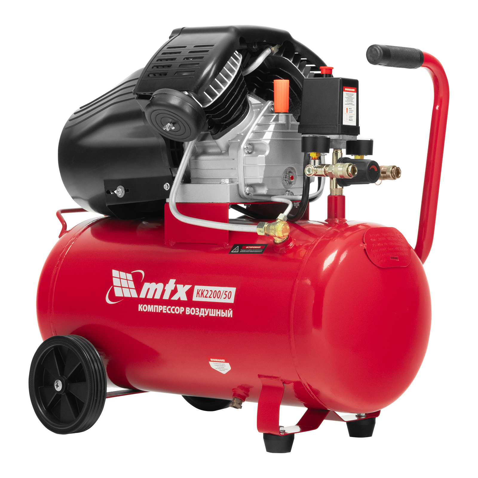 Компрессор воздушный масляный MTX KK-2200/50 58024 мощностью 2,2 кВт, с прямым приводом, оснащен ресивером объемом 50 л, обеспечивает производительность на уровне 350 л/мин и рассчитан на давление до 8 бар. Предназначен для обеспечения работоспособности пневматического инструмента: гайковерта, шлифовальной машины, шуруповерта, краскораспылителя или т.д. Мощный и производительный компрессор будет полезен на строительной площадке, в гараже, на предприятии автосервиса.