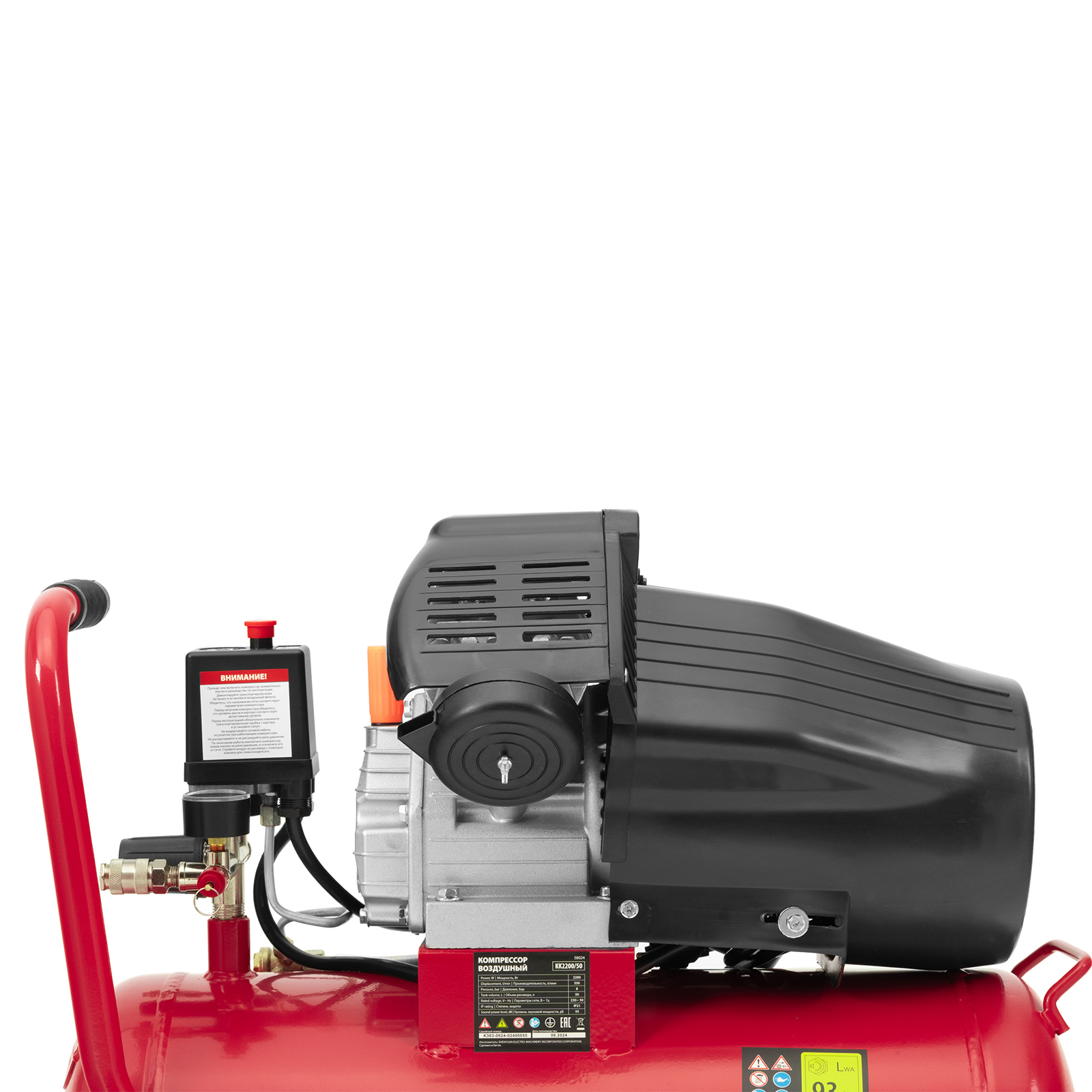 - Автономная работа — прессостат обеспечивает автоматическую остановку двигателя по достижении максимального рабочего давления и запуск при падении давления до минимального уровня.