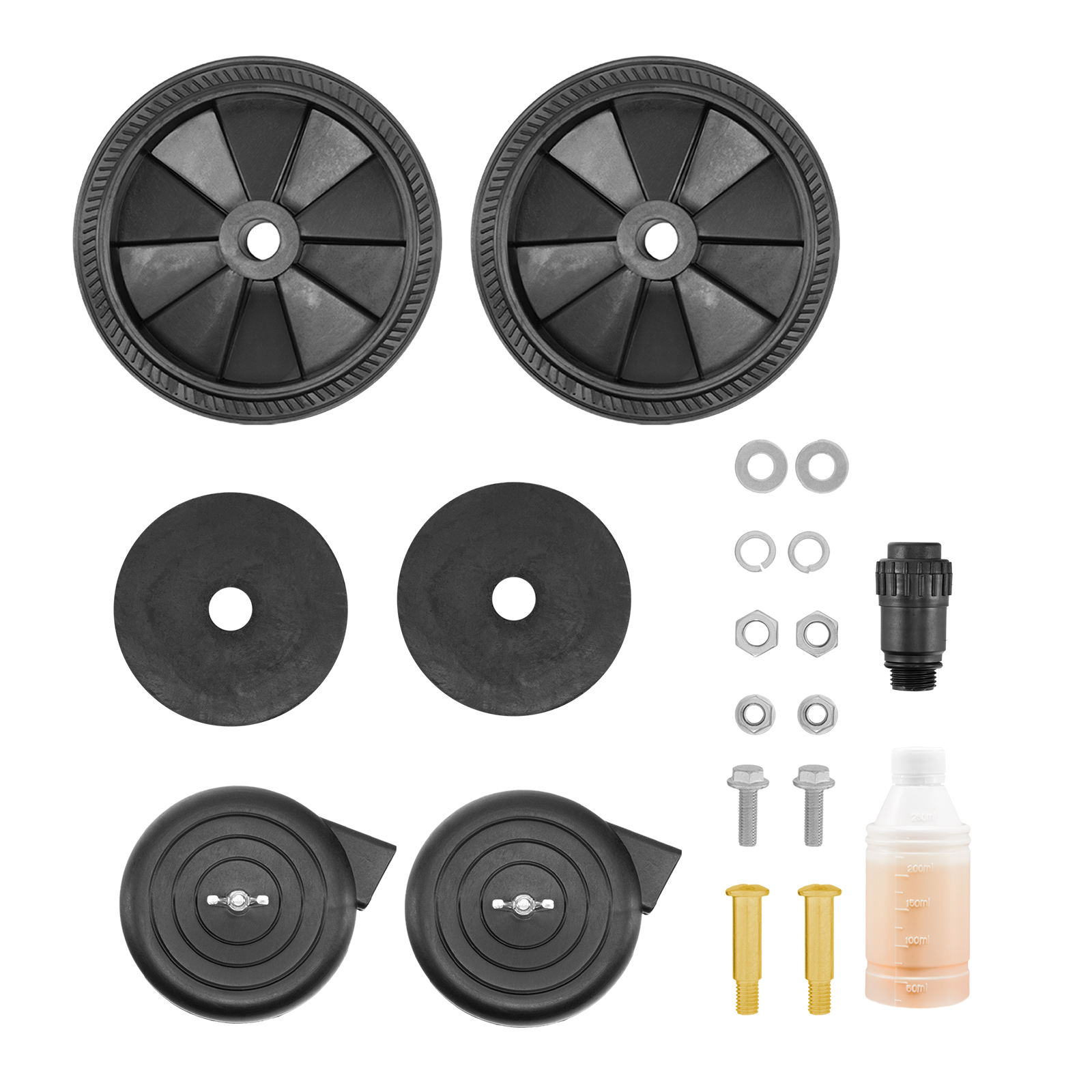 - Удобное перемещение по рабочей площадке — конструкцией предусмотрены колеса и рукоятка.