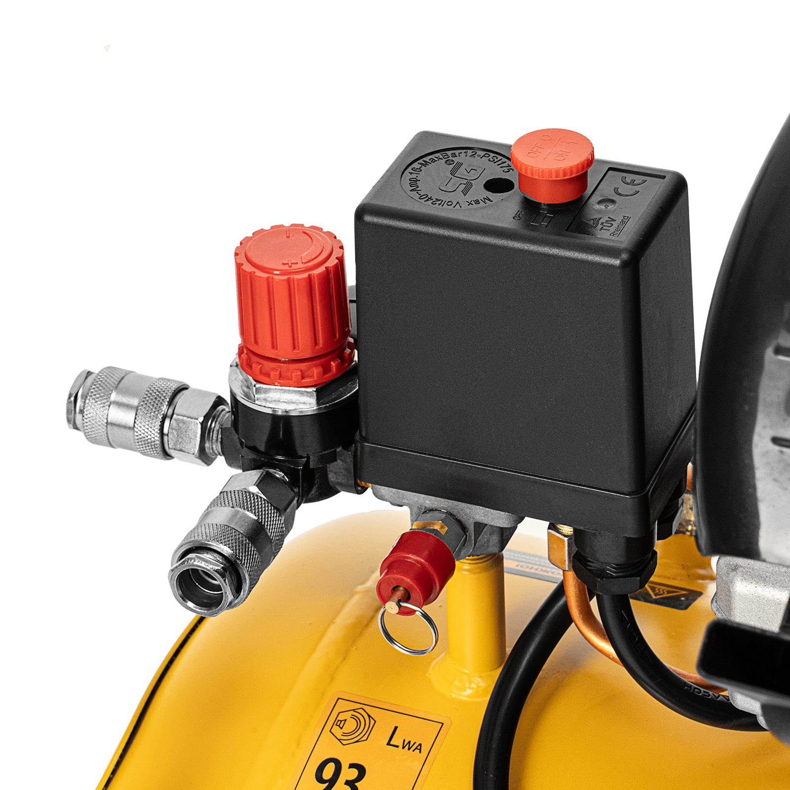 Воздушный компрессор с прямым приводом Denzel DCV1800/50 58168 мощностью 1,8 кВт и производительностью на входе 320 л/мин, с объемом ресивера 50 л, подходит для обеспечения длительной работы пневмогайковерта, пневмозубила, пневмодрели, пневмомолотка или другого пневмоинструмента. Быстроразъемные коннекторы Рапид (Евро) облегчают подключение пневмомагистралей. Эффективная система смазки снижает износ деталей и уменьшает нагрузку на двигатель, что позволяет использовать компрессор в профессиональной сфере.