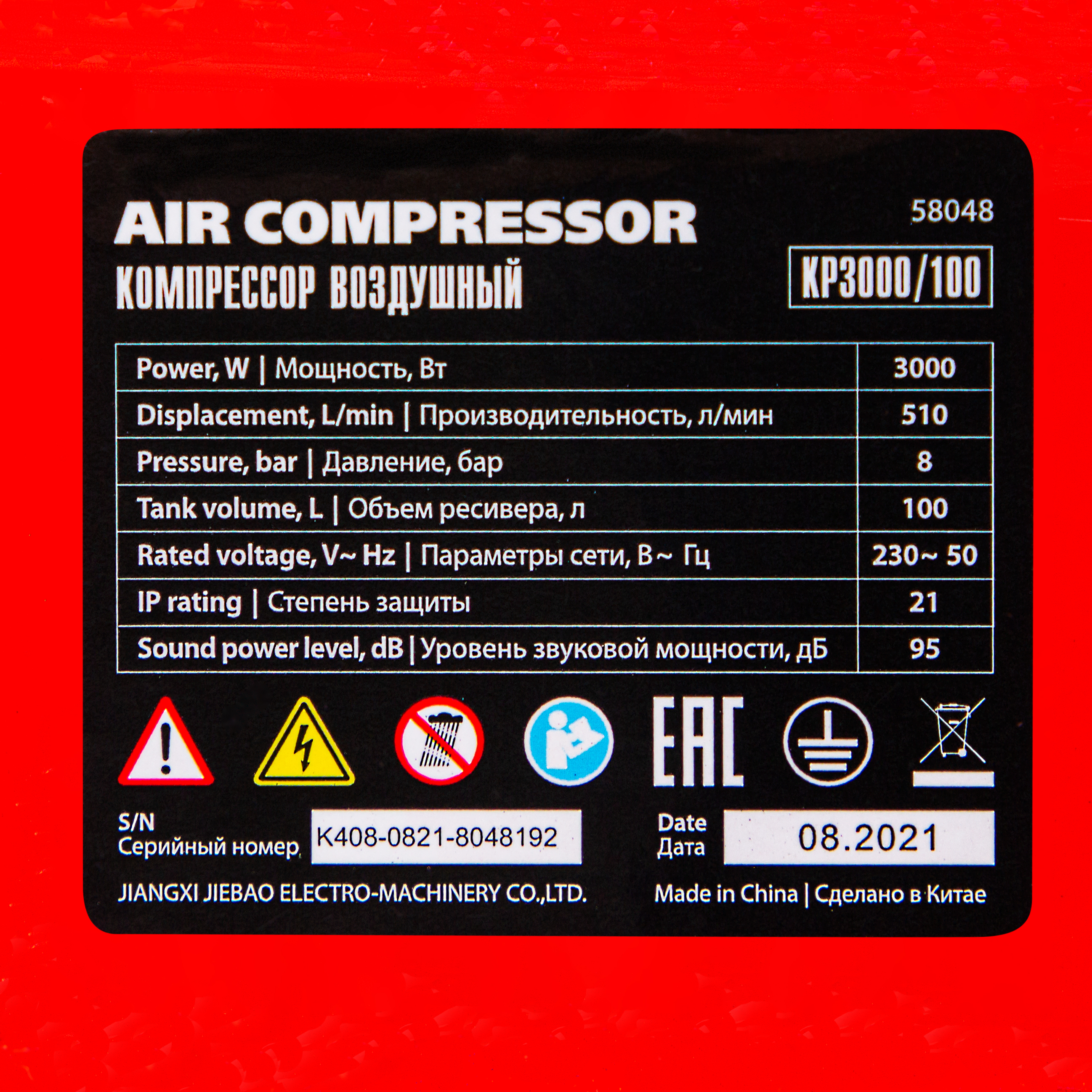 - Готовность к работе — комплект крепежа, колеса, сапун и компрессорное минеральное масло марки DAA100 (500 мл) входят в комплект поставки.