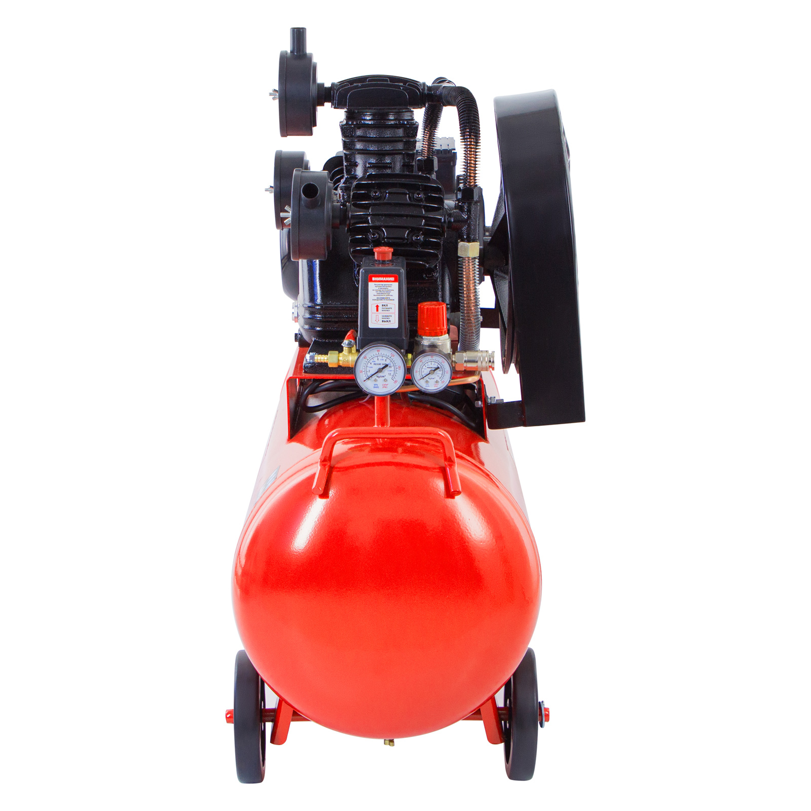 - Мобильность — для удобного перемещения компрессор оснащен колесами и ручкой.