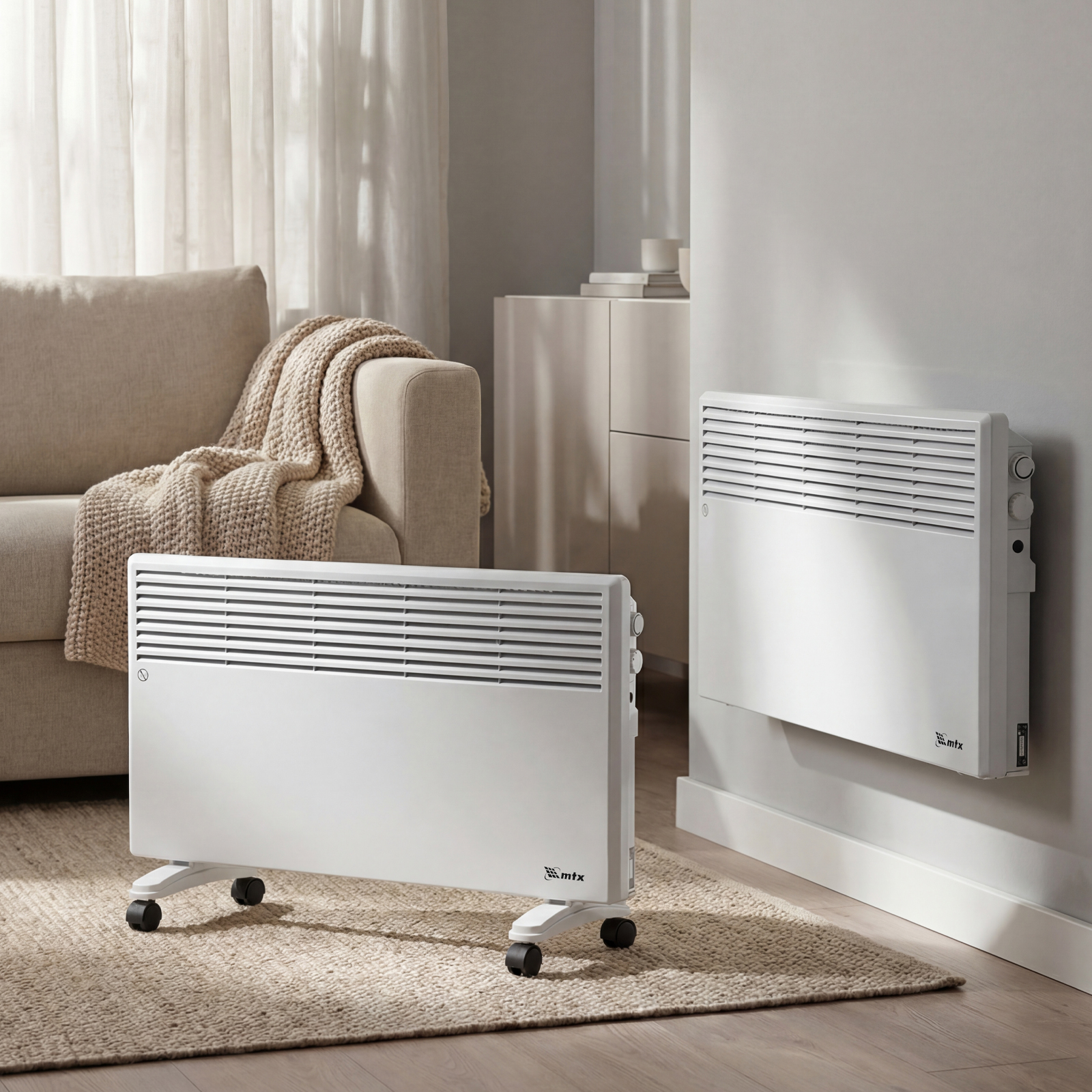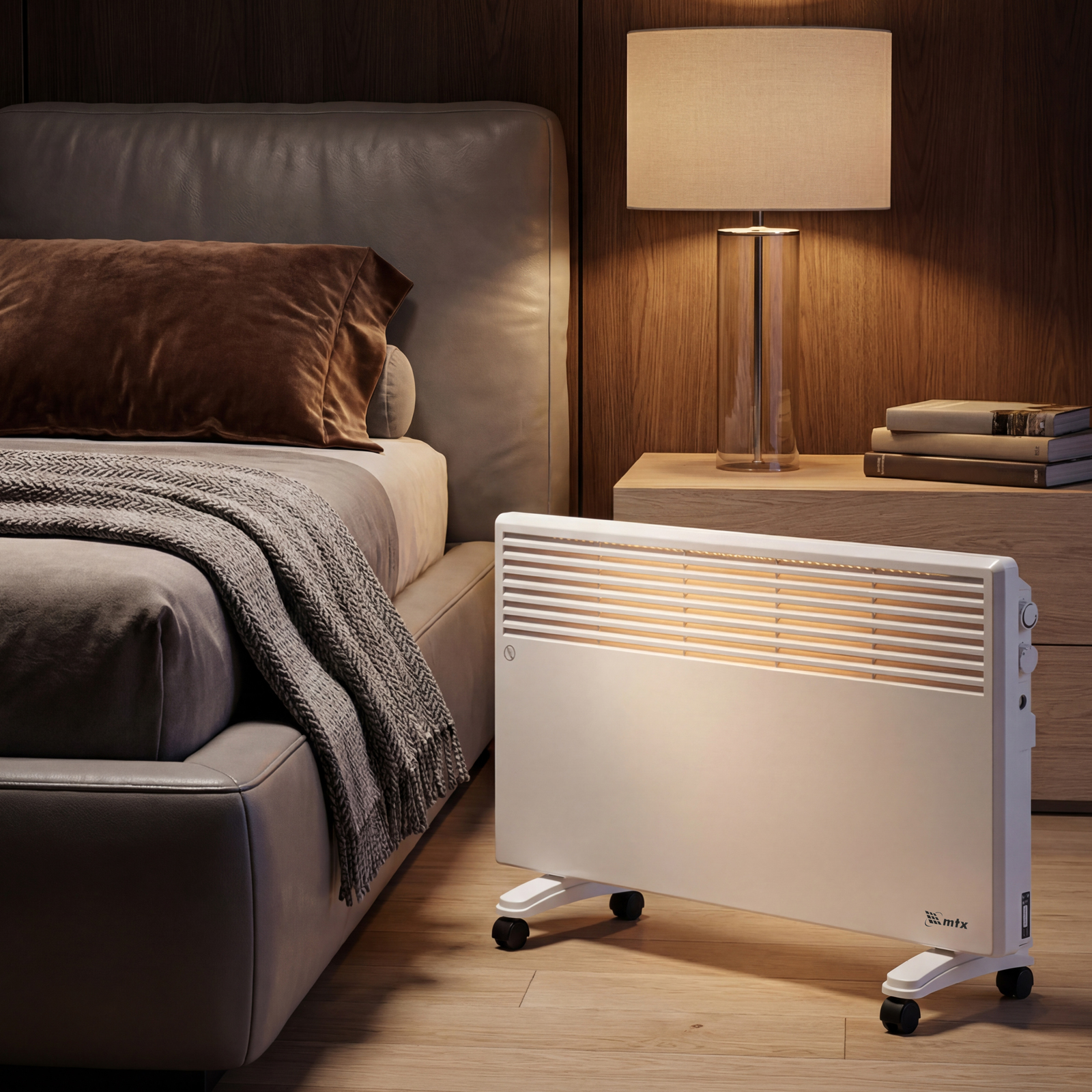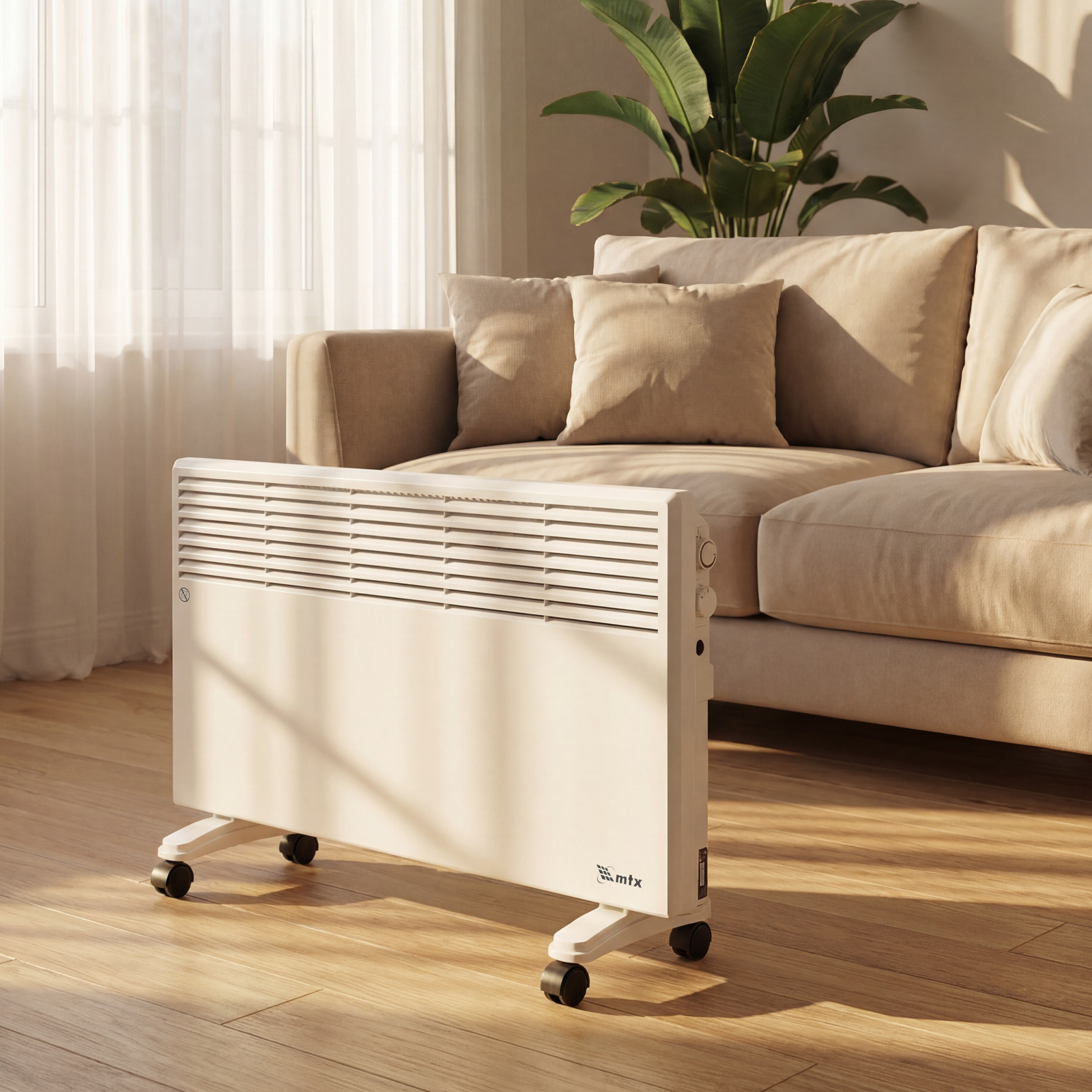 Электрический конвектор MTX CH-2000 98107 максимальной мощностью 2000 Вт, с X-образным нагревателем, термостатом и колесами, — источник тепла для жилых, офисных и хозяйственных помещений. X-образный нагревательный элемент позволяет быстро и равномерно нагреть помещение до нужной температуры. Площадь обогрева составляет 25 м2.