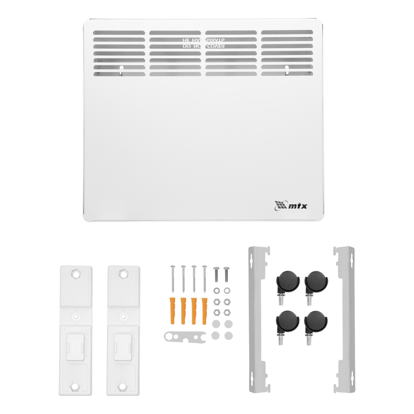 Конвектор - 1 штОпора с колесами - 2 штКронштейн для крепления к стене - 1 штКомплект крепежа - 1 штРуководство по эксплуатации с гарантийным талоном - 1 шт
