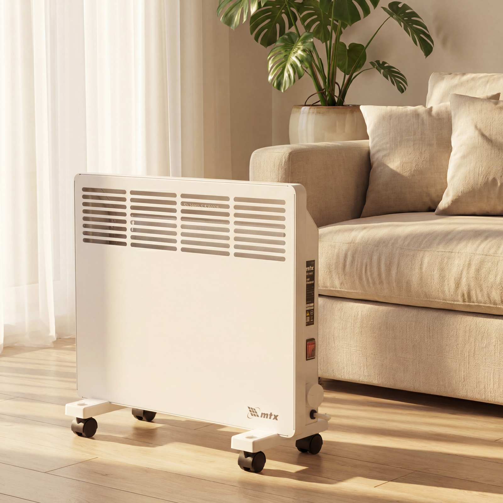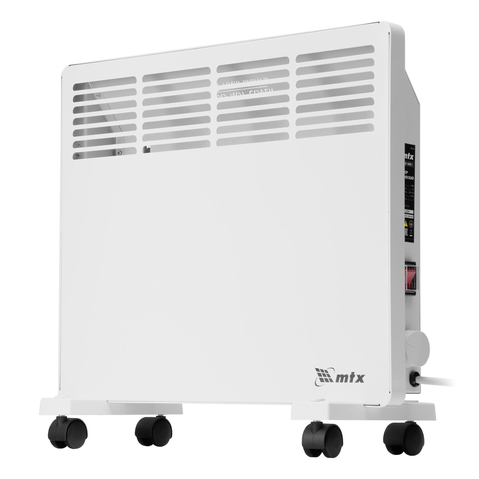 Конвектор электрический MTX KM-1000.1 98124 с X-образным нагревателем, колесами и термостатом, мощностью 1000 Вт, предназначен для использования в закрытых помещениях: квартирах, офисах, на производствах, в общественных местах и т.д. Рекомендуемая площадь обогрева составляет 15 кв.м. Х-образный нагревательный элемент обеспечивает быстрый и равномерный прогрев помещения до необходимой температуры, при этом не сушит воздух.