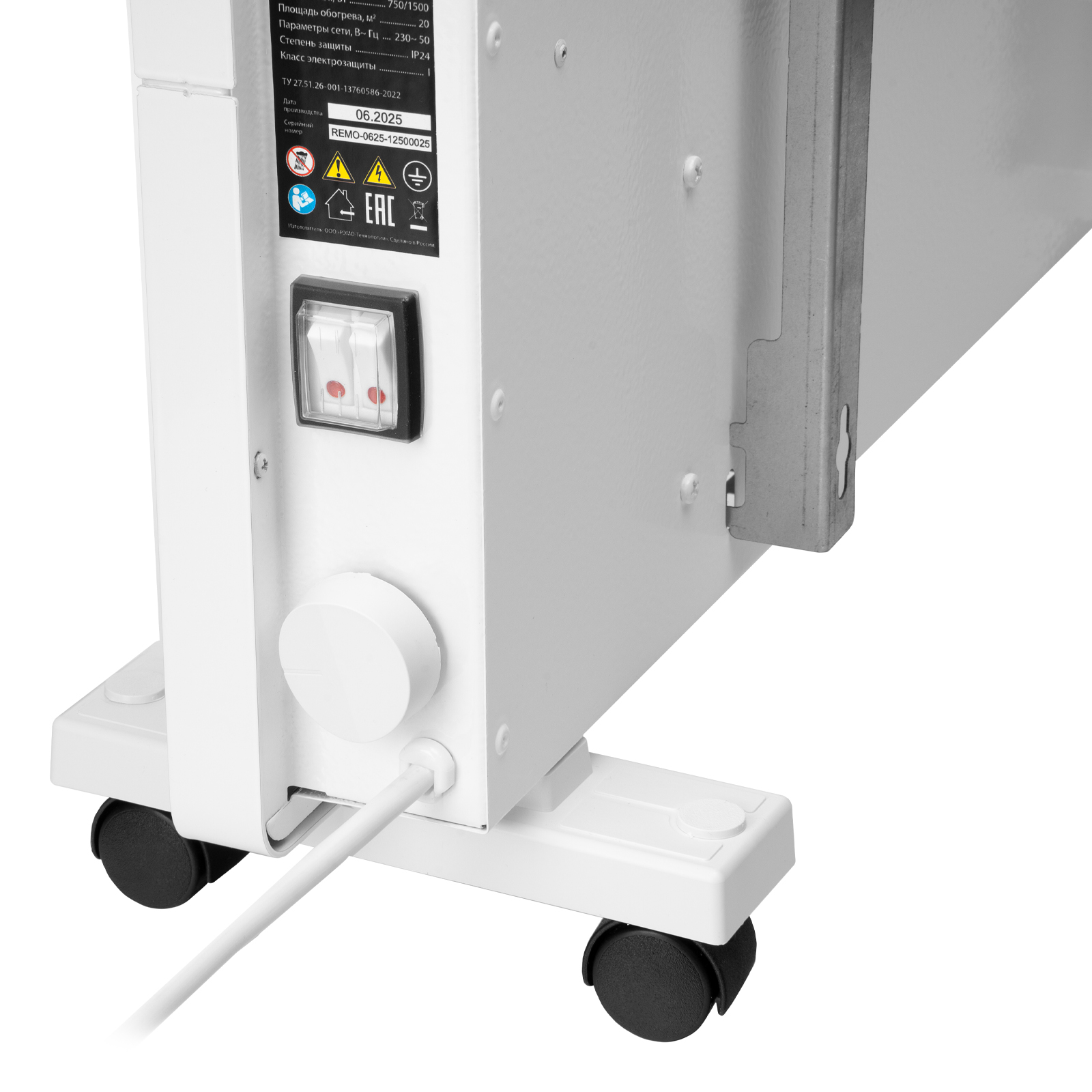2 режима работы (полный обогрев на мощности 1500 Вт и частичный на 750 Вт) — конвектор позволяет прогревать холодное помещение и поддерживать тепло в отапливаемом.