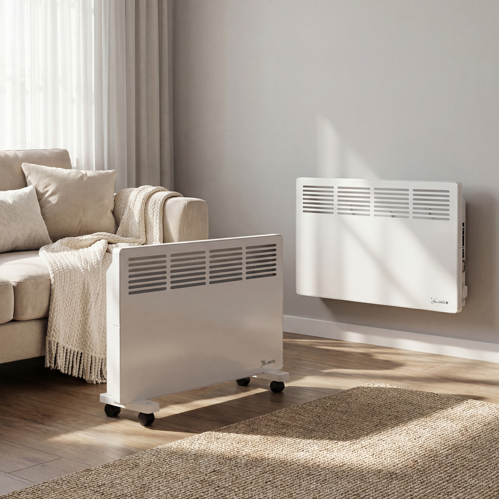 Конвектор электрический MTX KM-1500.2 98125 с X-образным нагревателем, колесами и термостатом, мощностью 1500 Вт, предназначен для использования в закрытых помещениях: квартирах, офисах, на производствах, в общественных местах и т.д. Рекомендуемая площадь обогрева составляет 20 кв.м. Х-образный нагревательный элемент обеспечивает быстрый и равномерный прогрев помещения до необходимой температуры, при этом не сушит воздух.