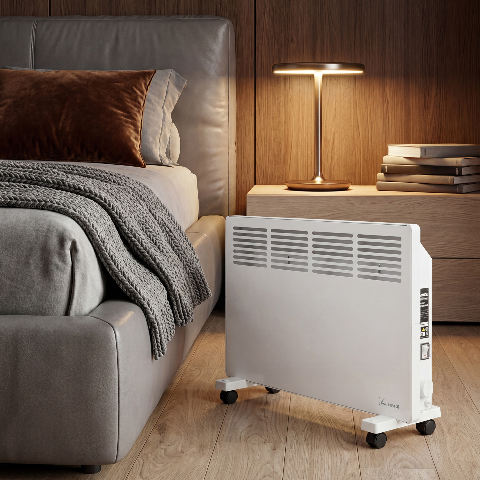 Удобная настройка и автоматическое поддержание заданных параметров — механический термостат позволяет плавно регулировать температуру нагрева в помещении, а затем поддерживает ее, отключая и снова включая конвектор по мере необходимости.