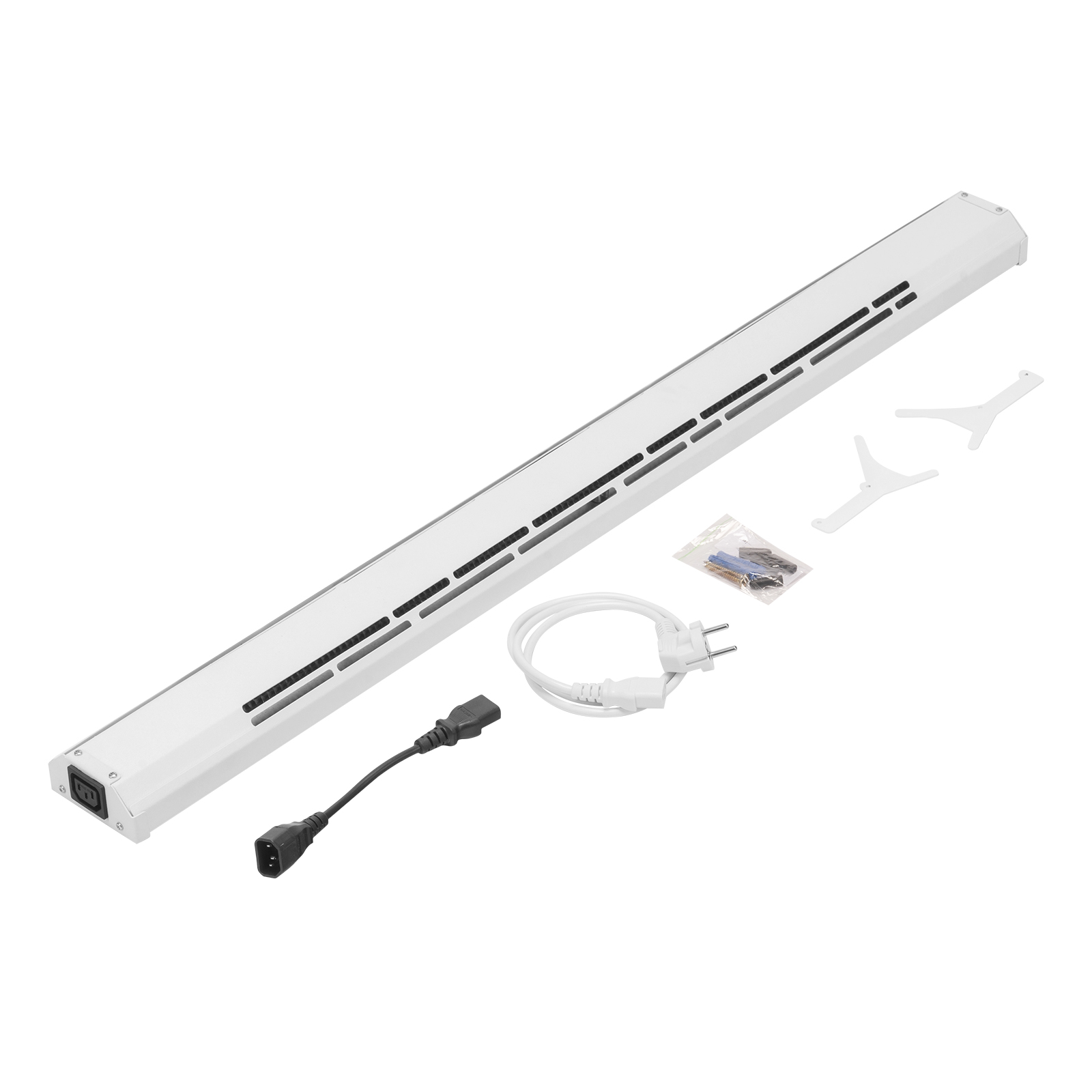 - Компактность — габариты в собранном виде составляют 990 x 85 x 125 мм, поэтому обогреватель не занимает много места в помещении.