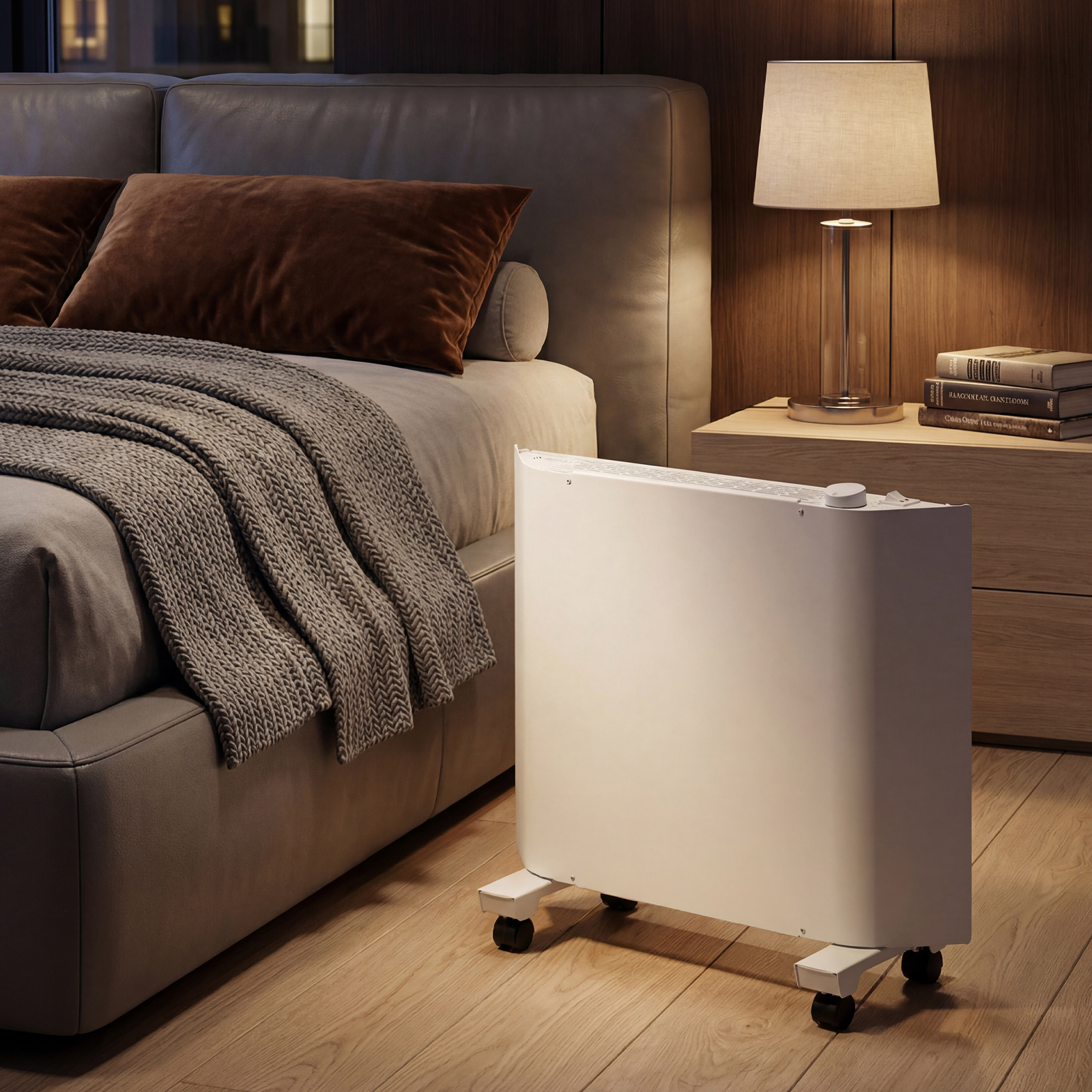 - Автономная работа — термостат автоматически включает и отключает конвектор, поддерживая заданную температуру в помещении.