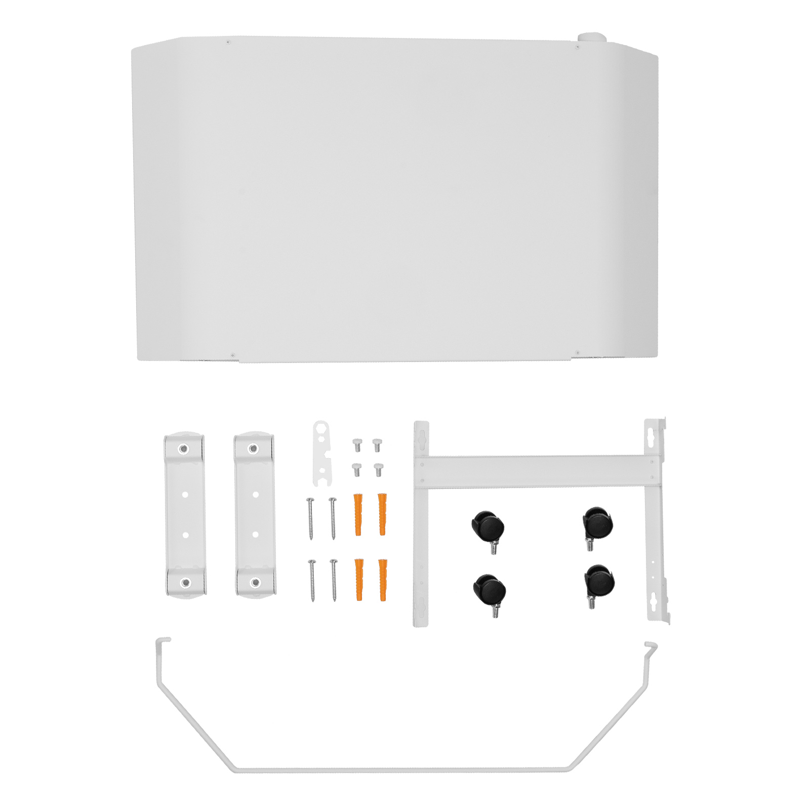 - Напольная или настенная установка — в комплект поставки включена цельнометаллическая крепежная рамка для стены, а также стальные ножки с колесами.