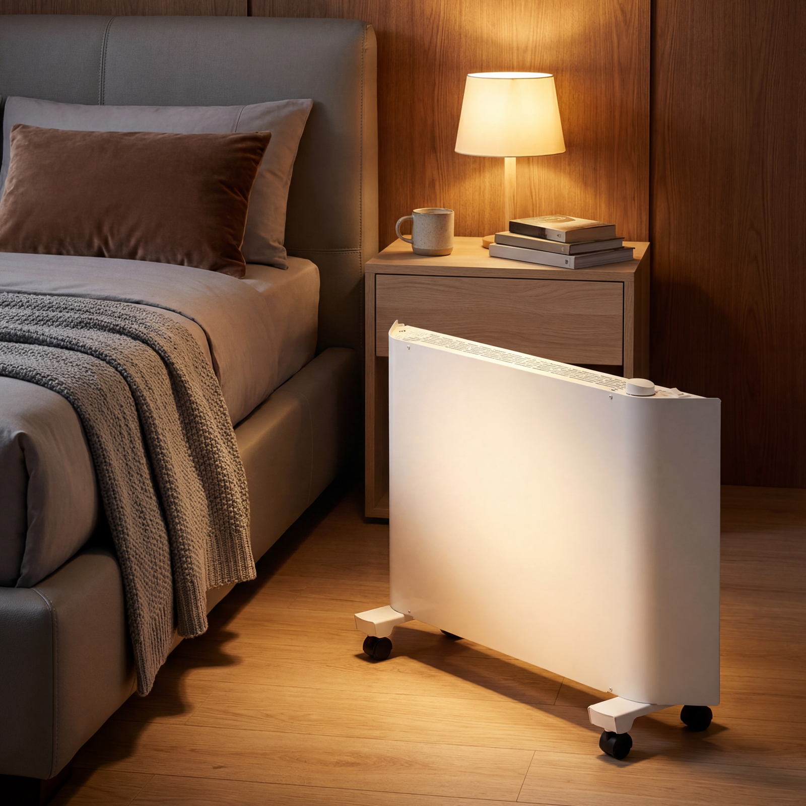 - Автономная работа — термостат автоматически включает и отключает конвектор, поддерживая заданную температуру в помещении.