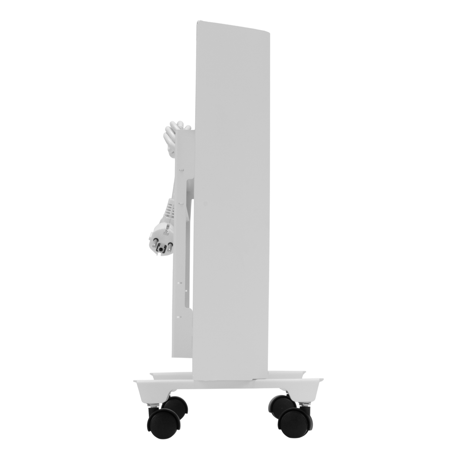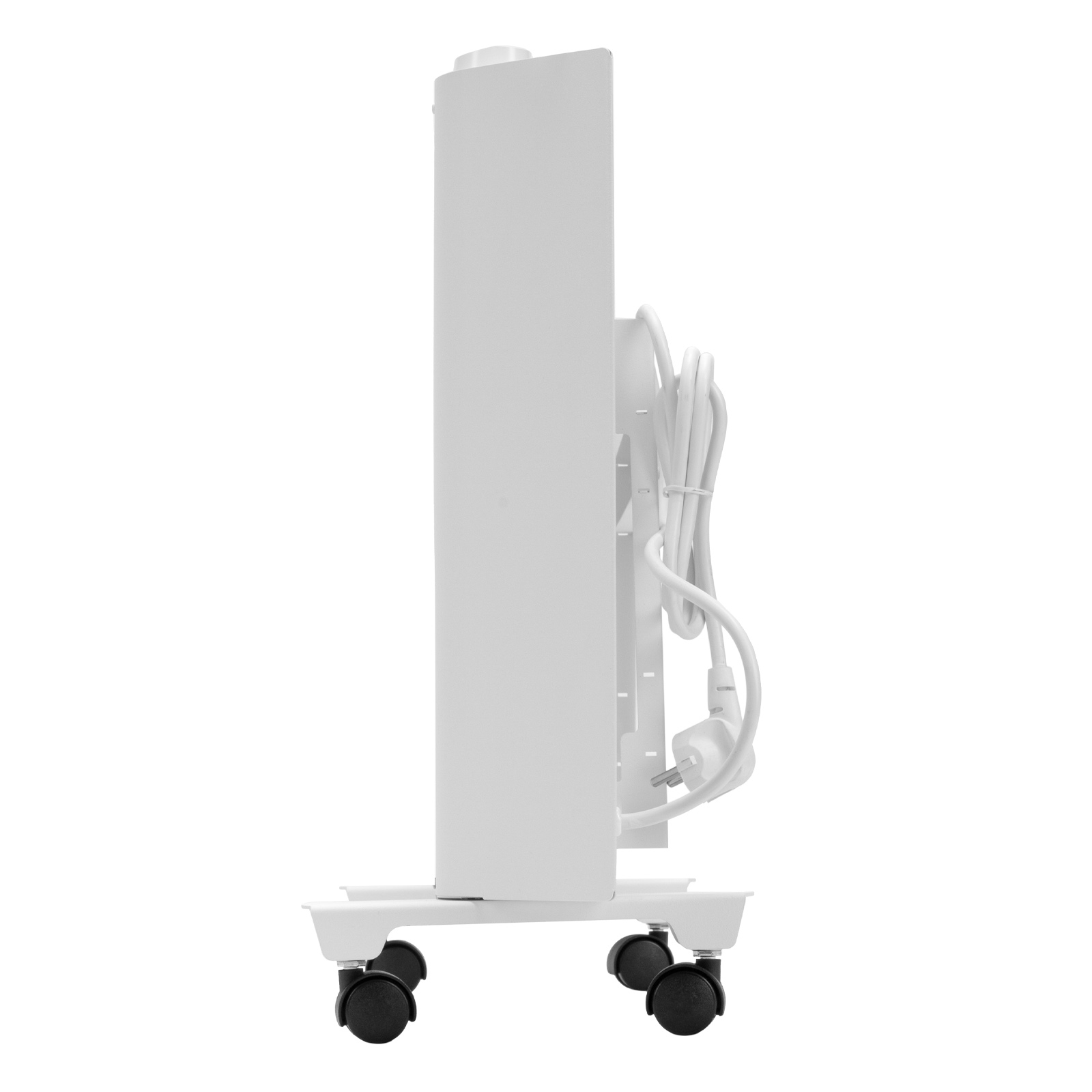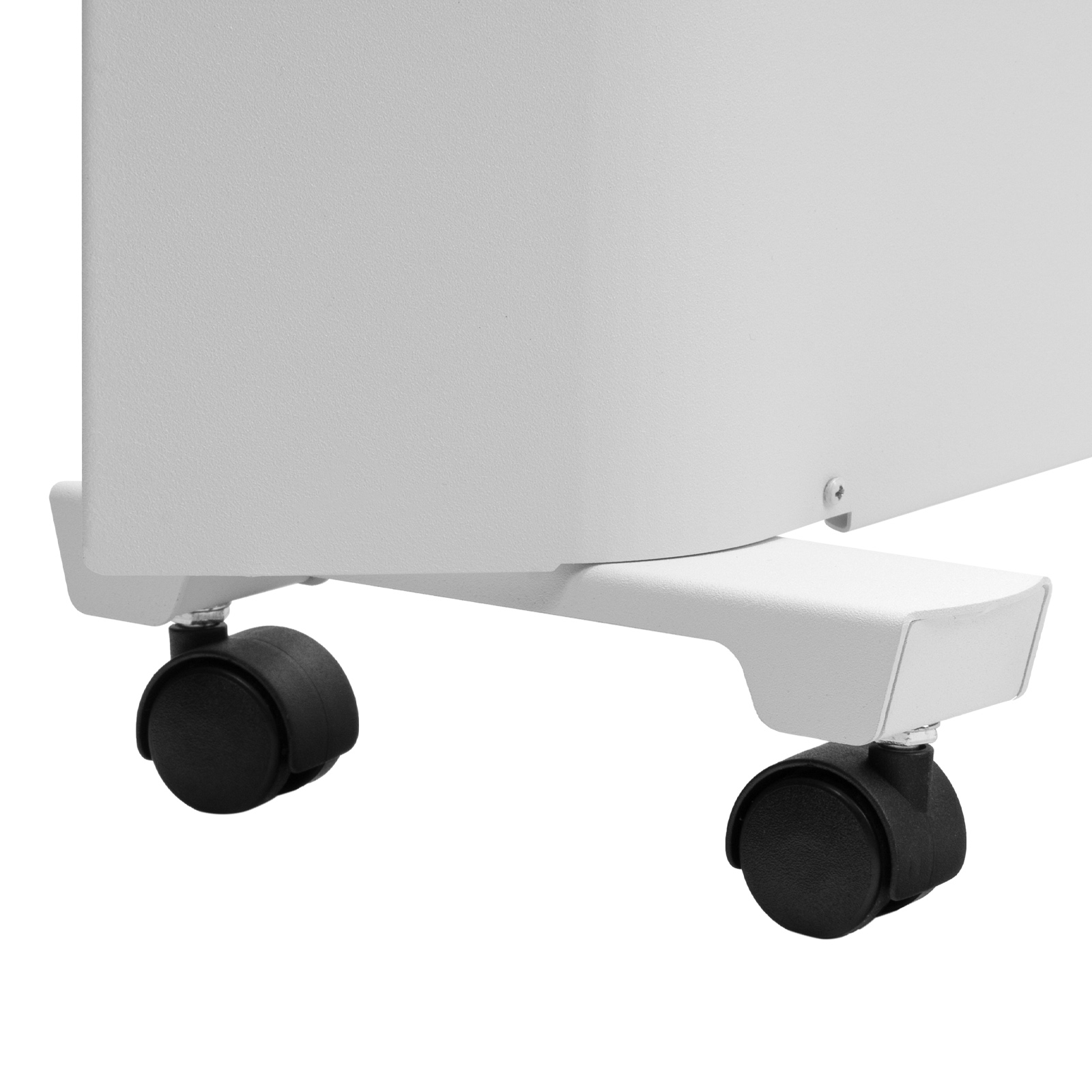 - Напольная или настенная установка — в комплект поставки включена цельнометаллическая крепежная рамка для стены, а также стальные ножки с колесами.