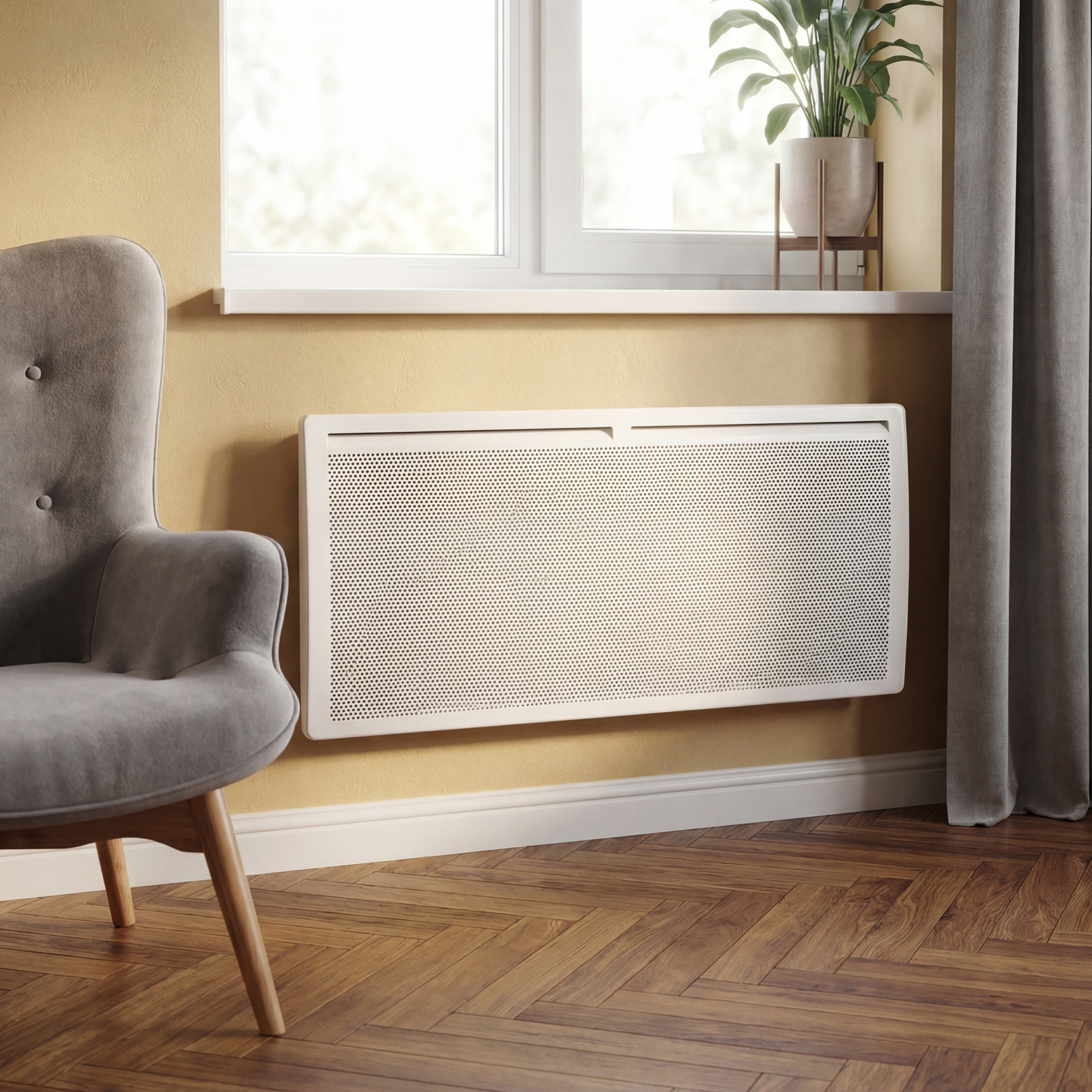 - Высокая энергоэффективность — гибридный нагревательный элемент излучает инфракрасное тепло и одновременно обеспечивает конвекцию воздуха, что позволяет прогревать помещение заметно быстрее при тех же затратах энергии.