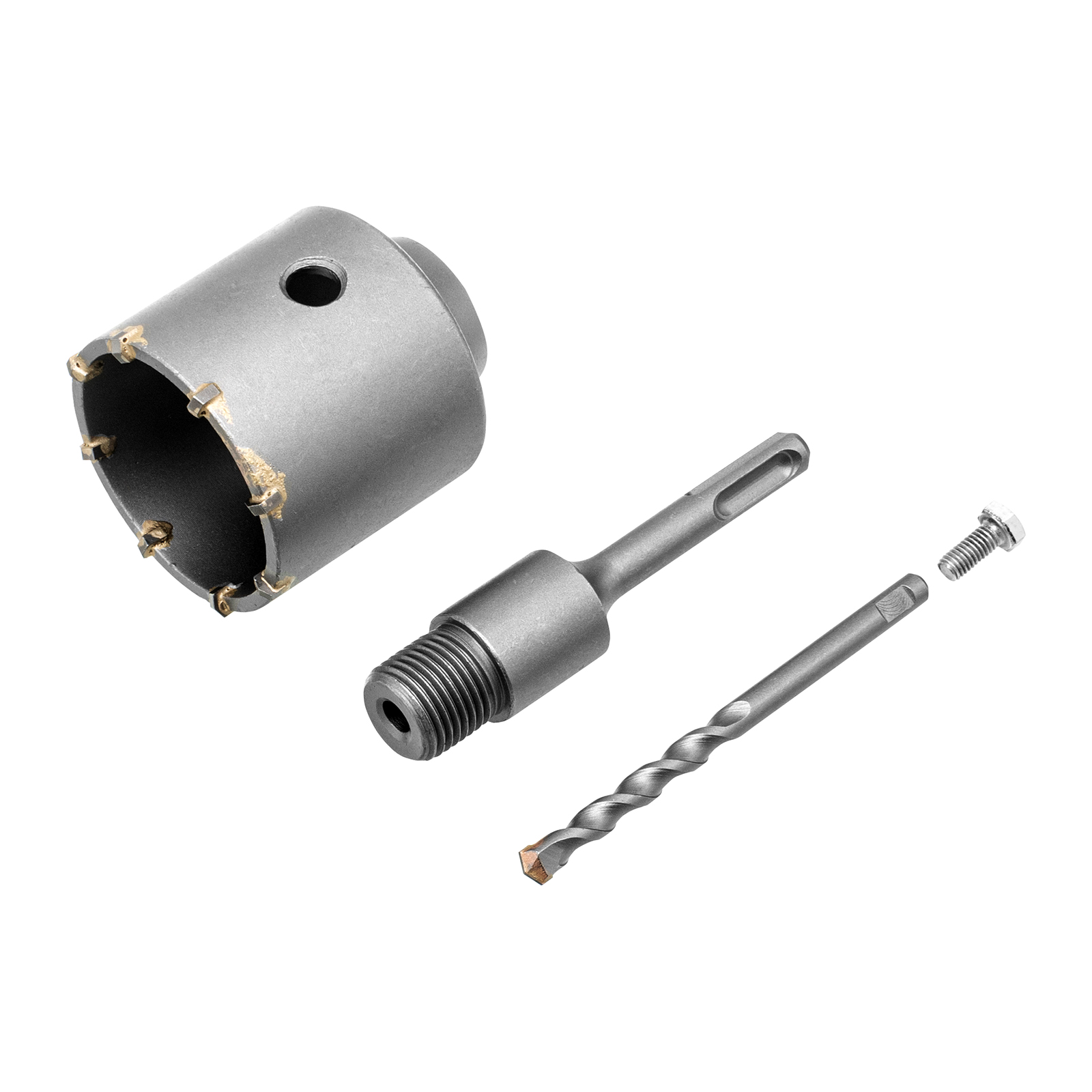 - Прочность и износостойкость — наконечник сверла и зубья выполнены из твердого сплава ВК8, а корпус изготовлен из прочной углеродистой стали.