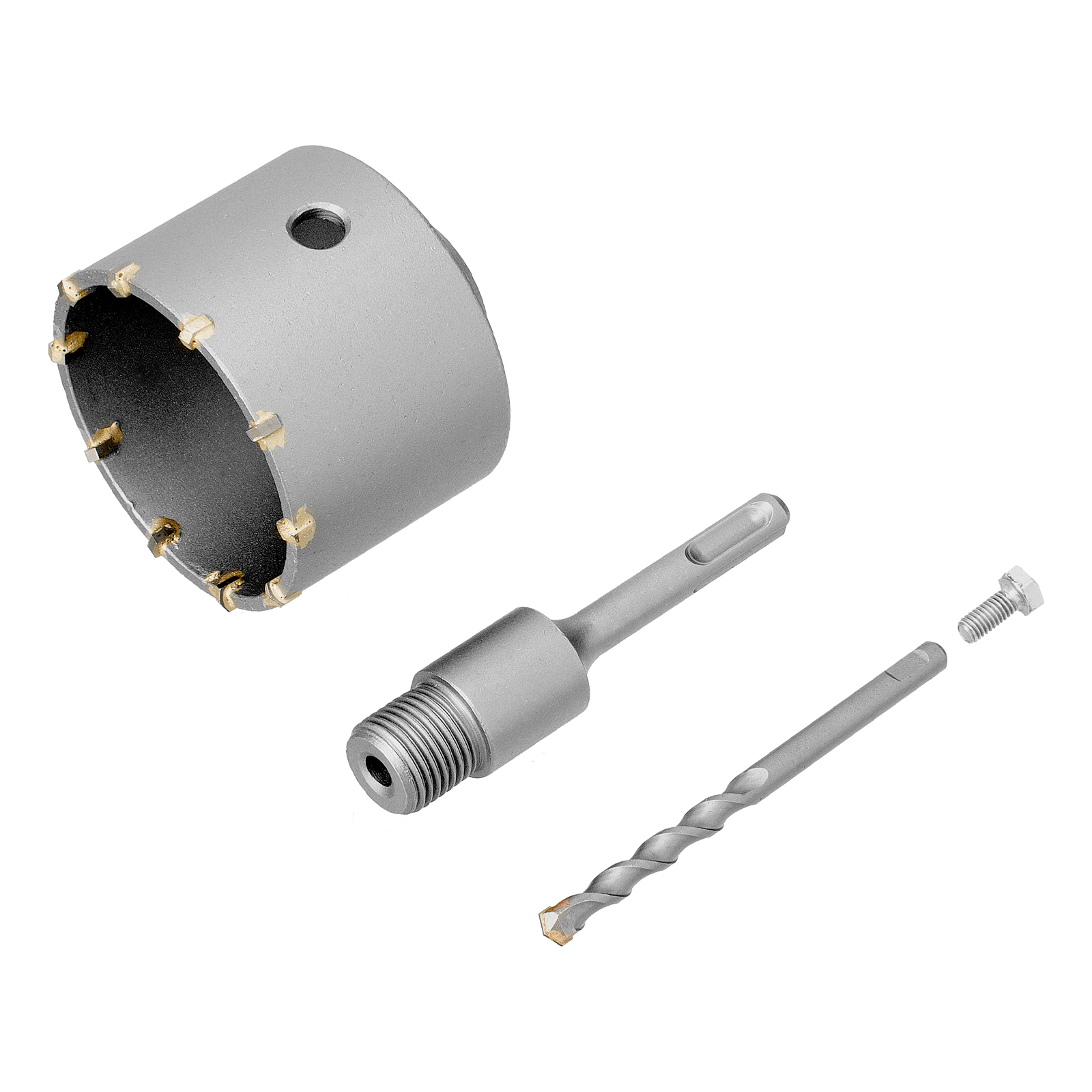 - Прочность и износостойкость — наконечник сверла и зубья выполнены из твердого сплава ВК8, а корпус изготовлен из прочной углеродистой стали.