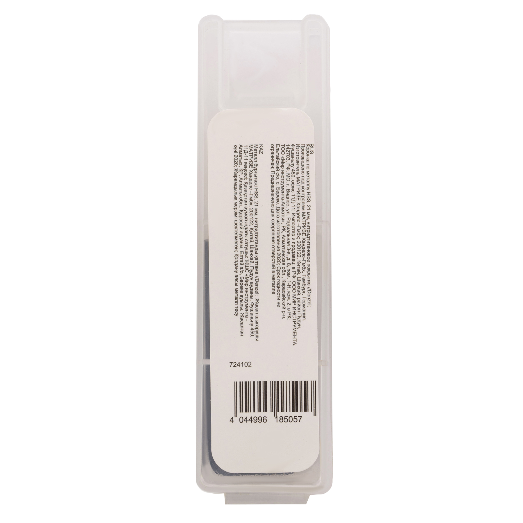 <p>Коронка Denzel 724102 диаметром 21 мм, из стали HSS, с нитридтитановым покрытием, применяется для сверления отверстий в черных, цветных металлах, пластике и других материалах. Рассчитана на профессиональное использование на строительной площадке. Коронка пригодится при прокладке коммуникаций, монтаже оборудования, крепежных элементов и различных конструкций.</p><h2>Преимущества</h2><ul><li>Прочность — корпус и рабочая часть являются монолитной конструкцией из высококачественной стали.</li><li>Высокая эффективность — центрирующее сверло из быстрорежущей стали облегчает засверливание.</li><li>Коррозионная стойкость — корпус и рабочая часть имеют защитное нитридтитановое покрытие.</li><li>Эффективное удаление продуктов сверления — специальная пружина препятствует застреванию шлама.</li><li>Трехгранный хвостовик — коронка не прокручивается в патроне перфоратора во время работы.</li></ul>