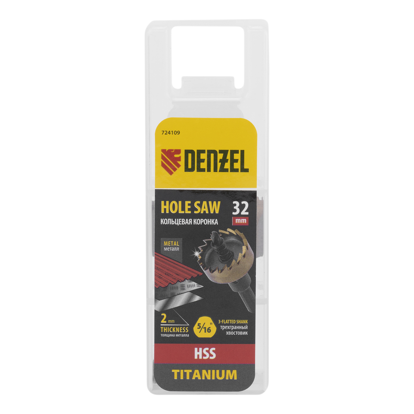 <p>Коронка Denzel 724109 диаметром 32 мм, из стали HSS, с нитридтитановым покрытием, применяется для сверления отверстий в черных, цветных металлах, пластике и других материалах. Рассчитана на профессиональное использование на строительной площадке. Коронка пригодится при прокладке коммуникаций, монтаже оборудования, крепежных элементов и различных конструкций.</p><h2>Преимущества</h2><ul><li>Прочность — корпус и рабочая часть являются монолитной конструкцией из высококачественной стали.</li><li>Высокая эффективность — центрирующее сверло из быстрорежущей стали облегчает засверливание.</li><li>Коррозионная стойкость — корпус и рабочая часть имеют защитное нитридтитановое покрытие.</li><li>Эффективное удаление продуктов сверления — специальная пружина препятствует застреванию шлама.</li><li>Трехгранный хвостовик — коронка не прокручивается в патроне перфоратора во время работы.</li></ul>
