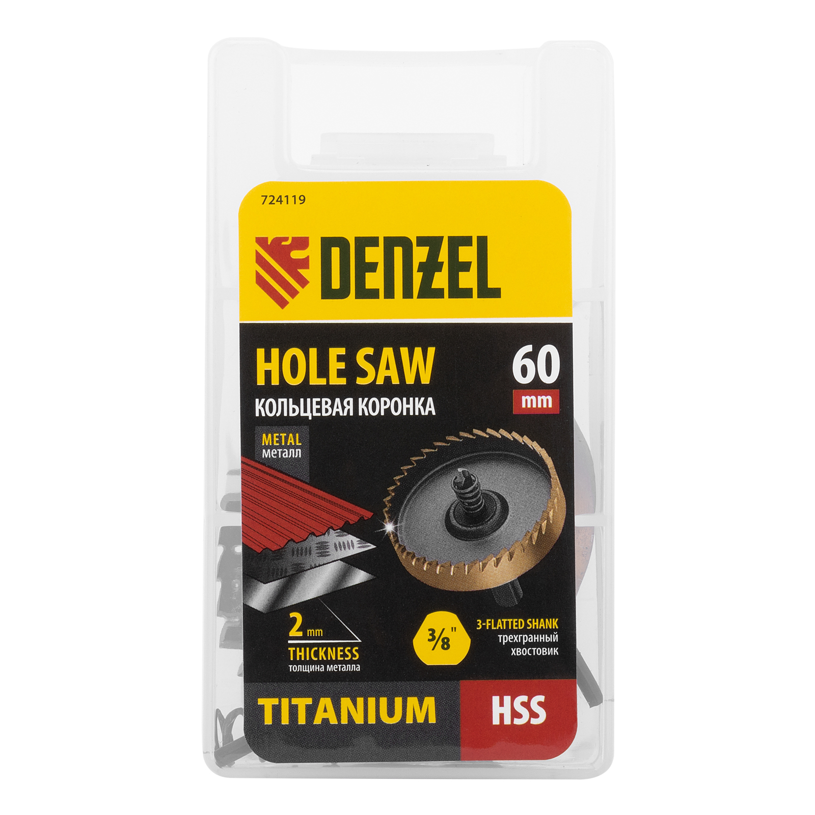 <p>Коронка Denzel 724119 диаметром 60 мм, из стали HSS, с нитридтитановым покрытием, применяется для сверления отверстий в черных, цветных металлах, пластике и других материалах. Рассчитана на профессиональное использование на строительной площадке. Коронка пригодится при прокладке коммуникаций, монтаже оборудования, крепежных элементов и различных конструкций.</p><h2>Преимущества</h2><ul><li>Прочность — корпус и рабочая часть являются монолитной конструкцией из высококачественной стали.</li><li>Высокая эффективность — центрирующее сверло из быстрорежущей стали облегчает засверливание.</li><li>Коррозионная стойкость — корпус и рабочая часть имеют защитное нитридтитановое покрытие.</li><li>Эффективное удаление продуктов сверления — специальная пружина препятствует застреванию шлама.</li><li>Трехгранный хвостовик — коронка не прокручивается в патроне перфоратора во время работы.</li></ul>